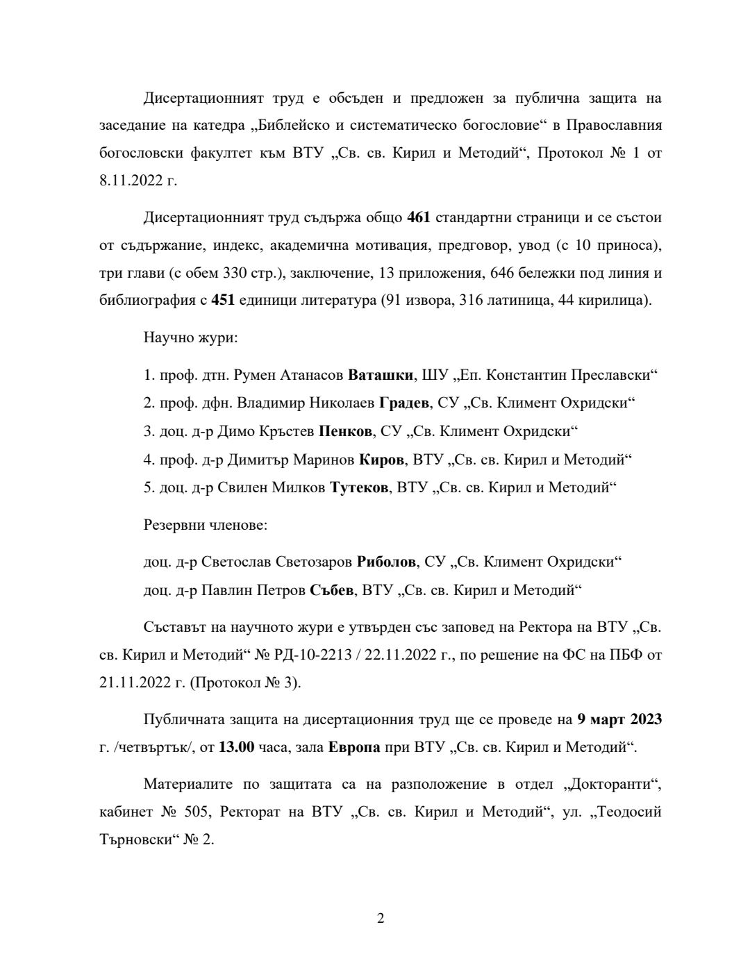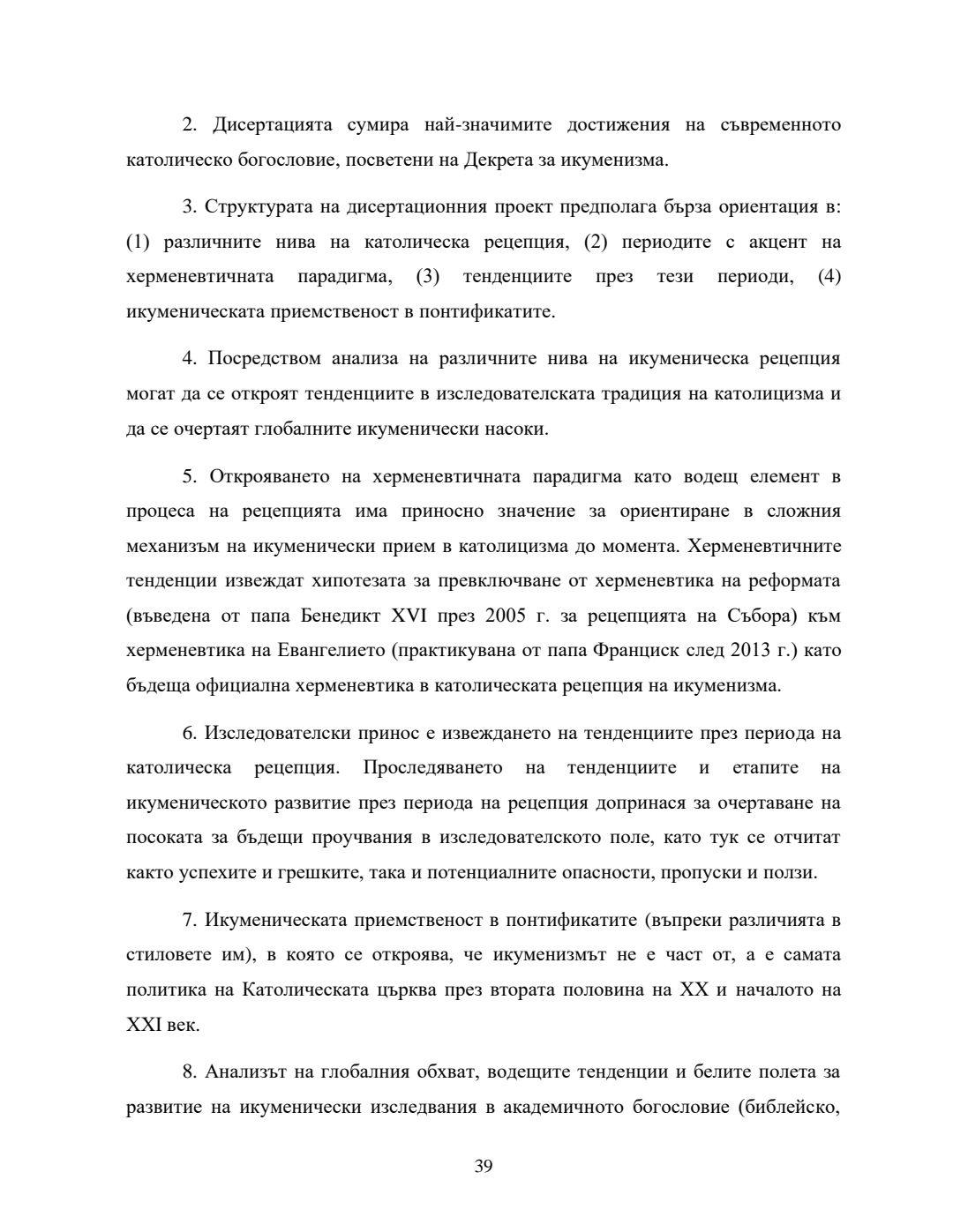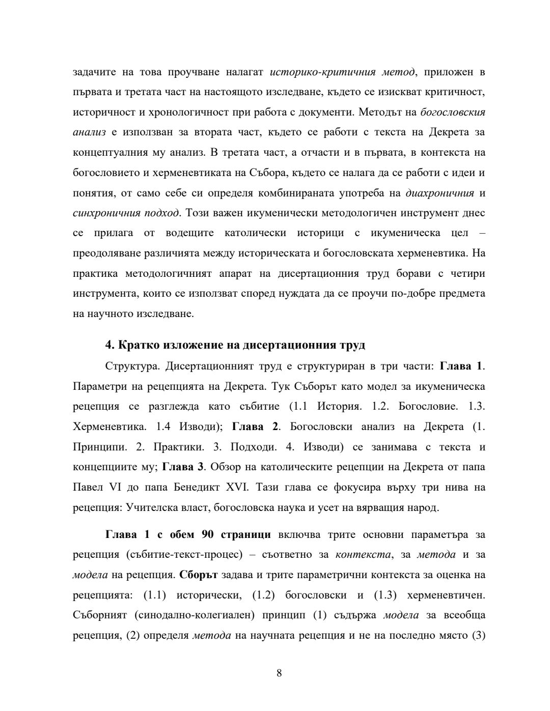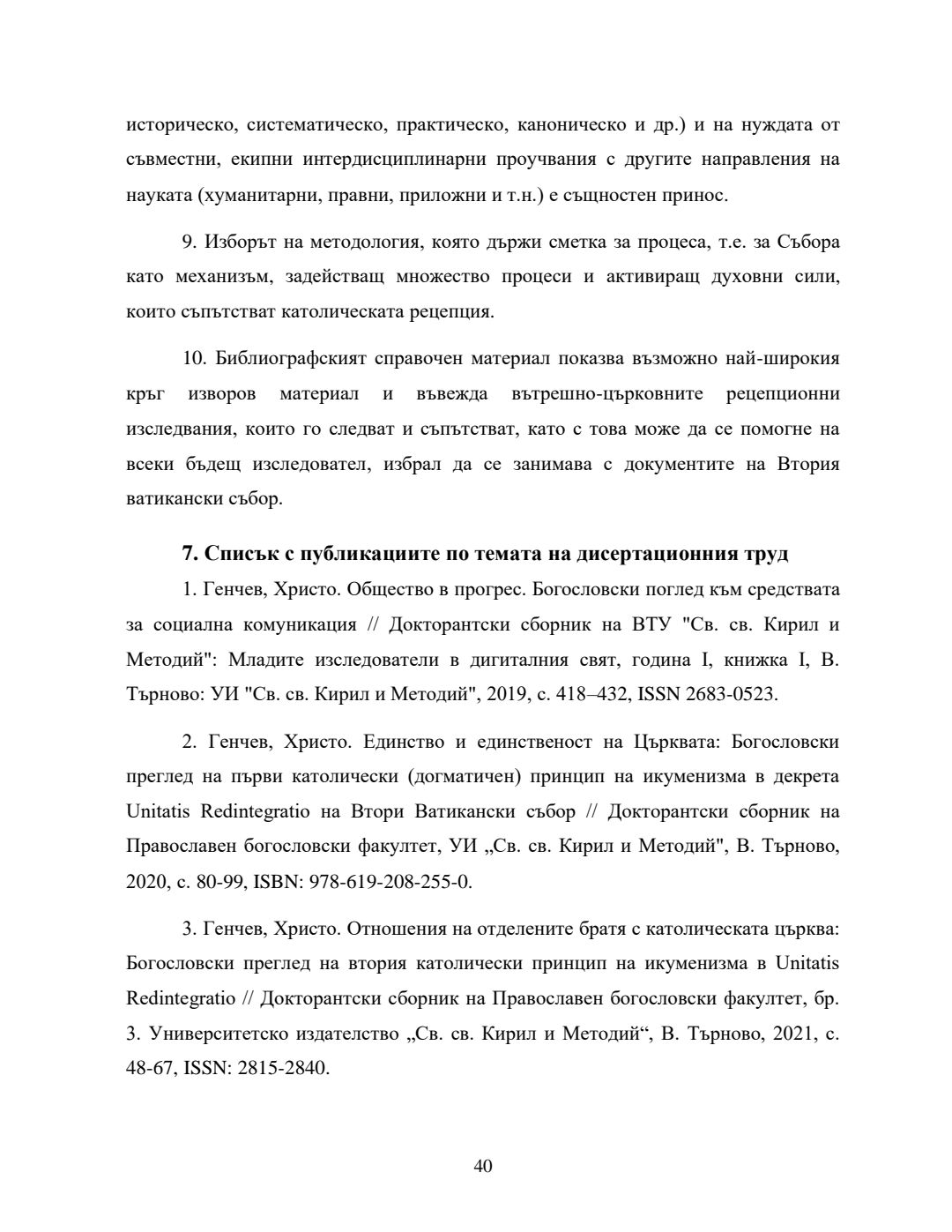 Декретът на Втория Ватикански събор за икуменизма (Unitatis Redintegratio) в рецепцията на Католическата църква (от папа Павел VI до папа Бенедикт XVI) : Автореферат / Христо Велков Генчев ; Науч. ръководител Мариян Стоядинов