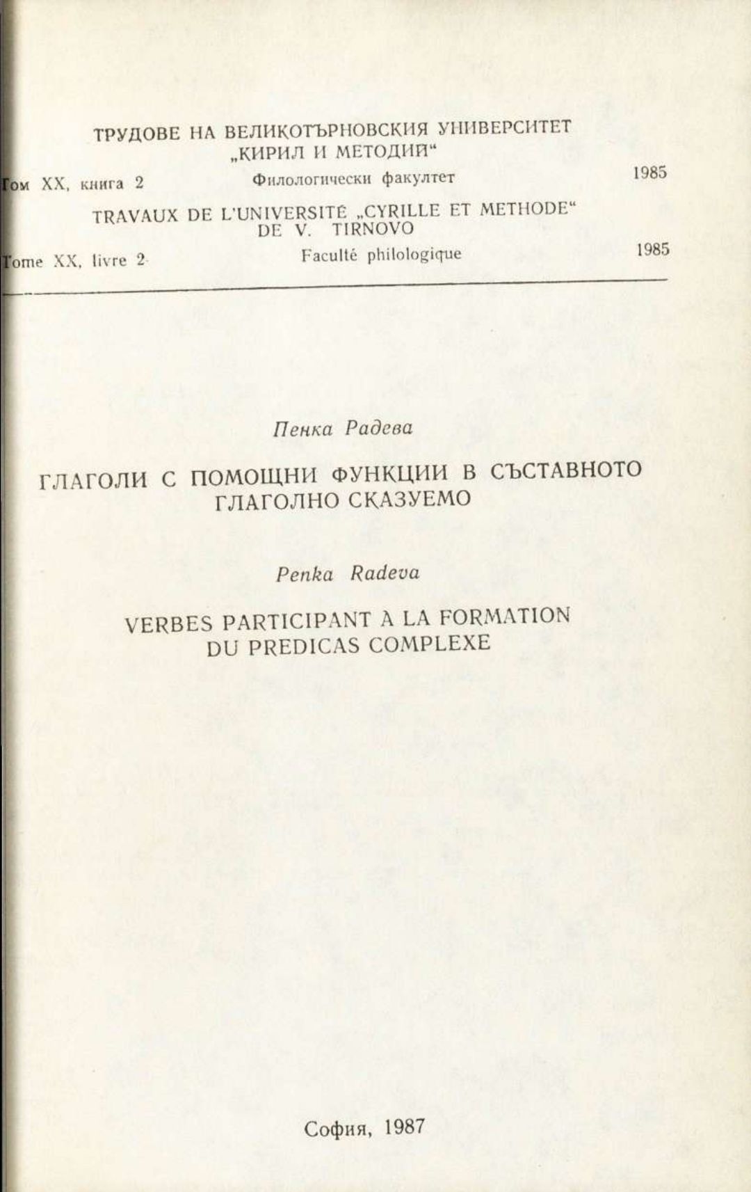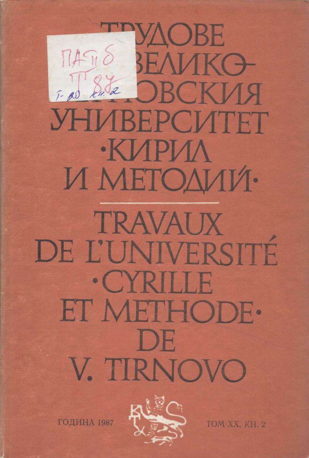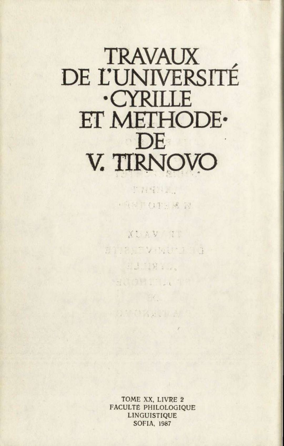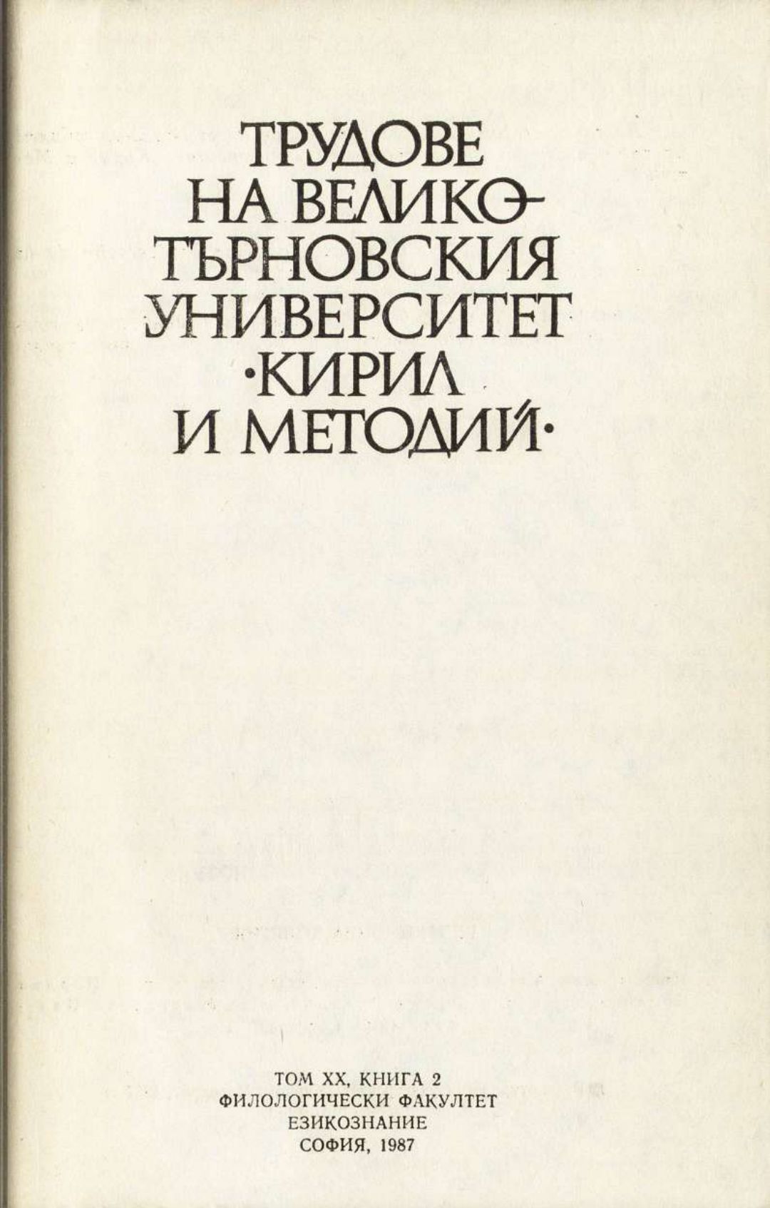 Том 20. Кн.2. Трудове на Великотърновския университет "Св. св. Кирил и Методий". Филологически факултет = Travaux de L'universite St. St. Cyrille et Methode de Veliko Tirnovo. Faculte de philologue Езикознание