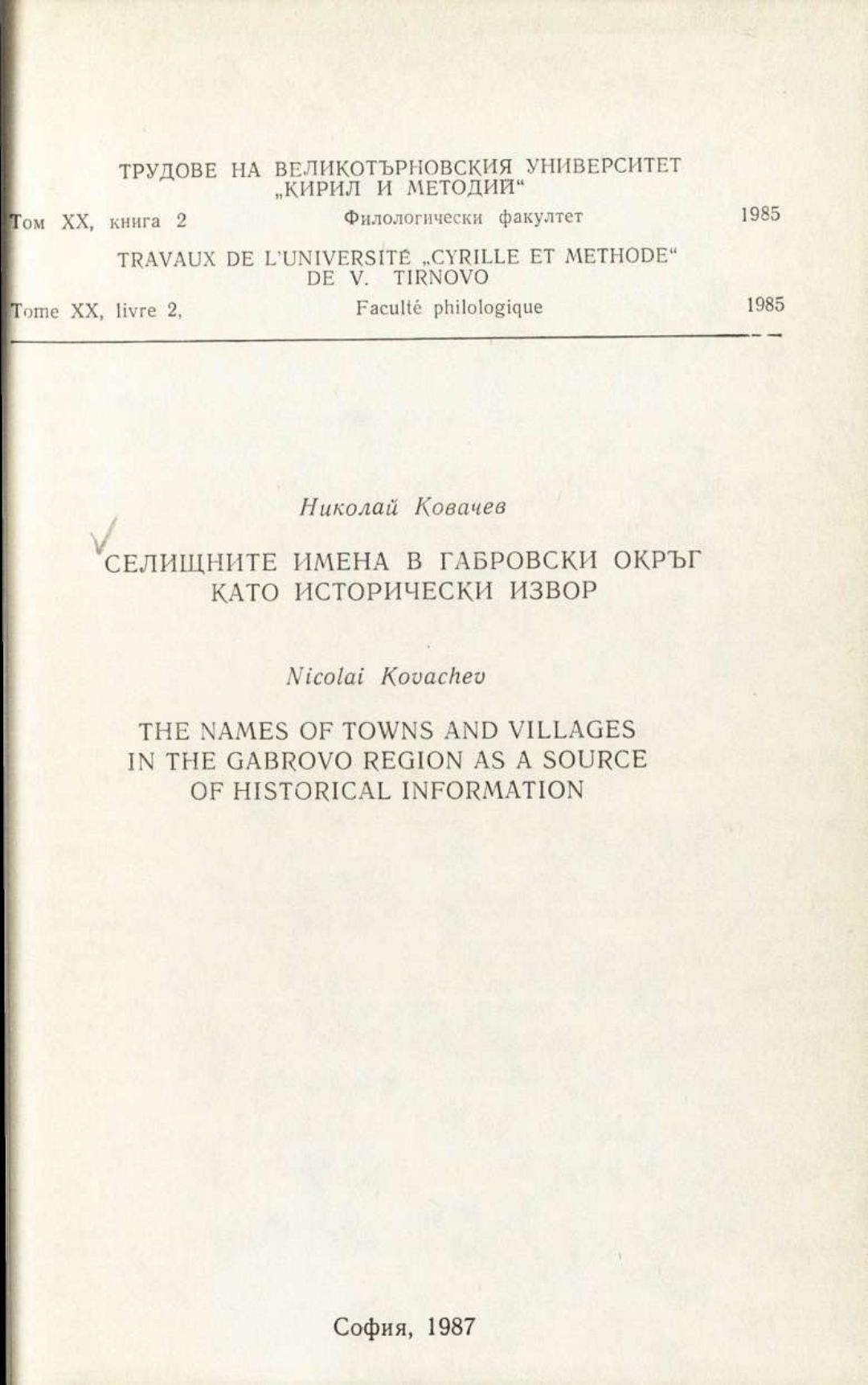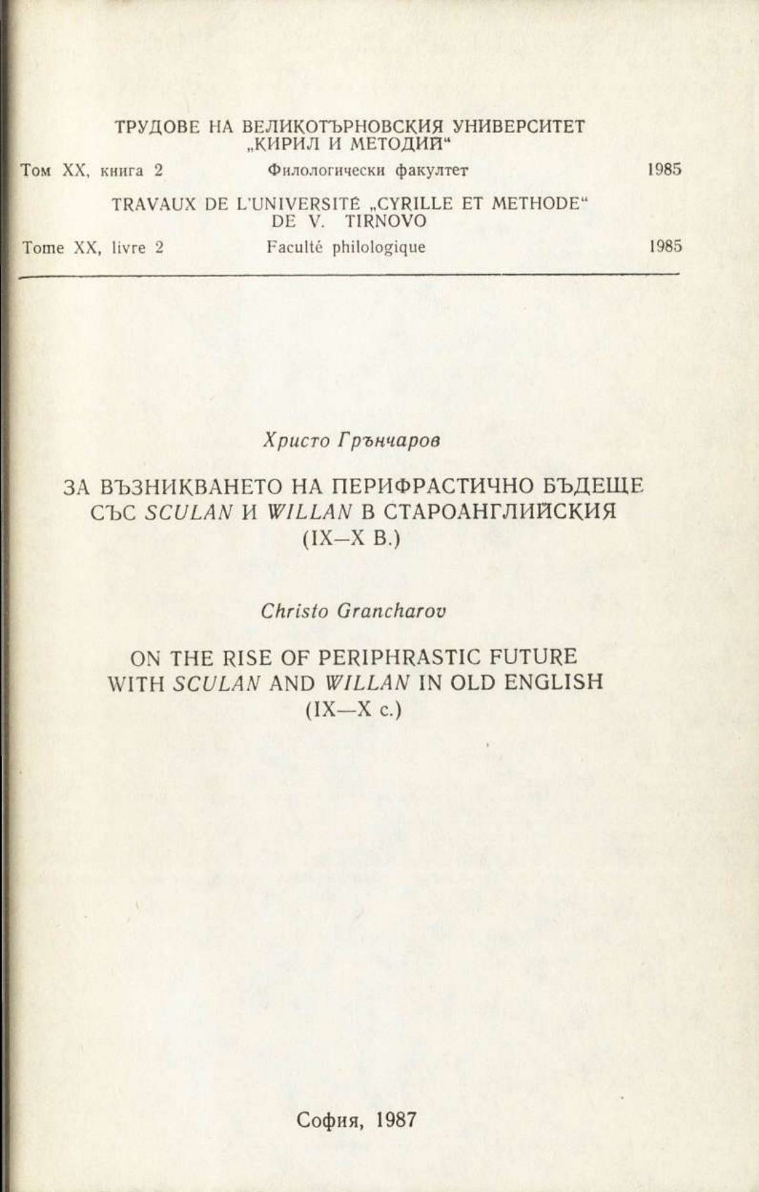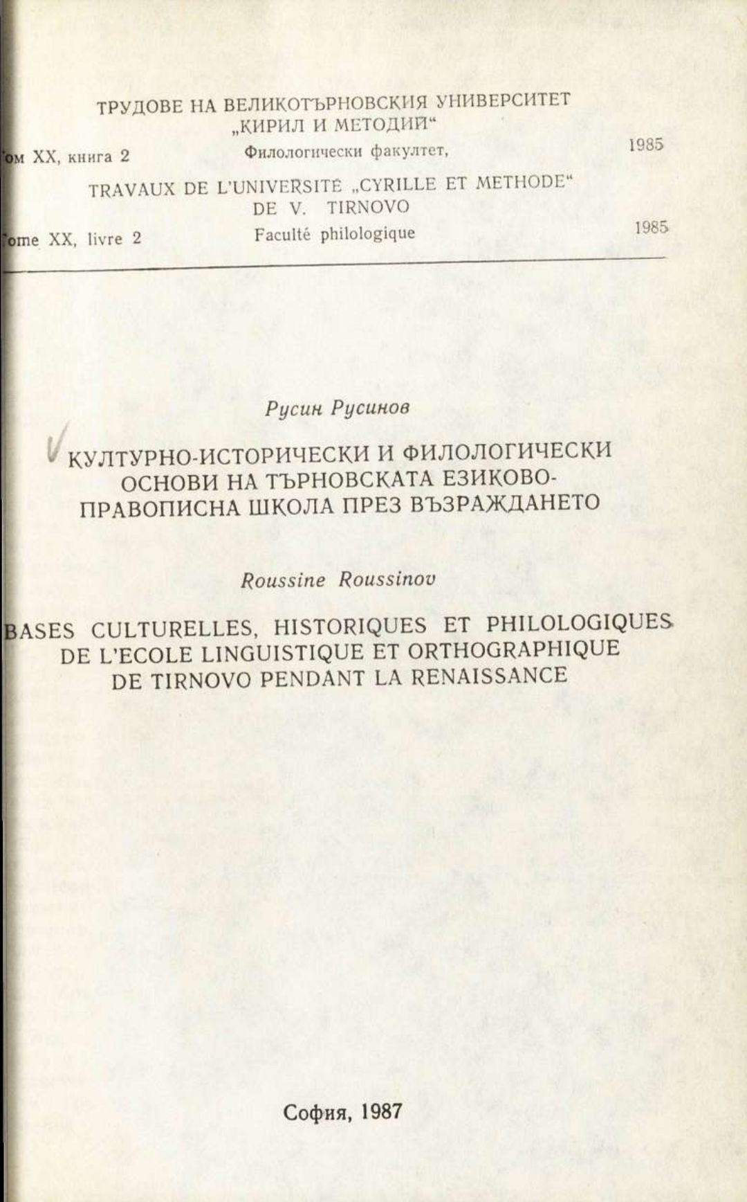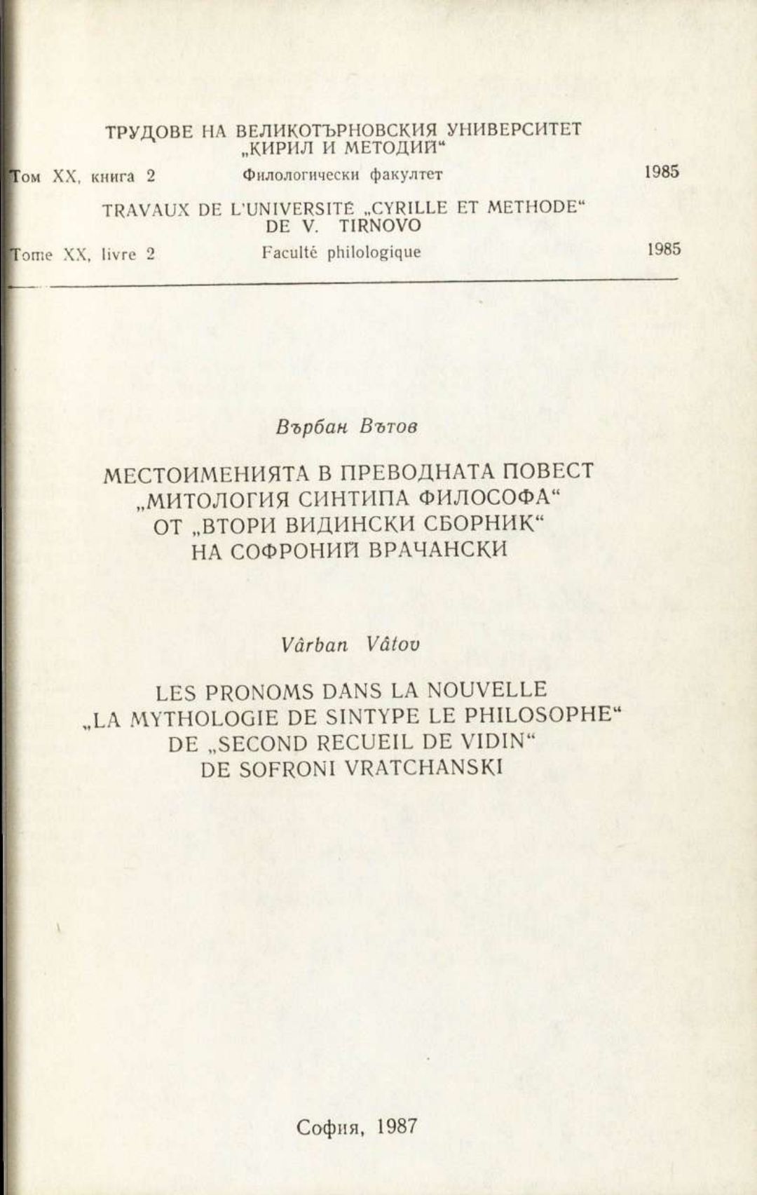 Том 20. Кн.2. Трудове на Великотърновския университет "Св. св. Кирил и Методий". Филологически факултет = Travaux de L'universite St. St. Cyrille et Methode de Veliko Tirnovo. Faculte de philologue Езикознание