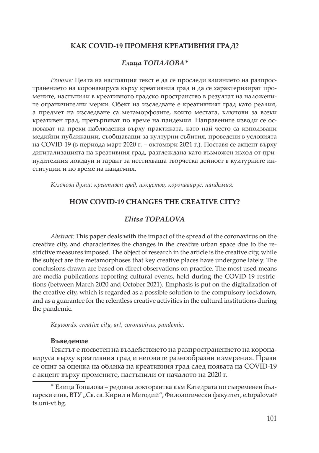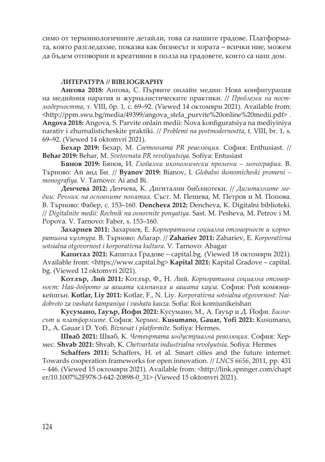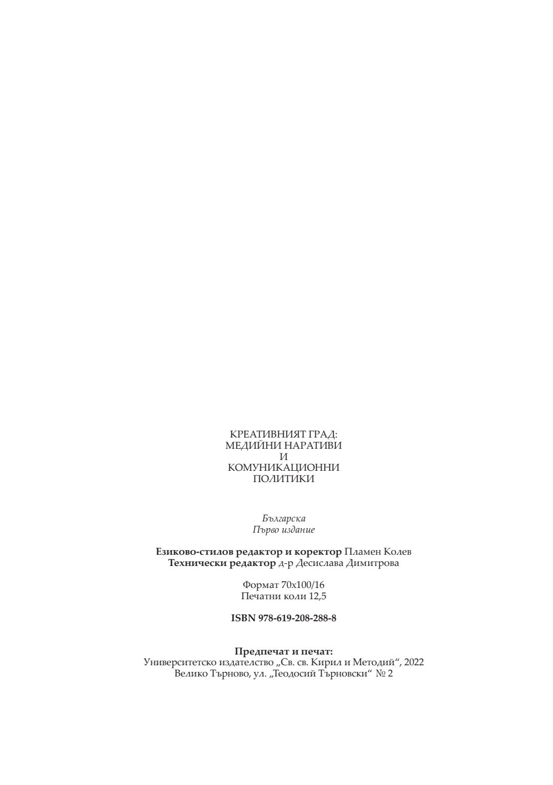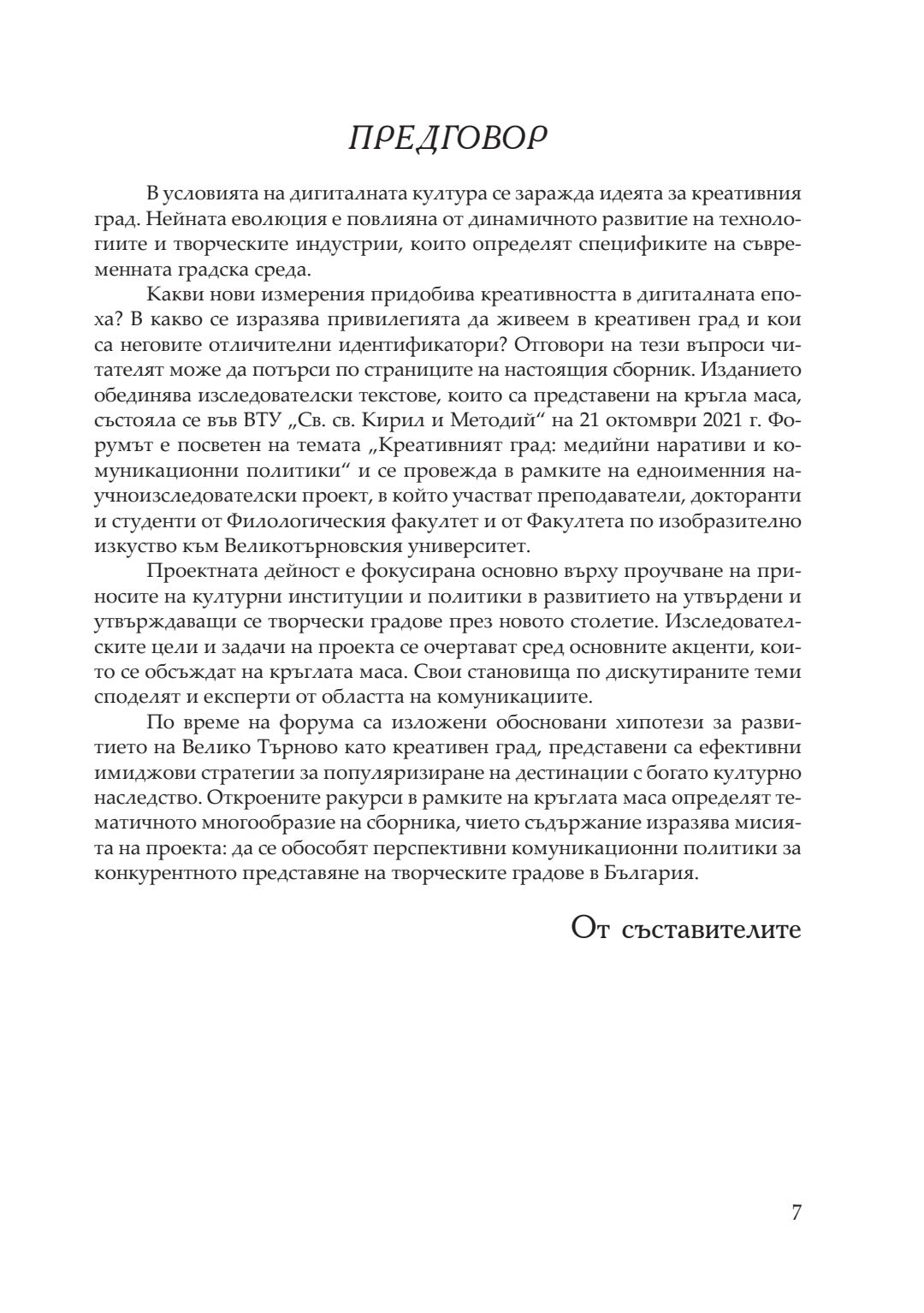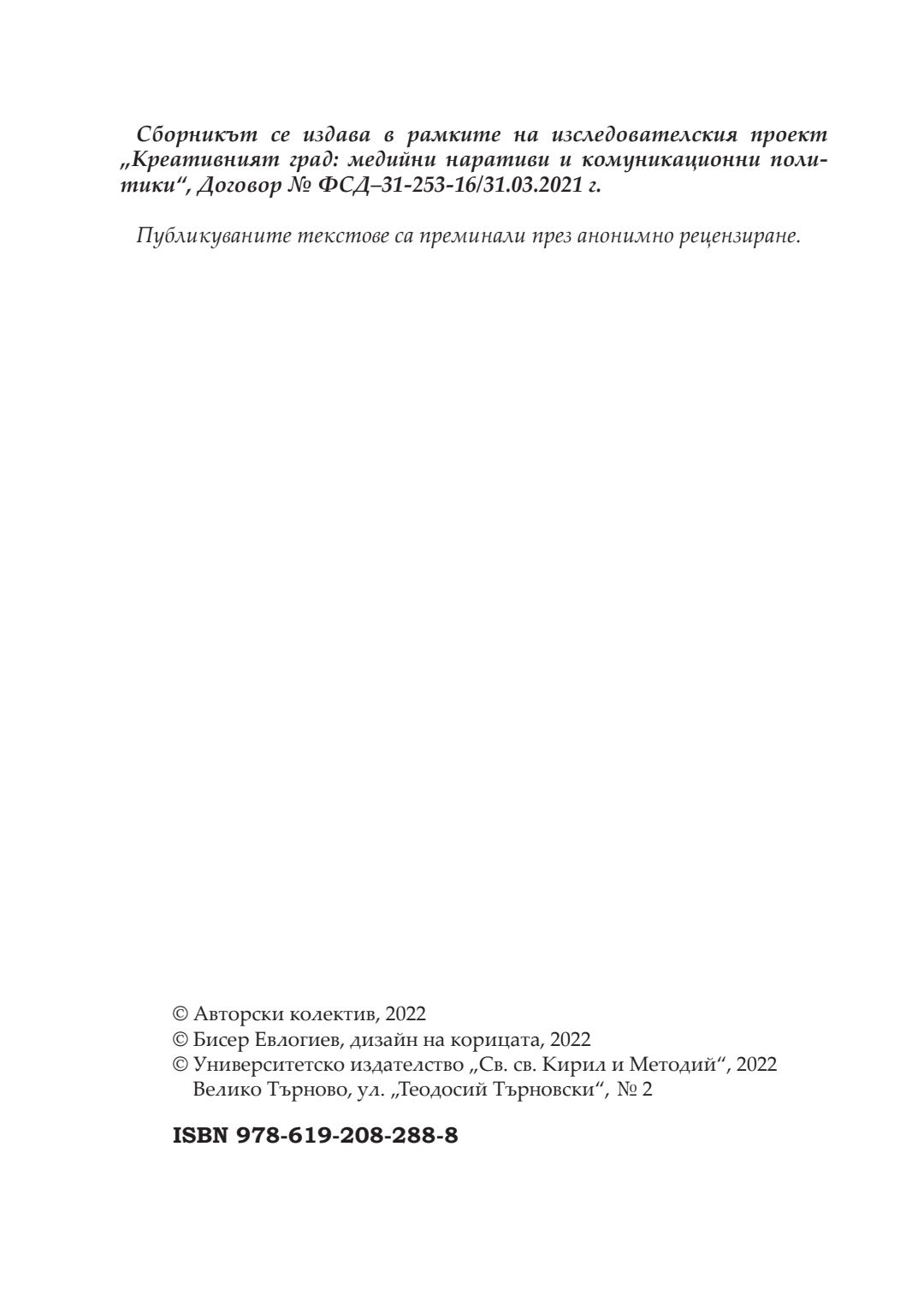 Креативният град: медийни наративи и комуникационни политики : кръгла маса, 21 октомври 2021 г.