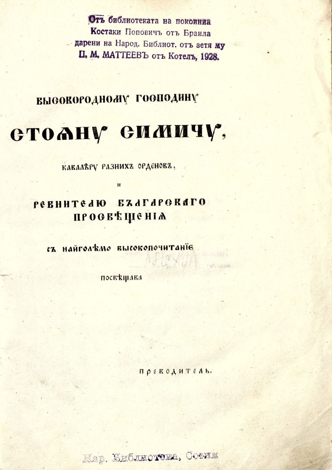 Часови благоговейния : преведени от немский на сръбский язик от г. Гаврила Поповича, архимандрита ; а от сърбский на българский язик от Георгия С. Йошева, сеславчанина