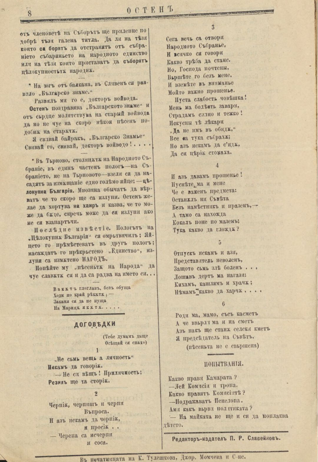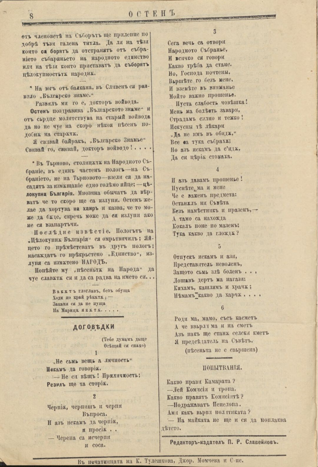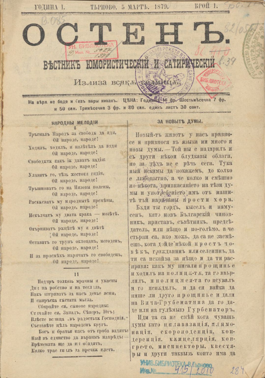 Год. 1, бр. 1. Остен : Вестник юмористический и сатирический вестник