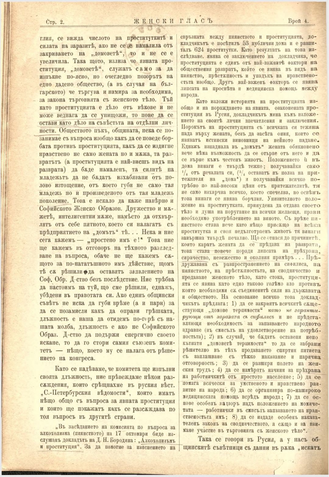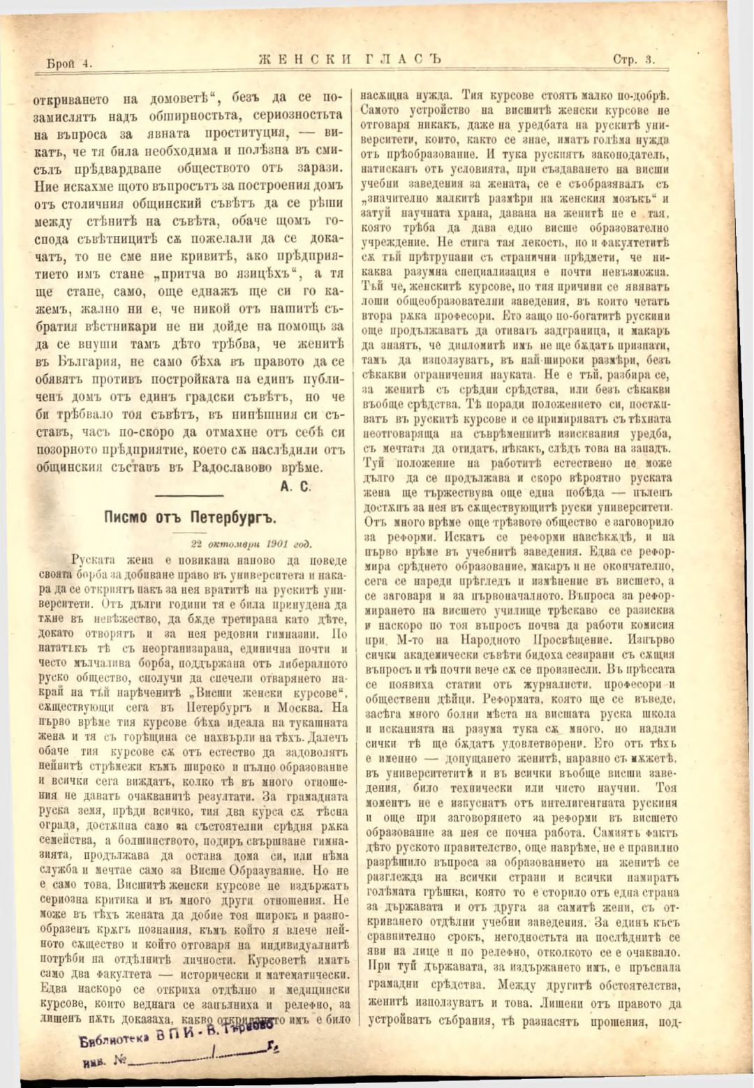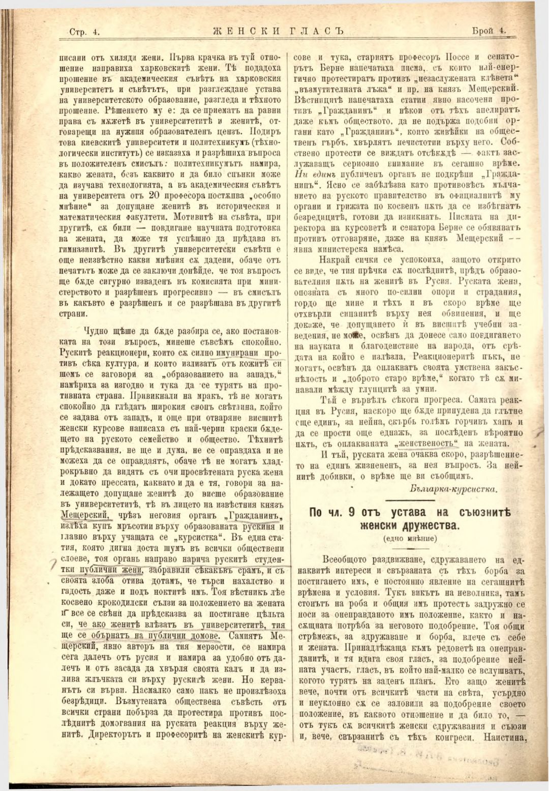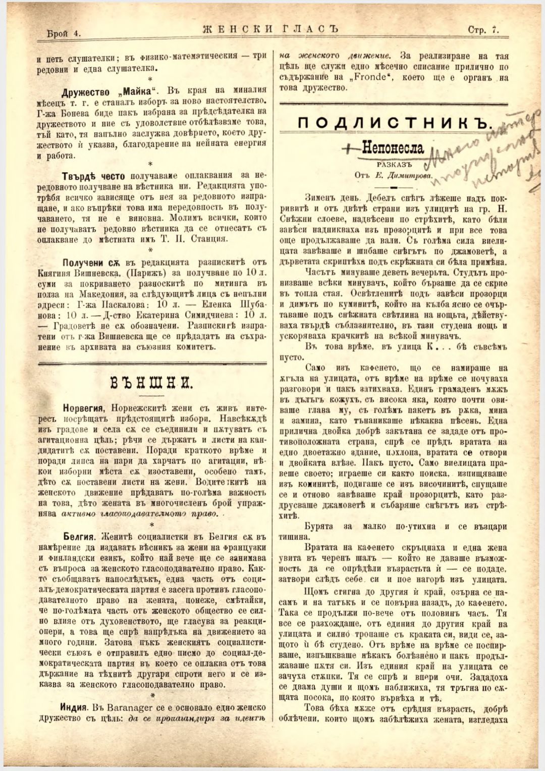Год. 3, № 4. Женски глас : Орган на българския женски съюз