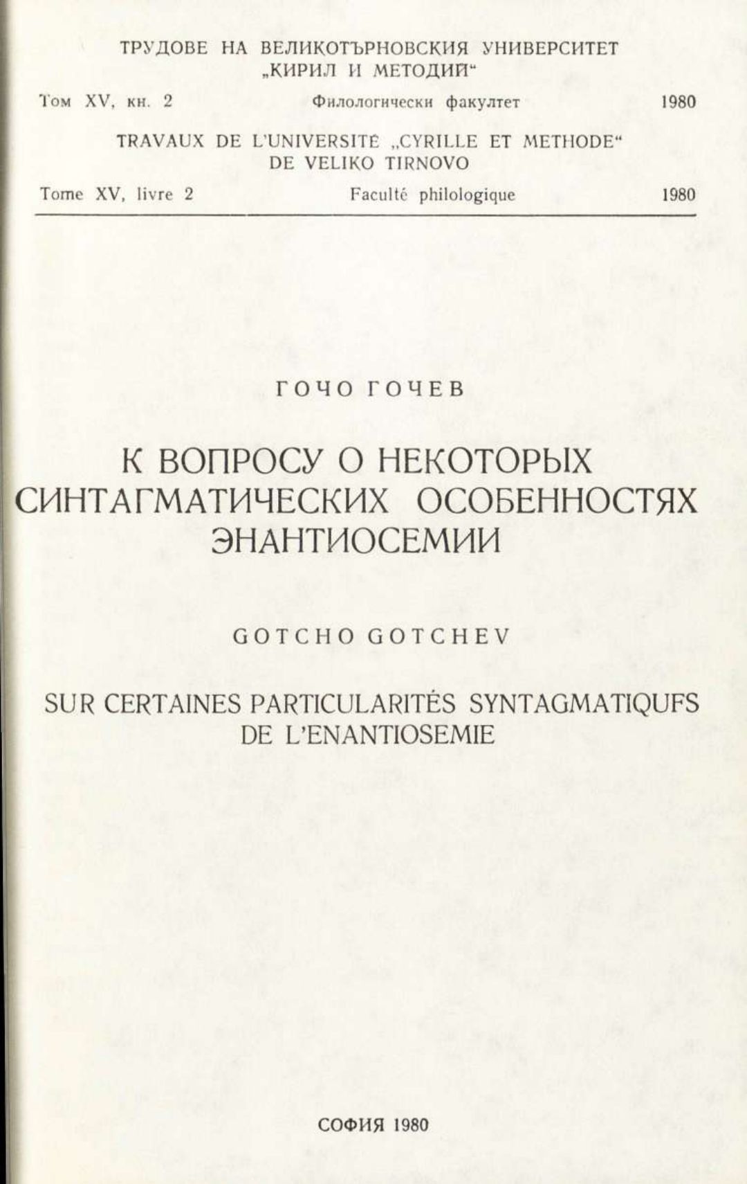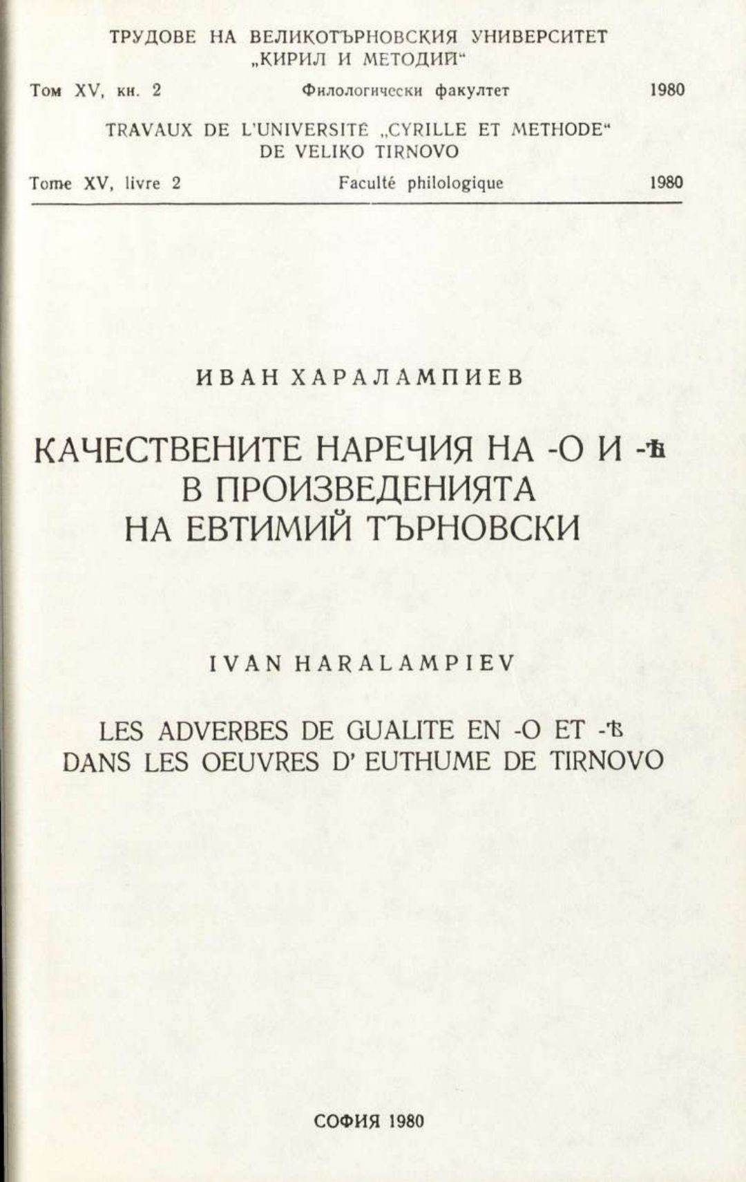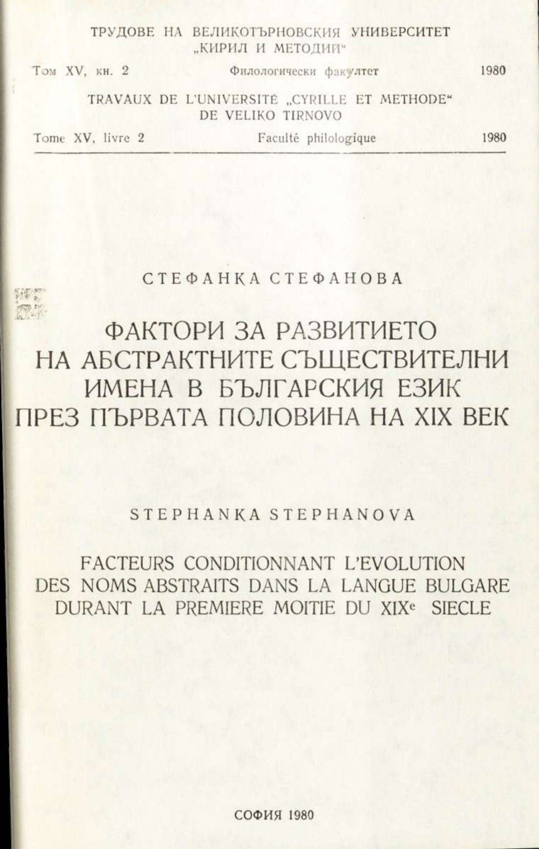 Том 15. Кн.2. Трудове на Великотърновския университет "Св. св. Кирил и Методий". Филологически факултет = Travaux de L'universite St. St. Cyrille et Methode de Veliko Tirnovo. Faculte de philologue Езикознание