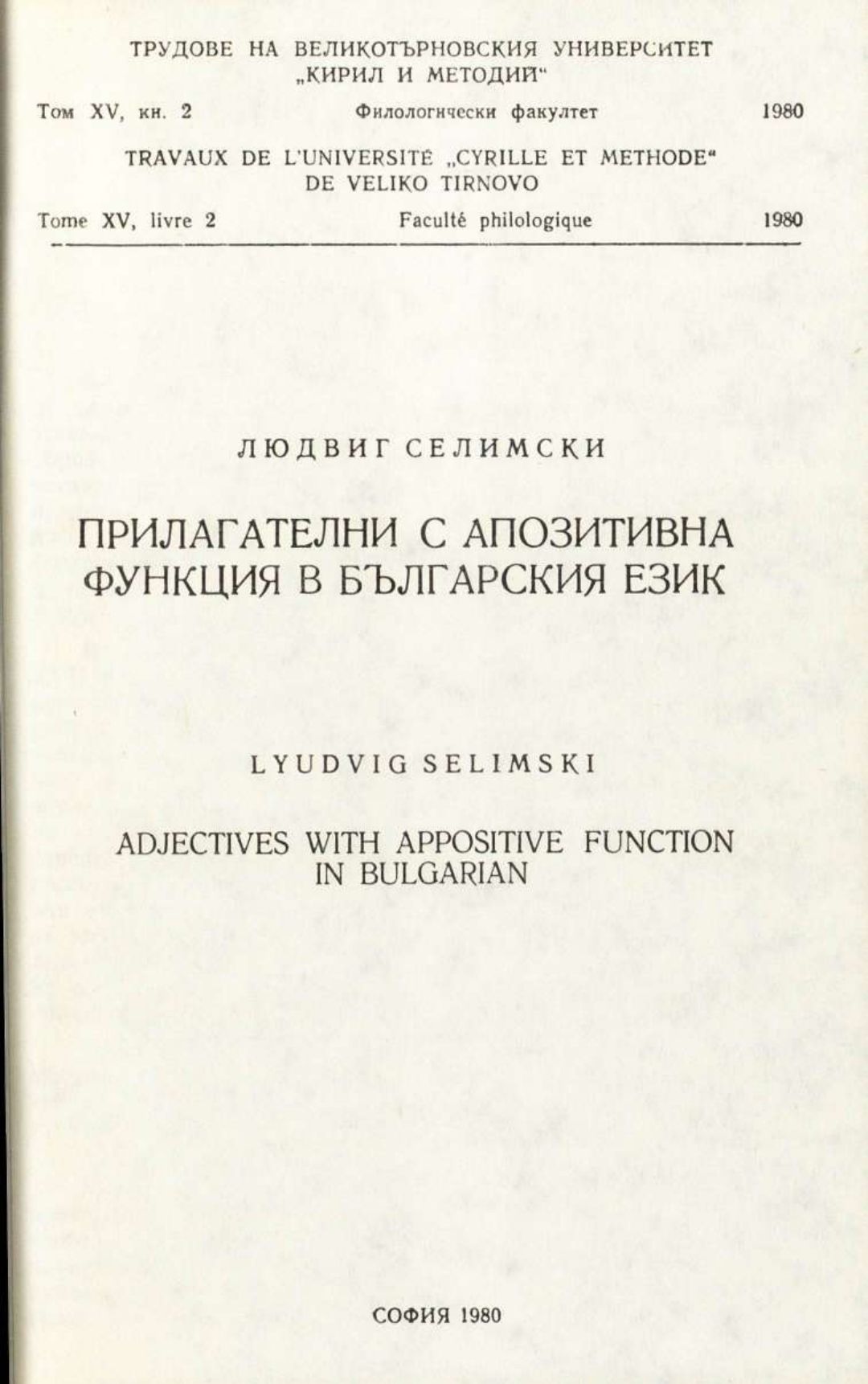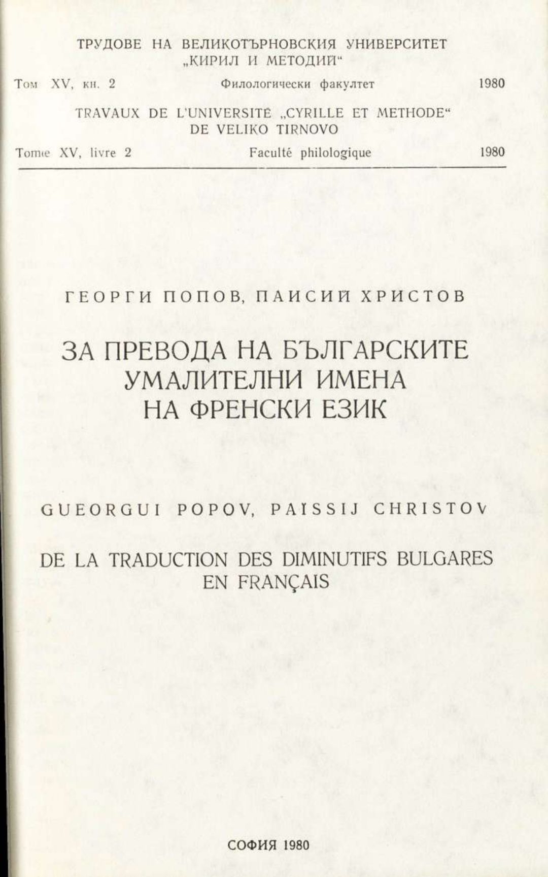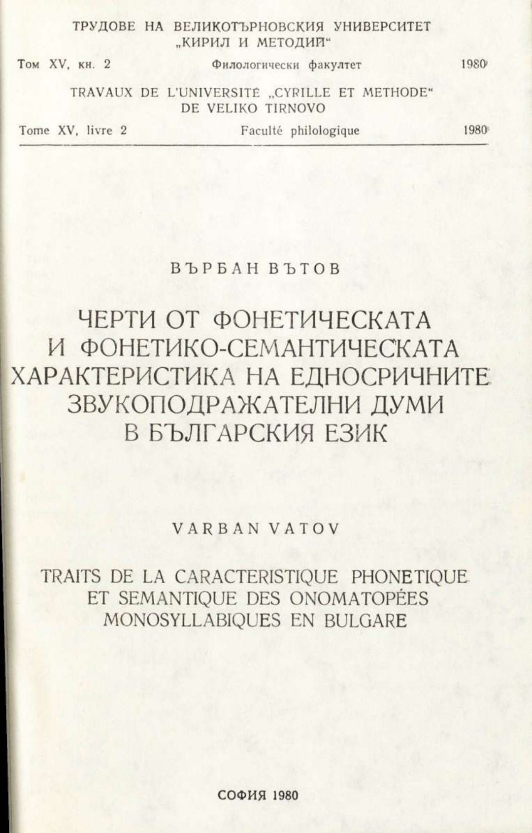 Том 15. Кн.2. Трудове на Великотърновския университет "Св. св. Кирил и Методий". Филологически факултет = Travaux de L'universite St. St. Cyrille et Methode de Veliko Tirnovo. Faculte de philologue Езикознание