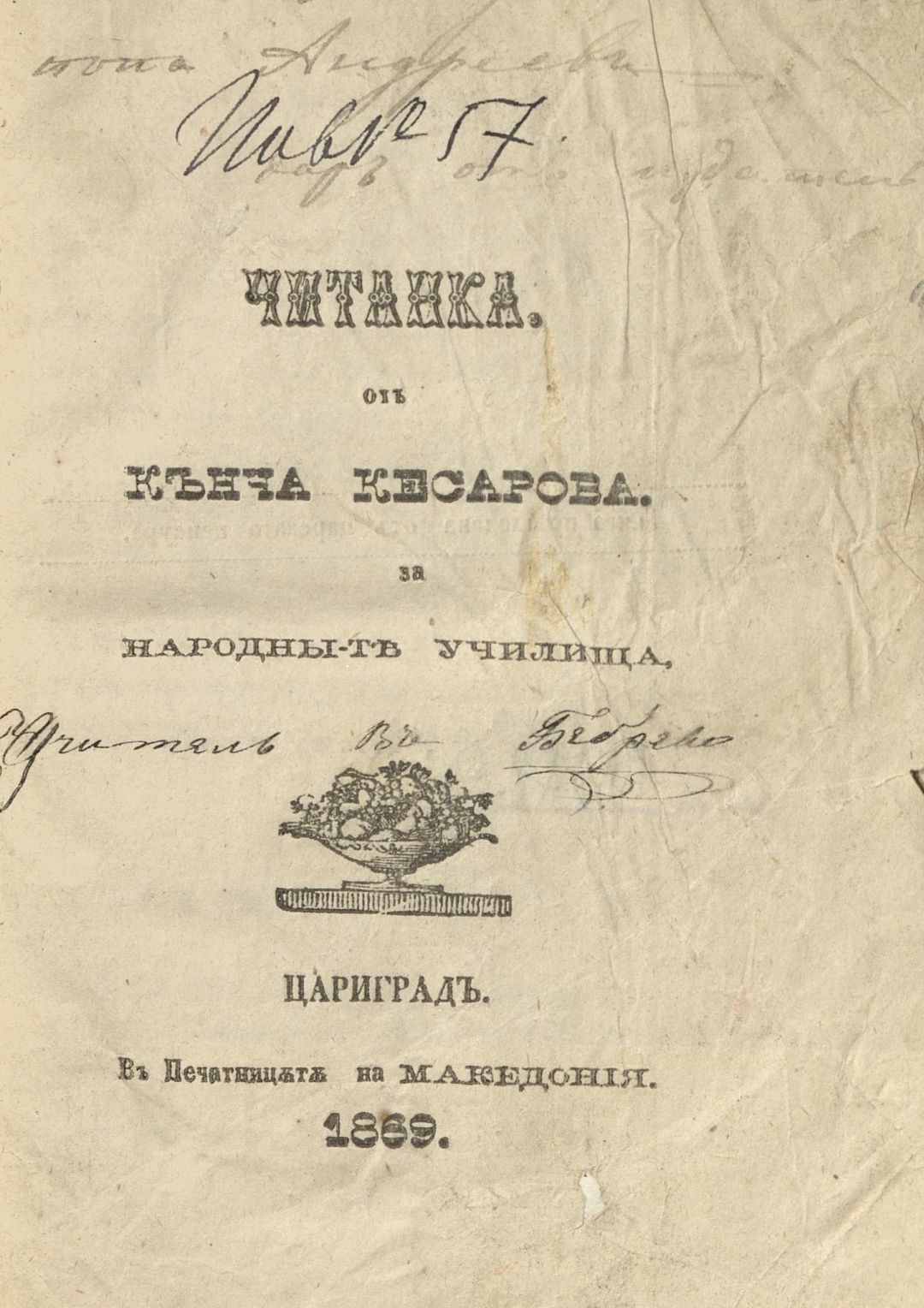 Читанка от Кънча Кесарова за народните училища