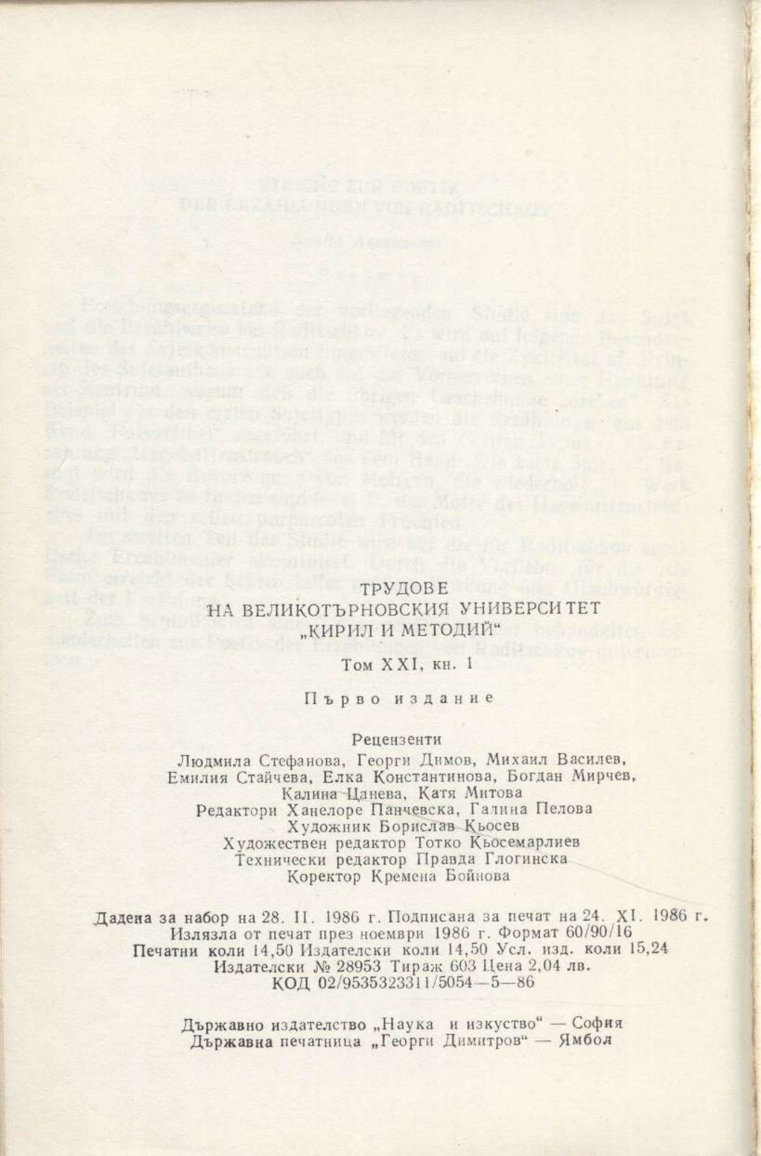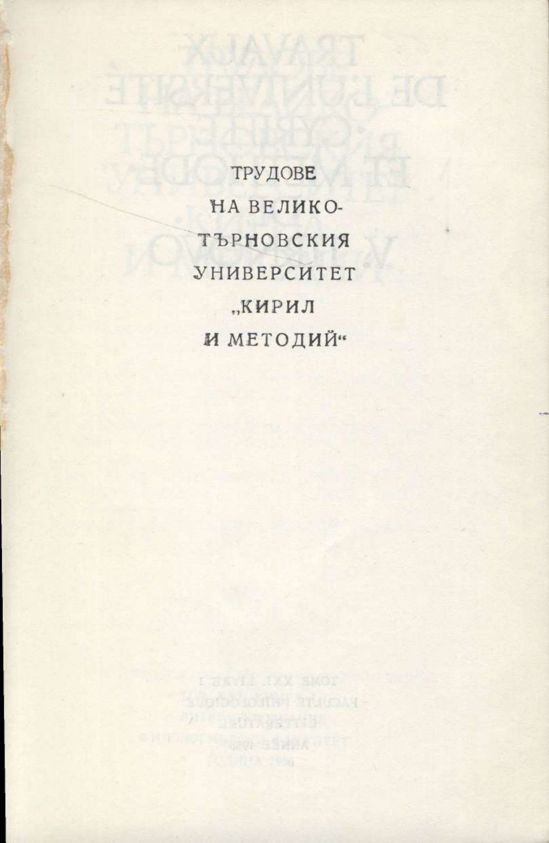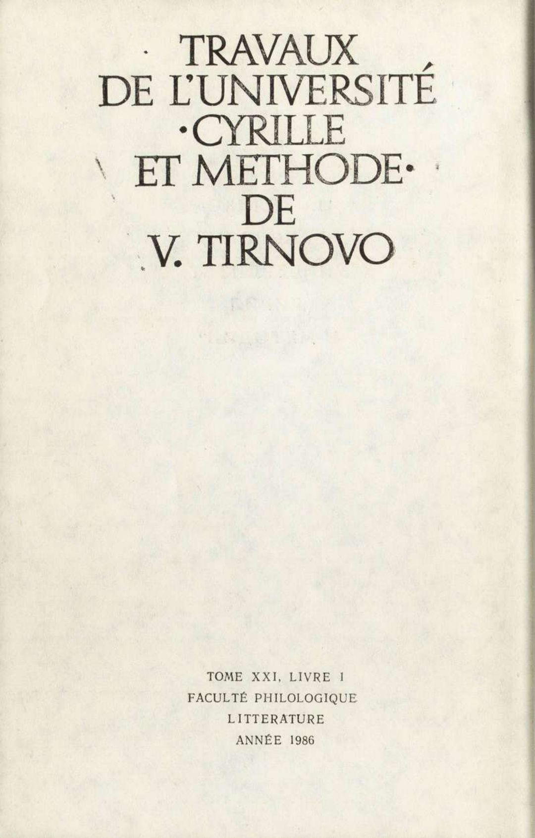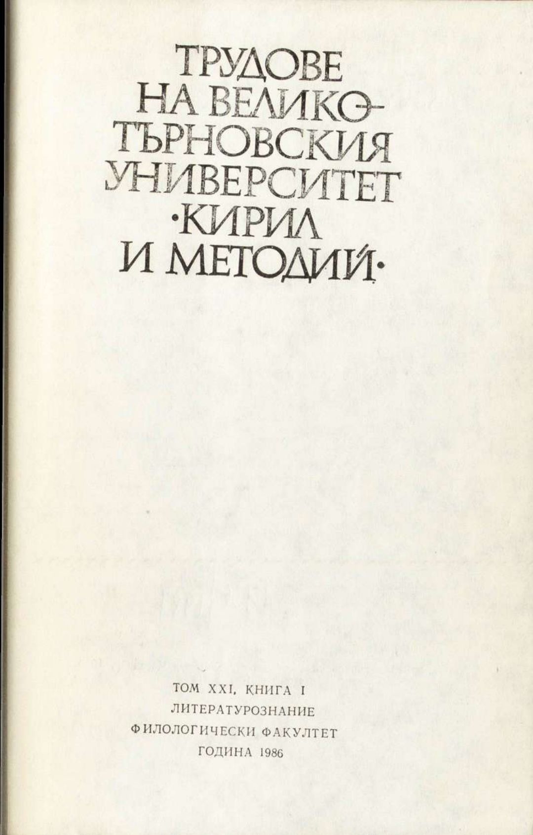 Том 21. Кн.1. Трудове на Великотърновския университет "Св. св. Кирил и Методий". Филологически факултет = Travaux de L'universite St. St. Cyrille et Methode de Veliko Tirnovo. Faculte de philologue Литературознание