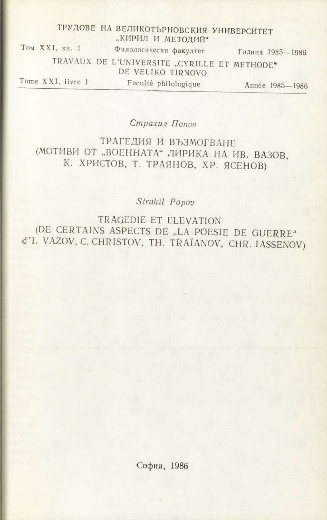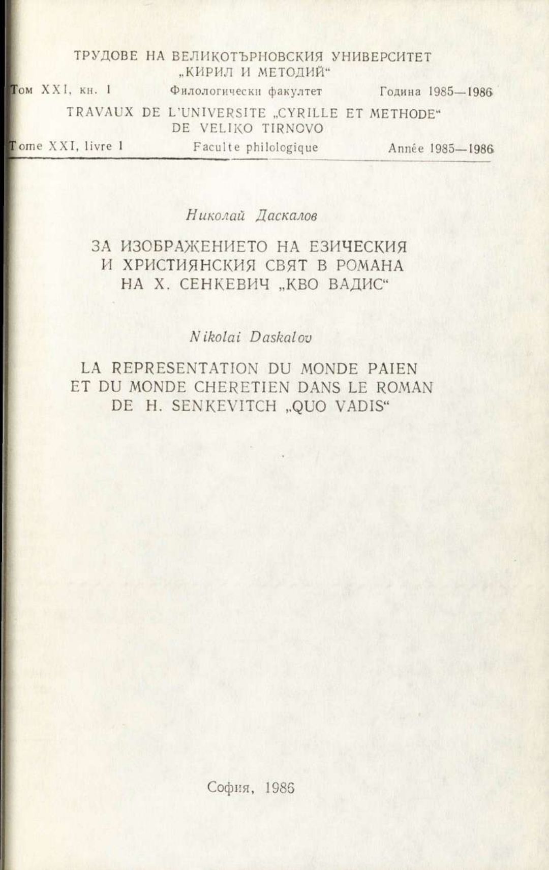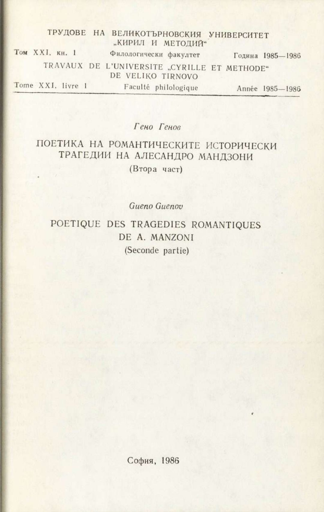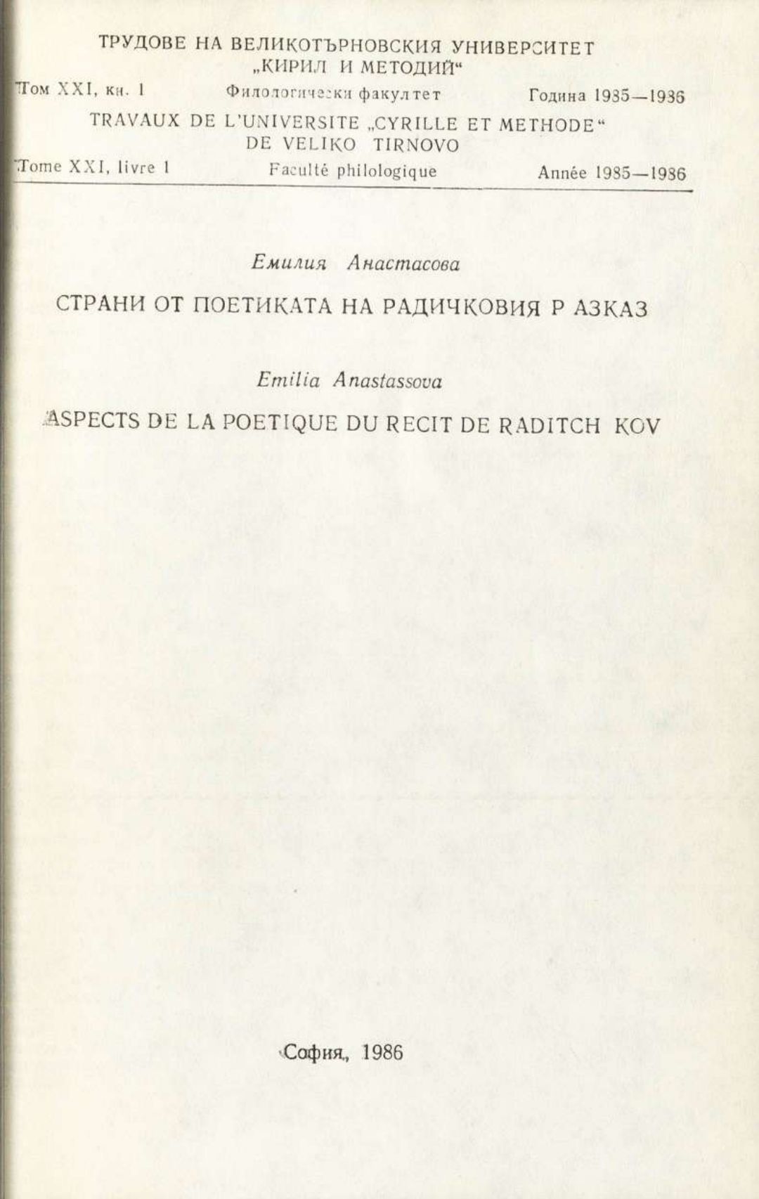 Том 21. Кн.1. Трудове на Великотърновския университет "Св. св. Кирил и Методий". Филологически факултет = Travaux de L'universite St. St. Cyrille et Methode de Veliko Tirnovo. Faculte de philologue Литературознание