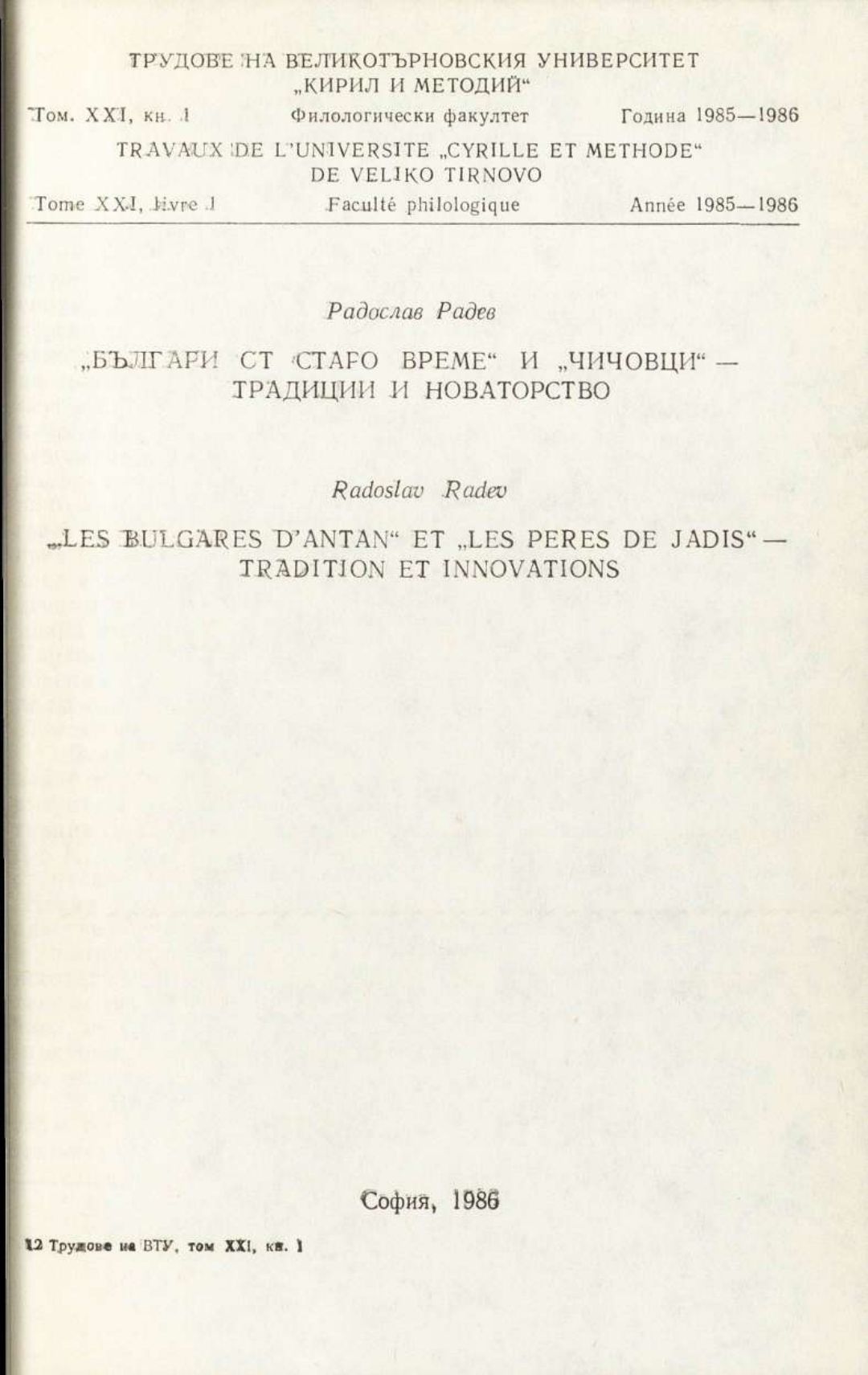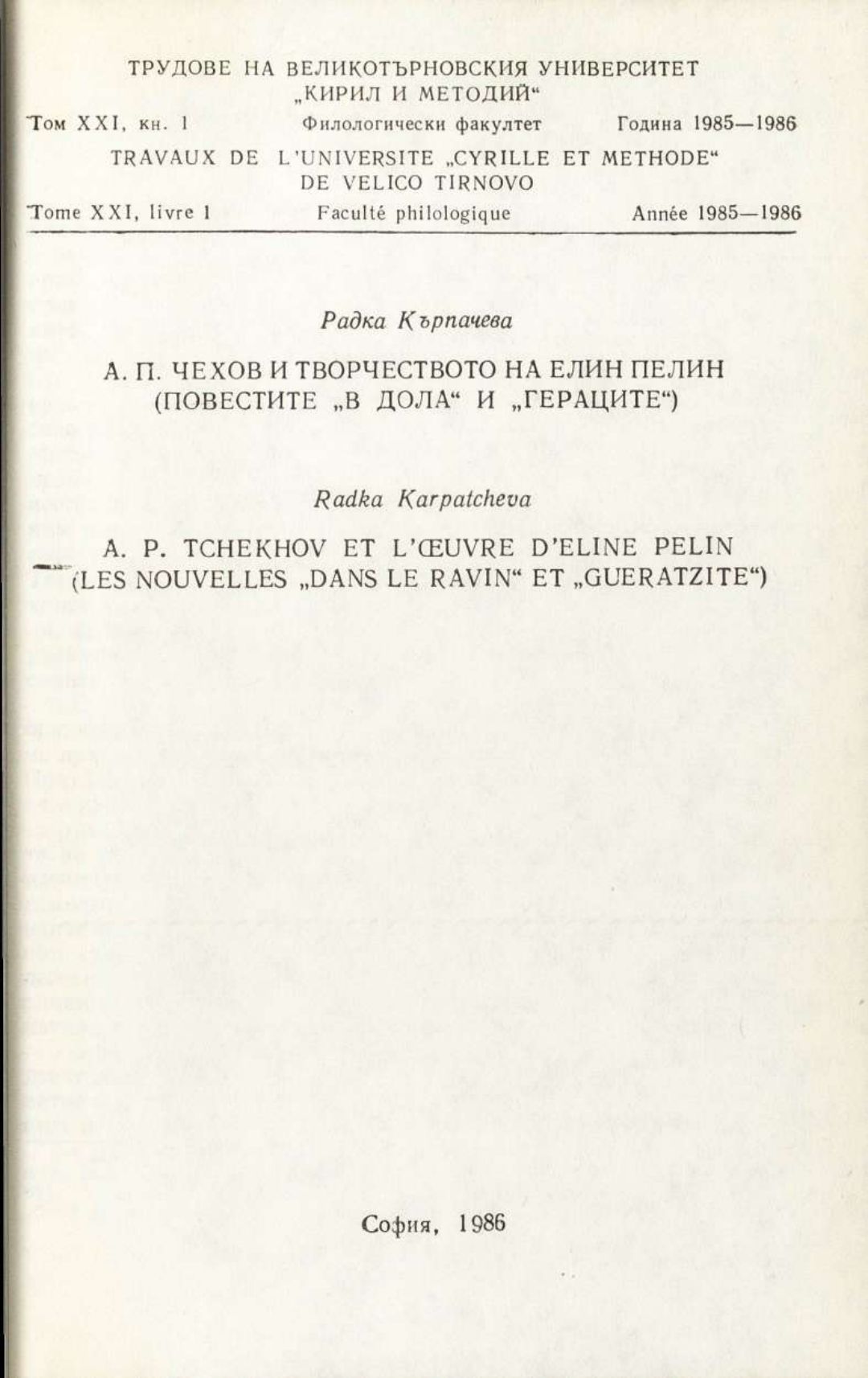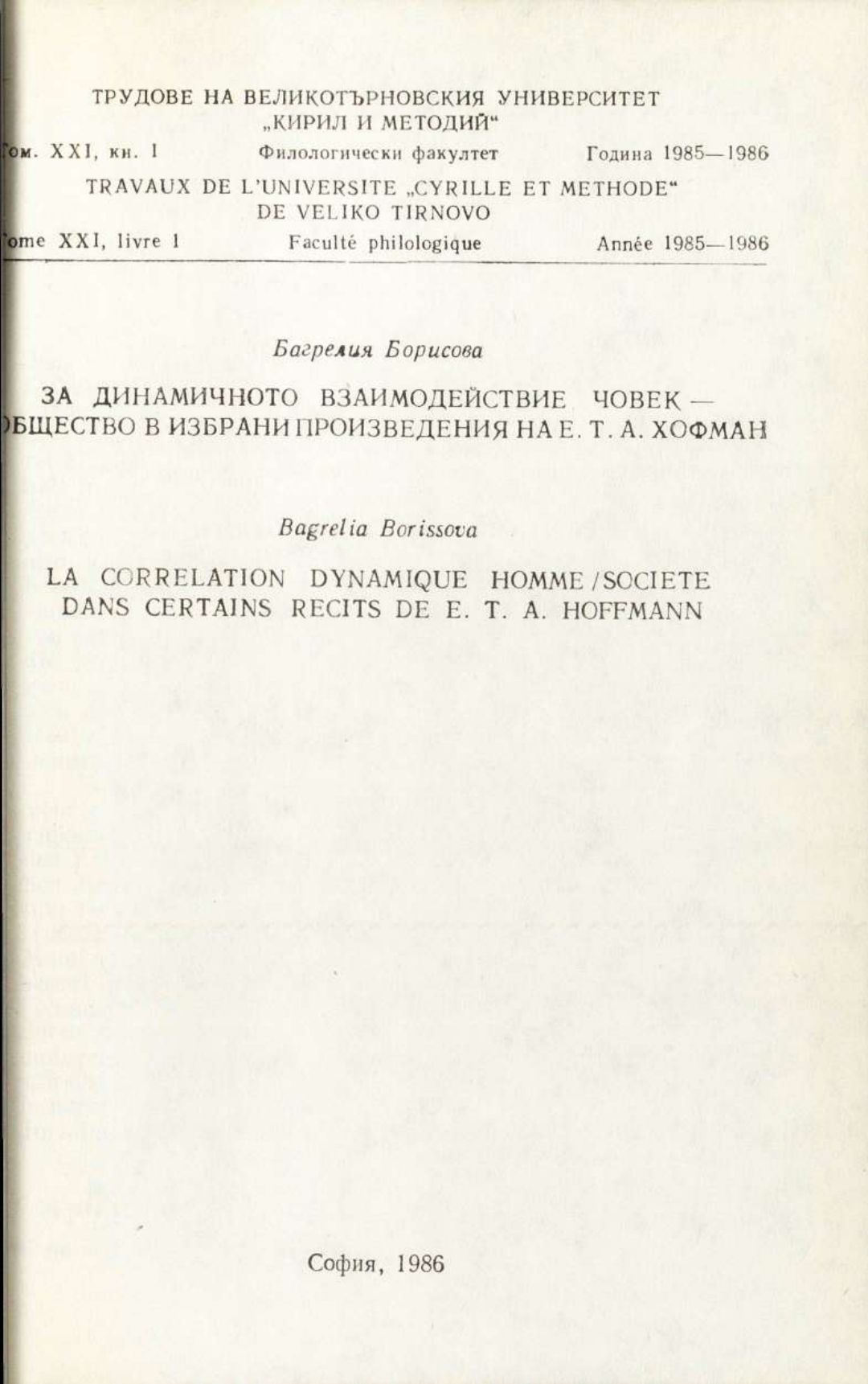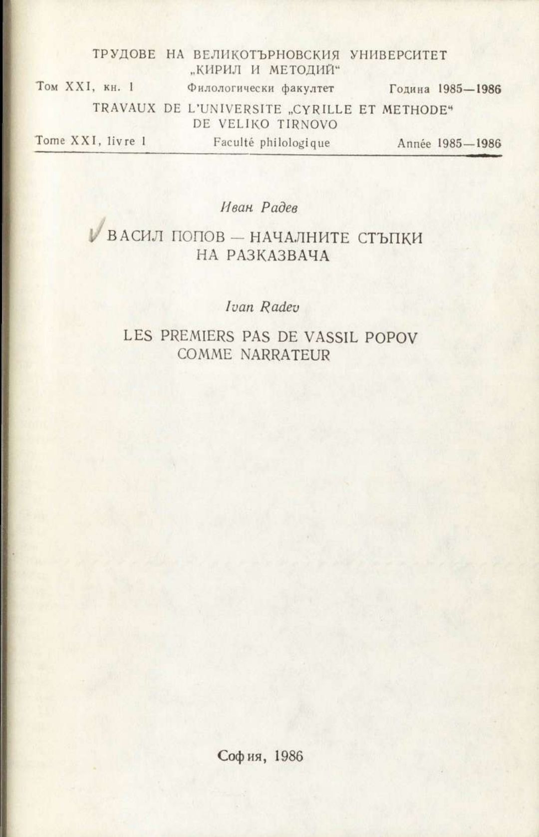 Том 21. Кн.1. Трудове на Великотърновския университет "Св. св. Кирил и Методий". Филологически факултет = Travaux de L'universite St. St. Cyrille et Methode de Veliko Tirnovo. Faculte de philologue Литературознание