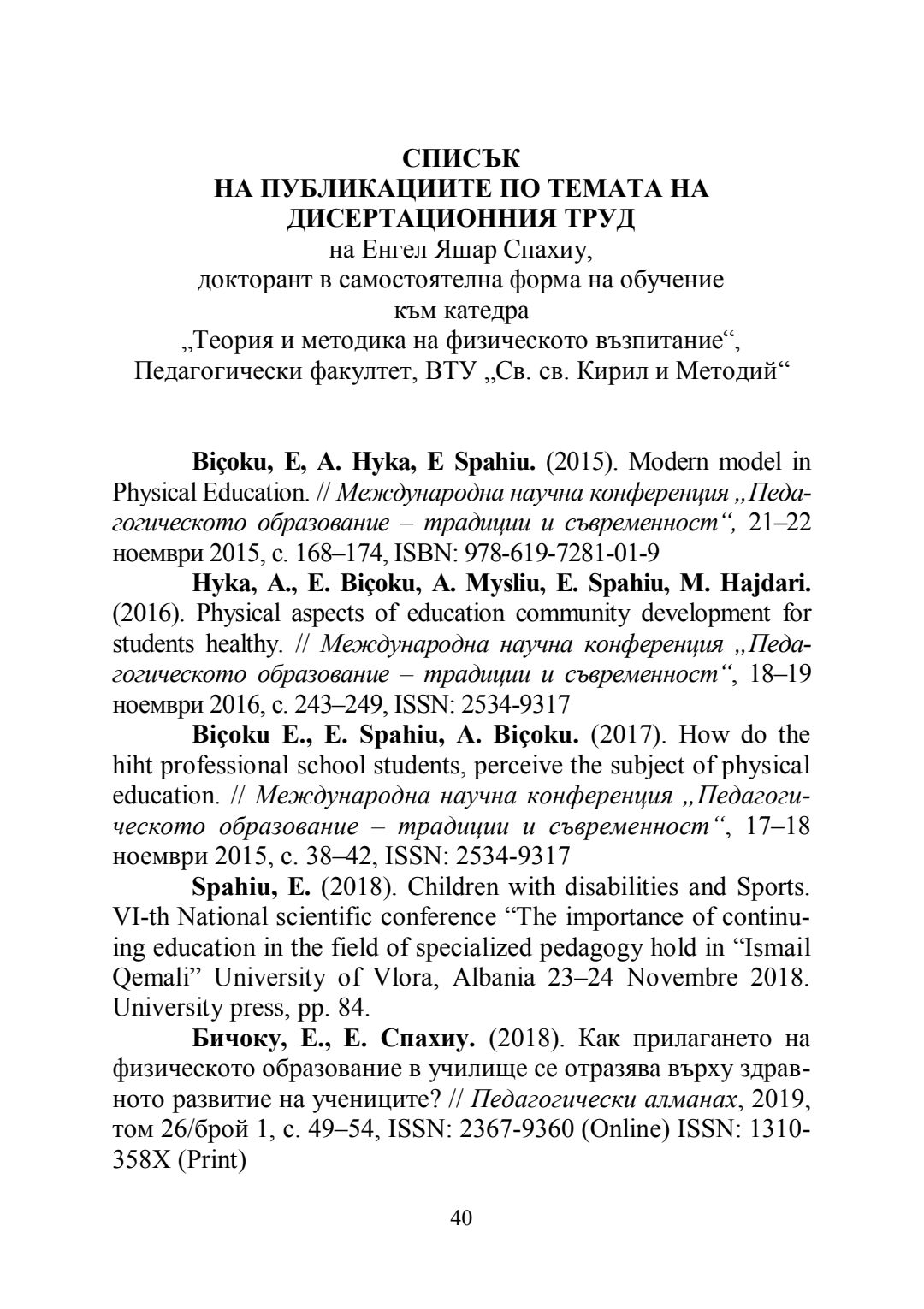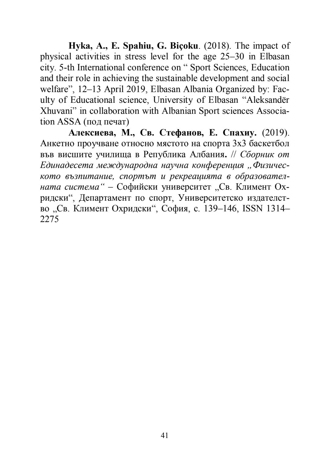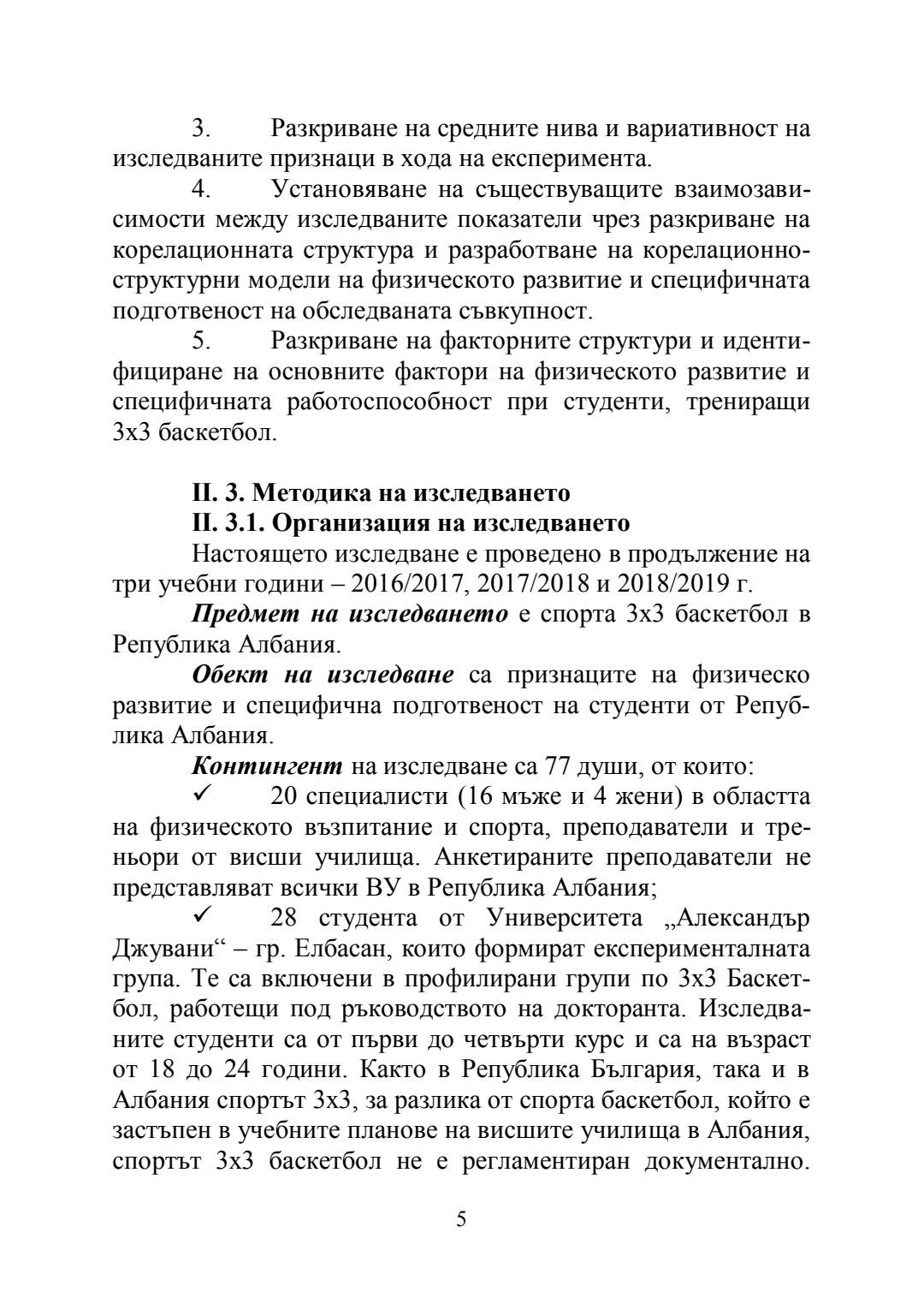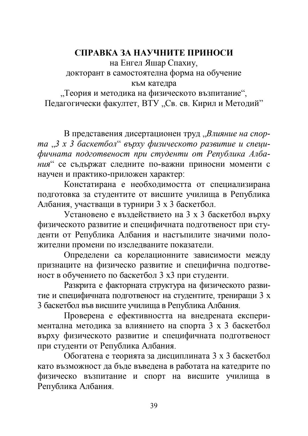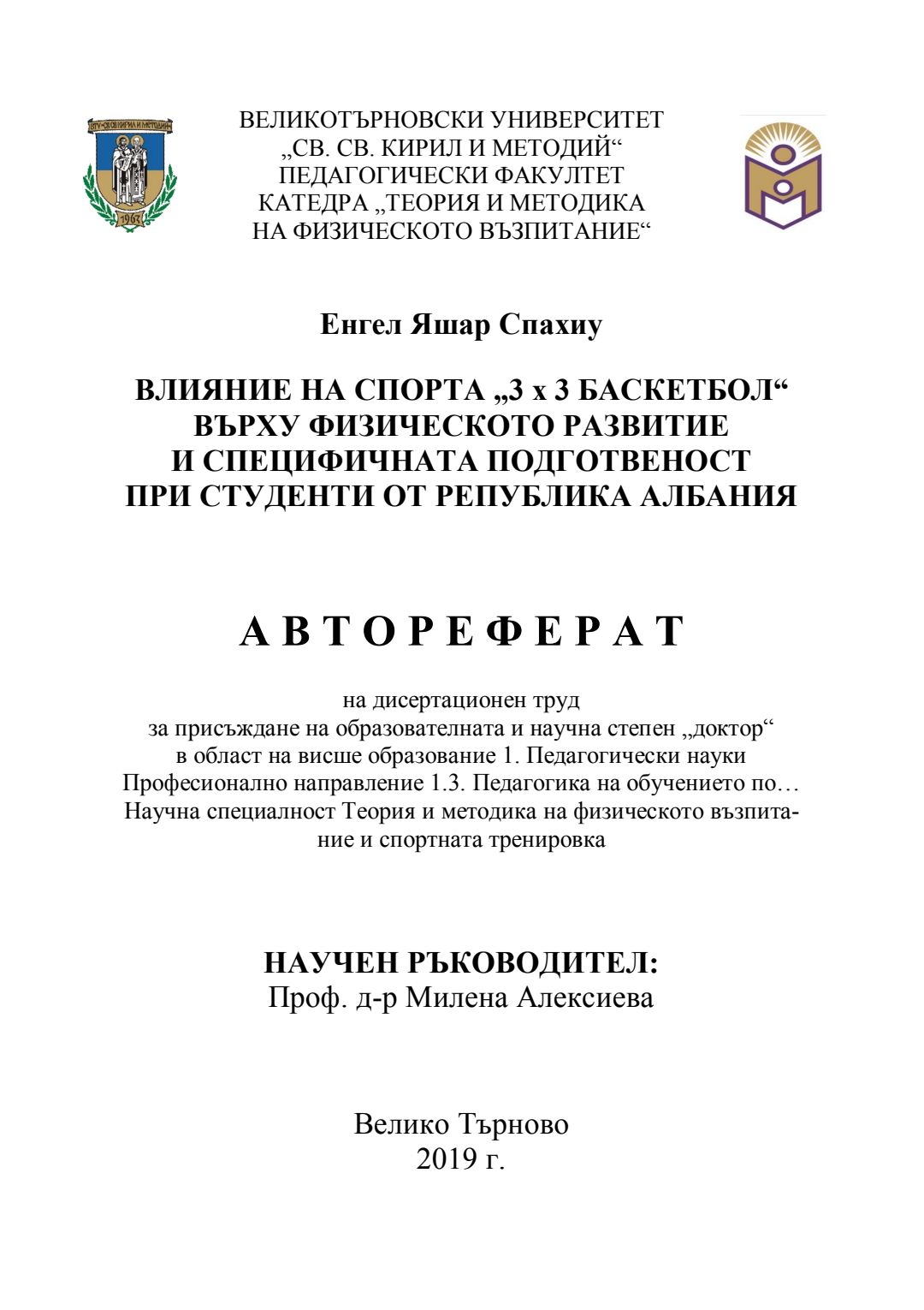 Влияние на спорта 3х3 баскетбол върху физическото развитие и специфичната подготвеност при студенти от Република Албания : Автореферат / Енгел Яшар Спахиу ; Науч. ръководител Милена Алексиева