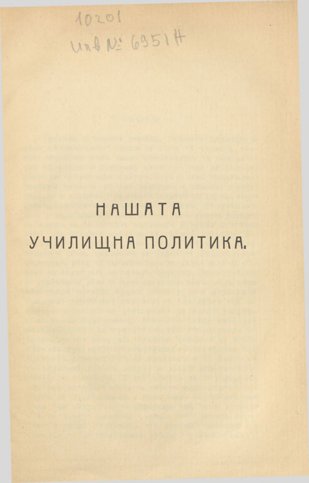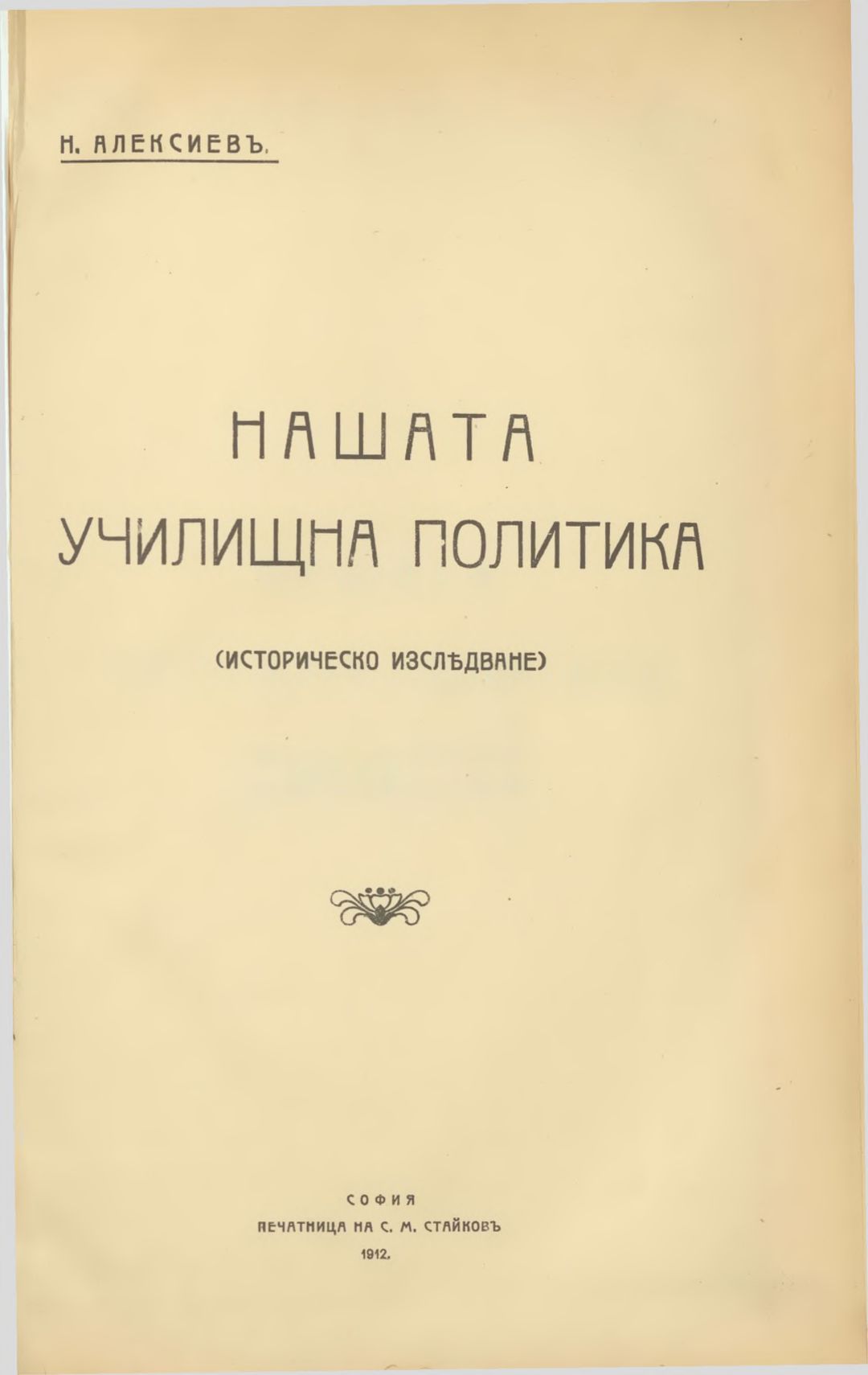 Нашата училищна политика : историческо изследване / Никола Алексиев