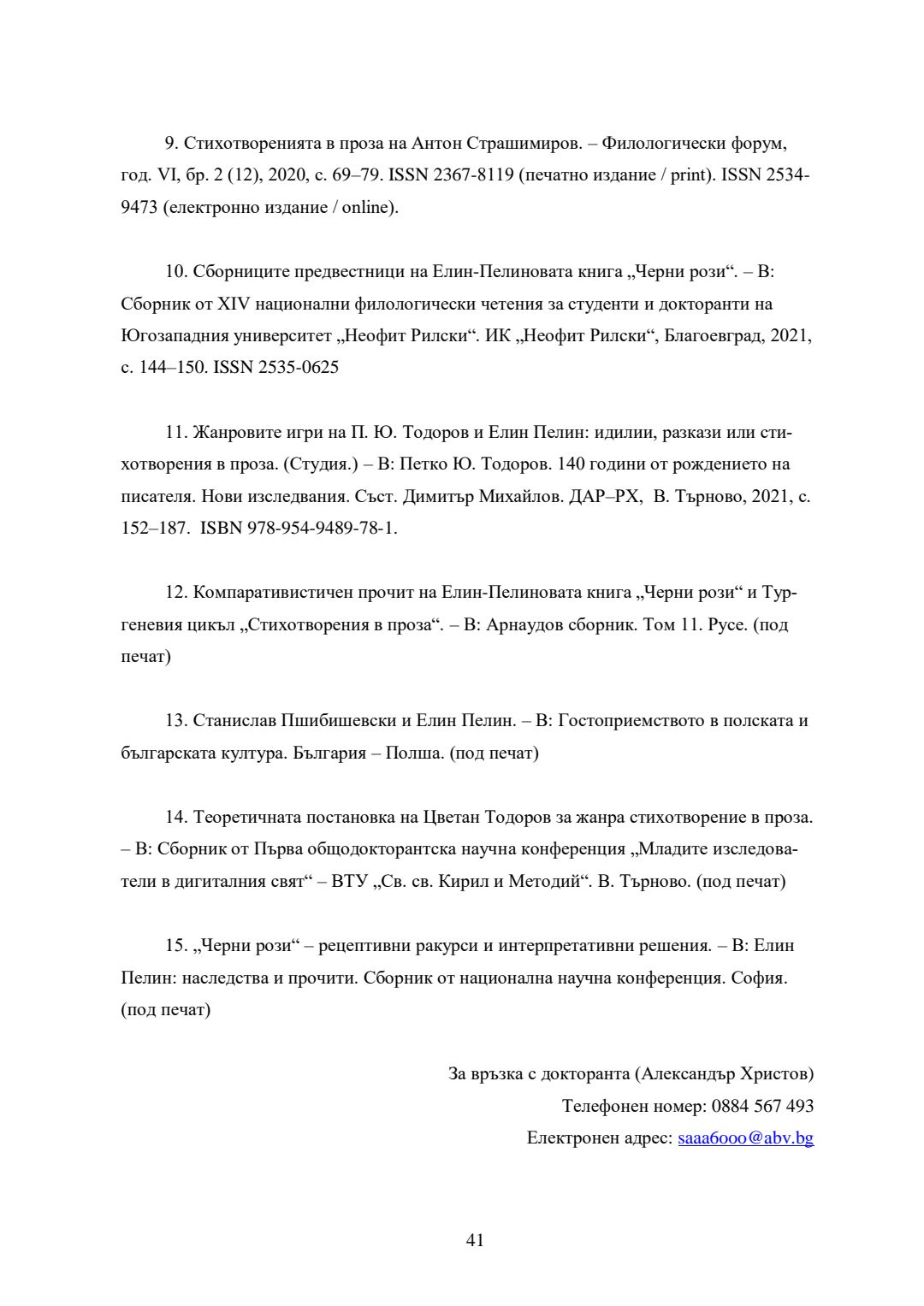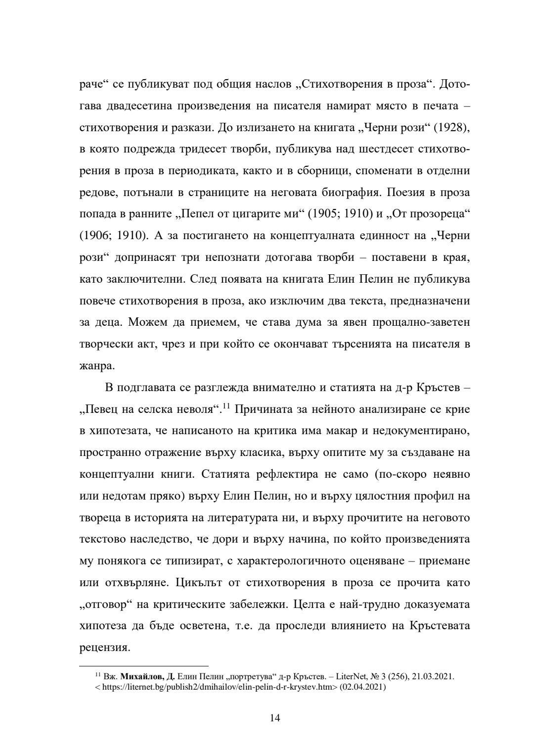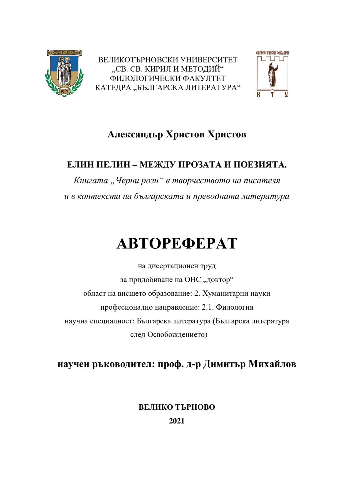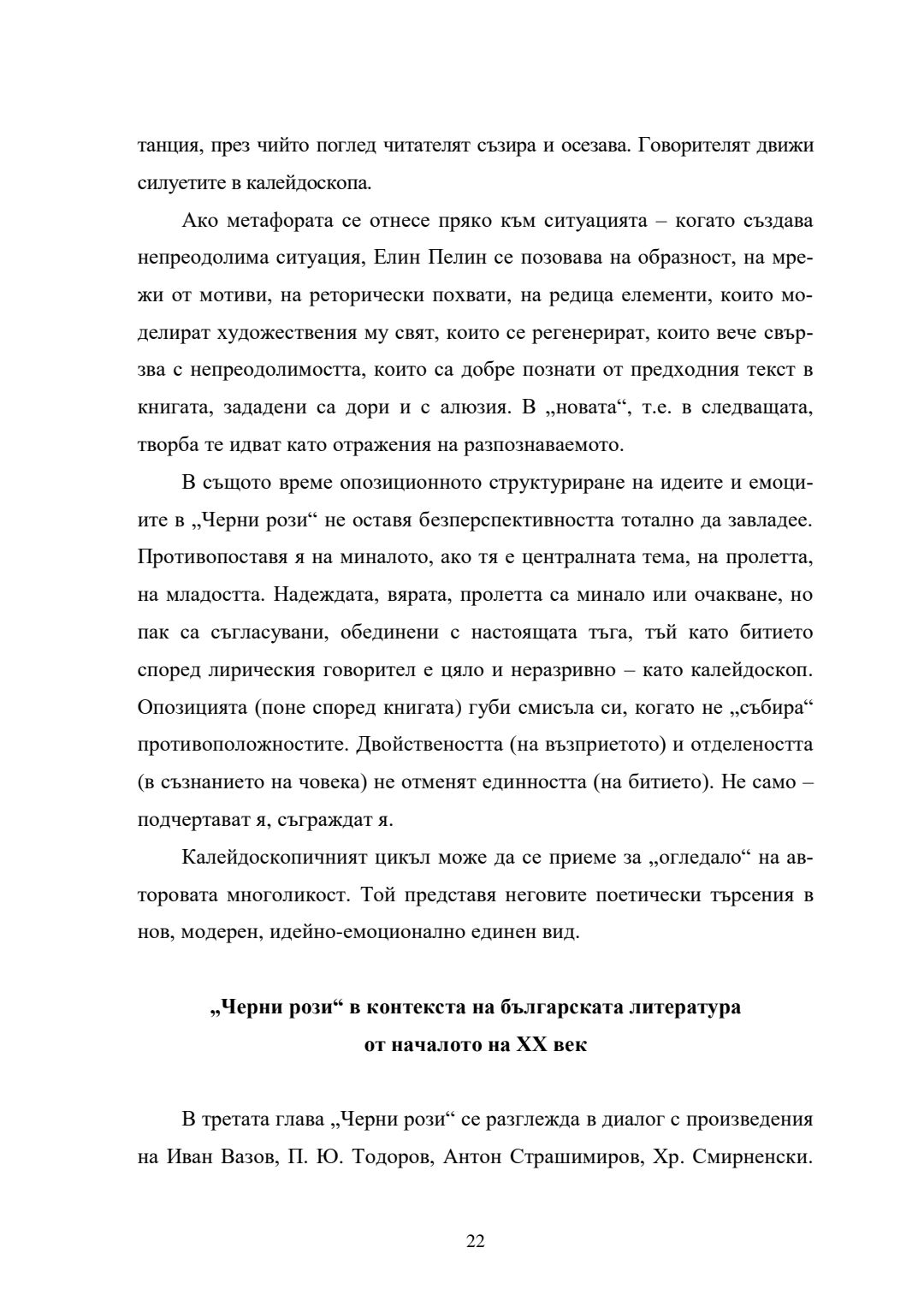Елин Пелин - между прозата и поезията. Книгата "Черни рози" в творчеството на писателя и в контекста на българската и преводната литература : Автореферат / Александър Христов ; Науч. ръководител Димитър Михайлов