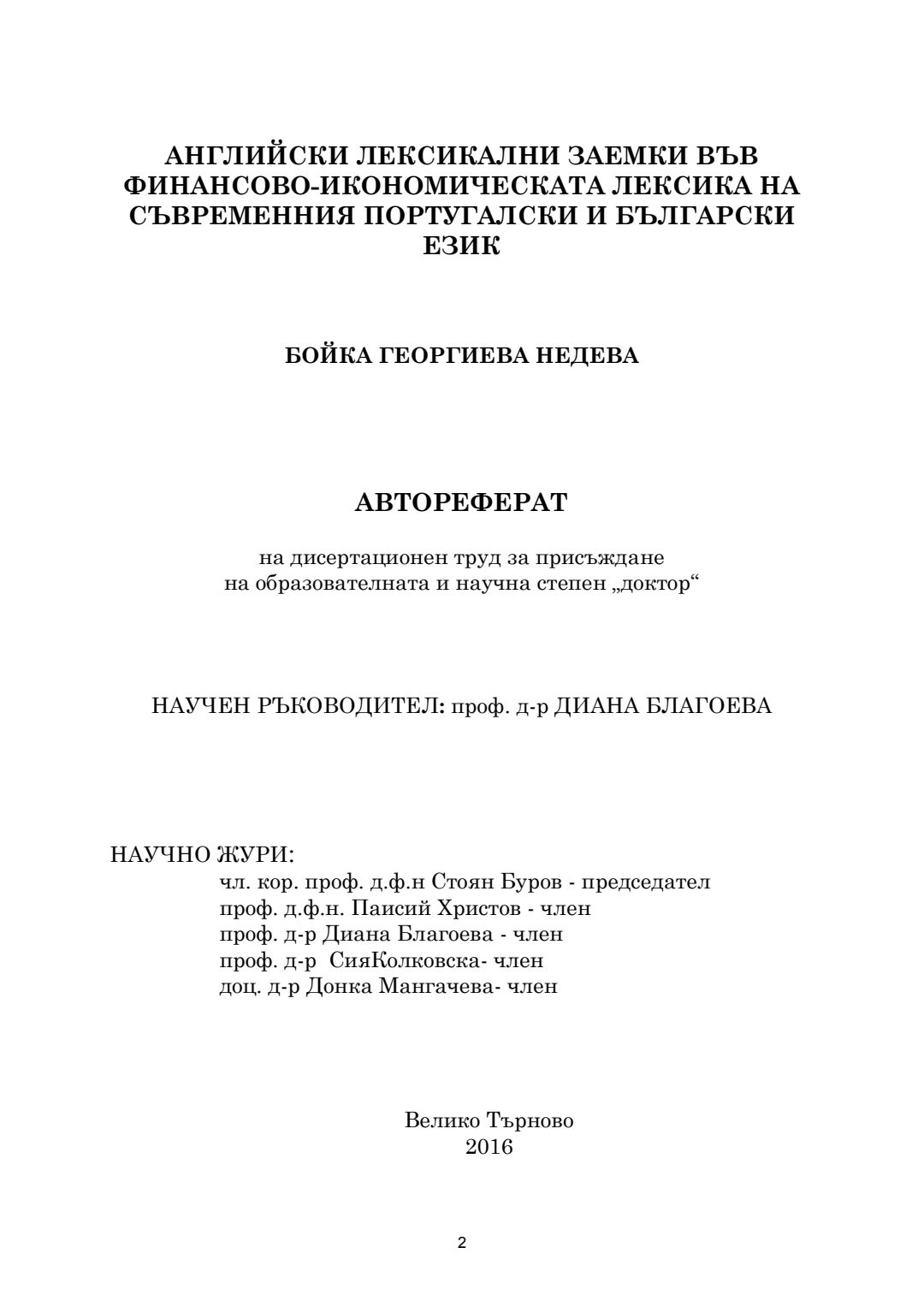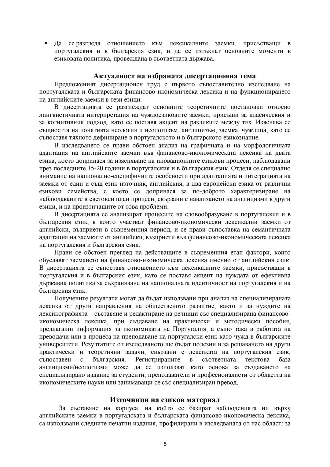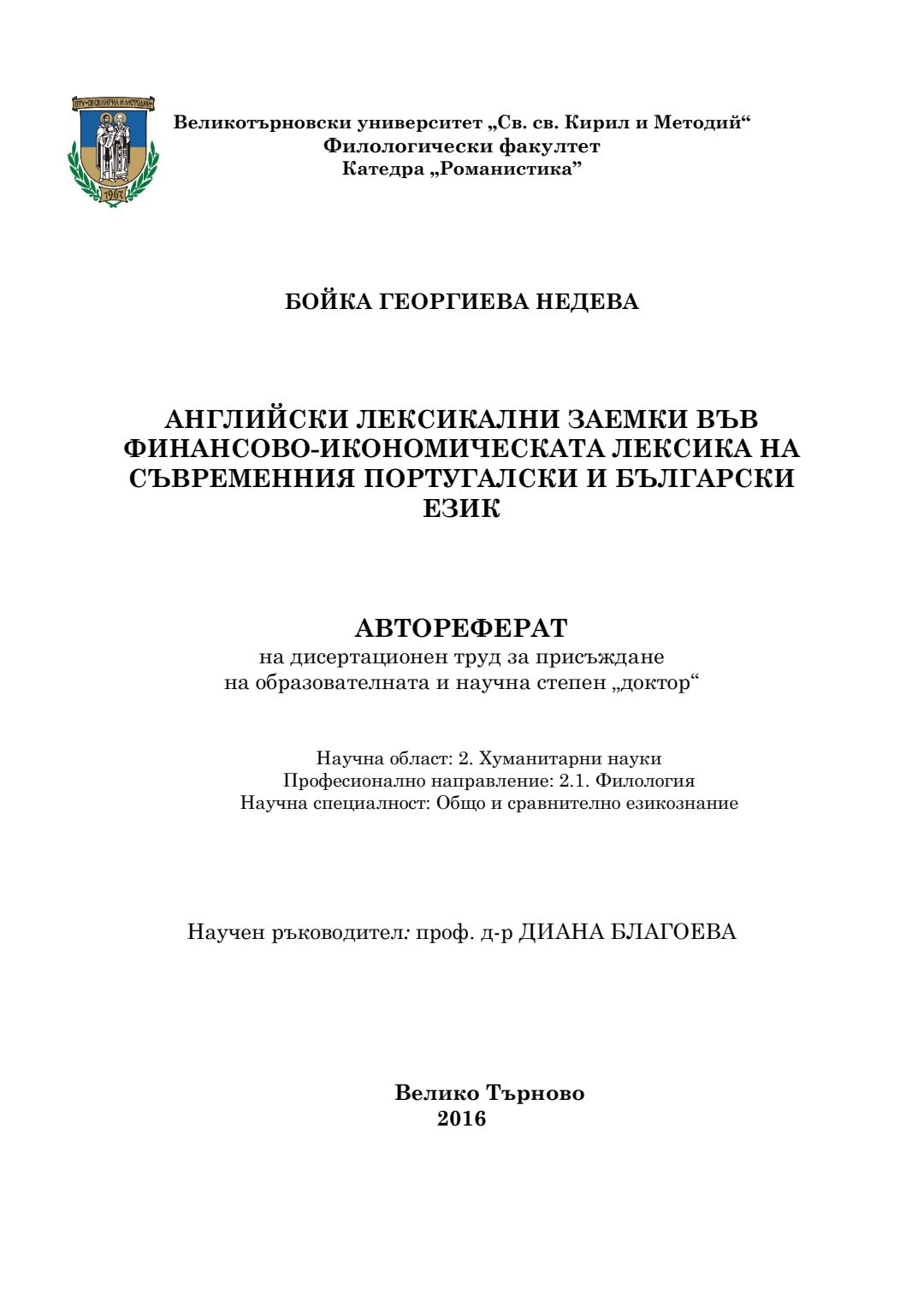 Английски лексикални заемки във финансово-икономическата лексика на съвременния португалски и български език : Автореферат / Бойка Георгиева Недева ; Науч. ръководител Диана Благоева