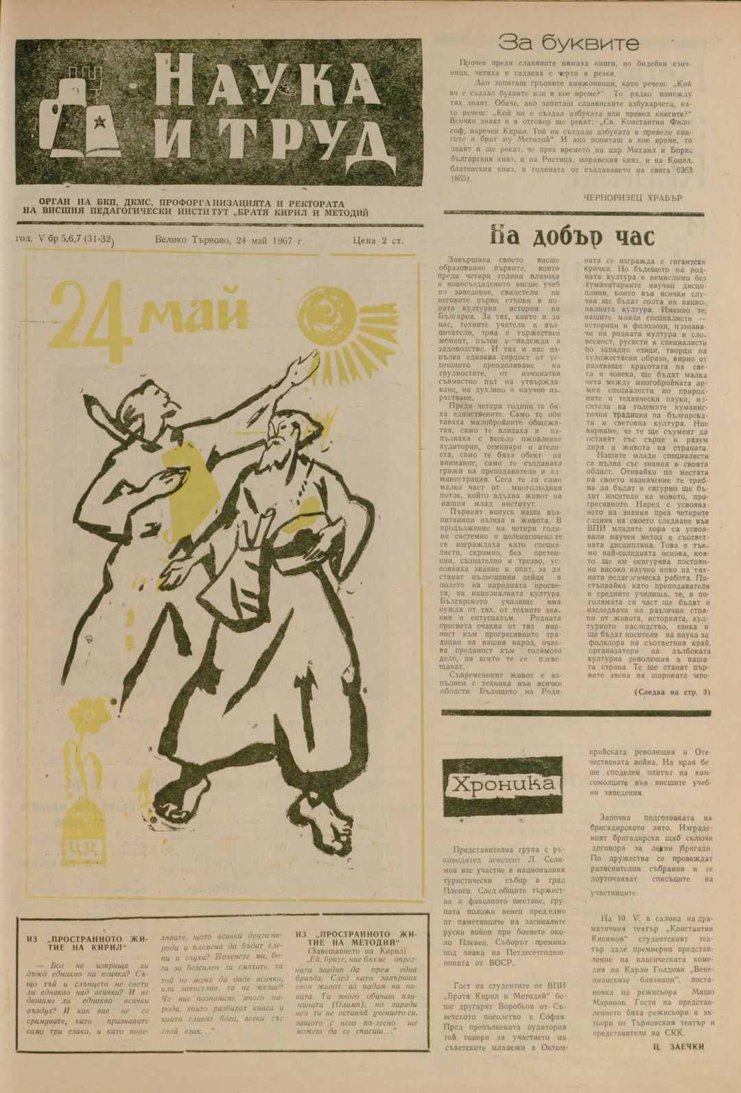 Год. 5, 5-6-7 (31-32). Наука и труд : Орган на БКП, ДКМС и Профорганизацията и Ректората на ВПИ "Братя Кирил и Методий"