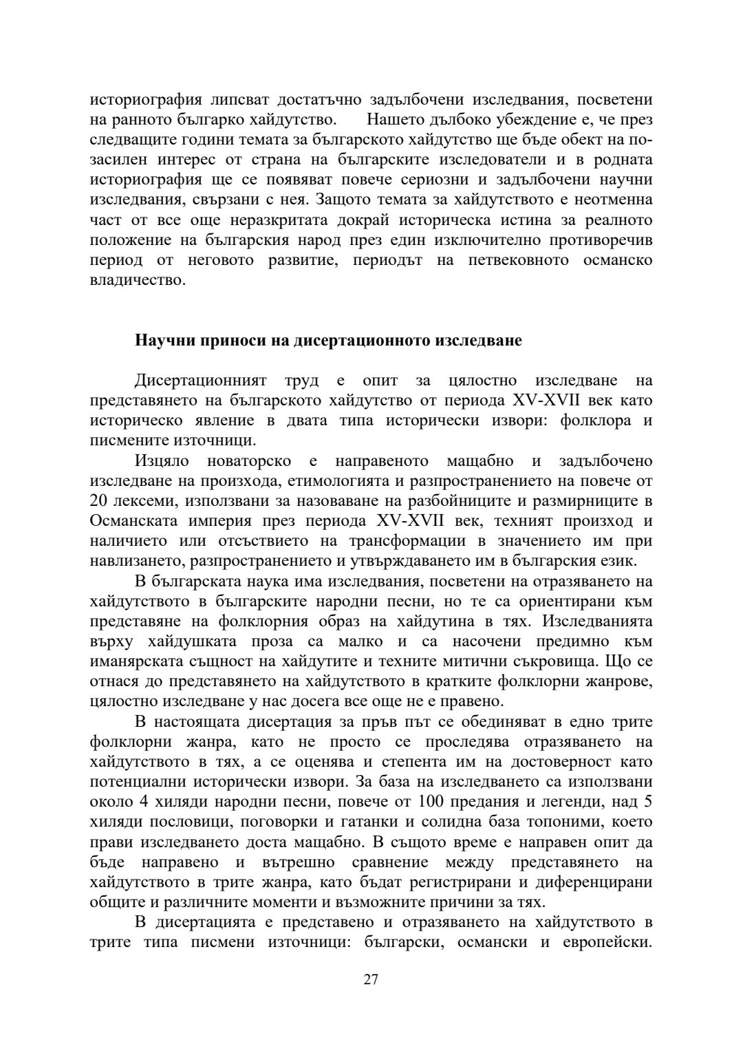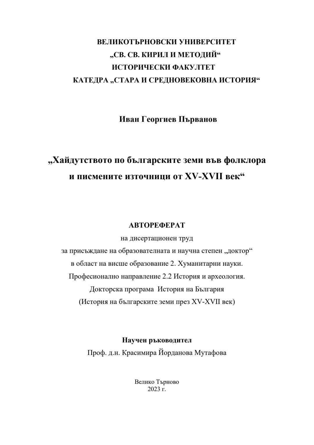 Хайдутството по българските земи във фолклора и писмените източници от XV-XVII век : Автореферат / Иван Георгиев Първанов ; Науч. ръководител Красимира Мутафова