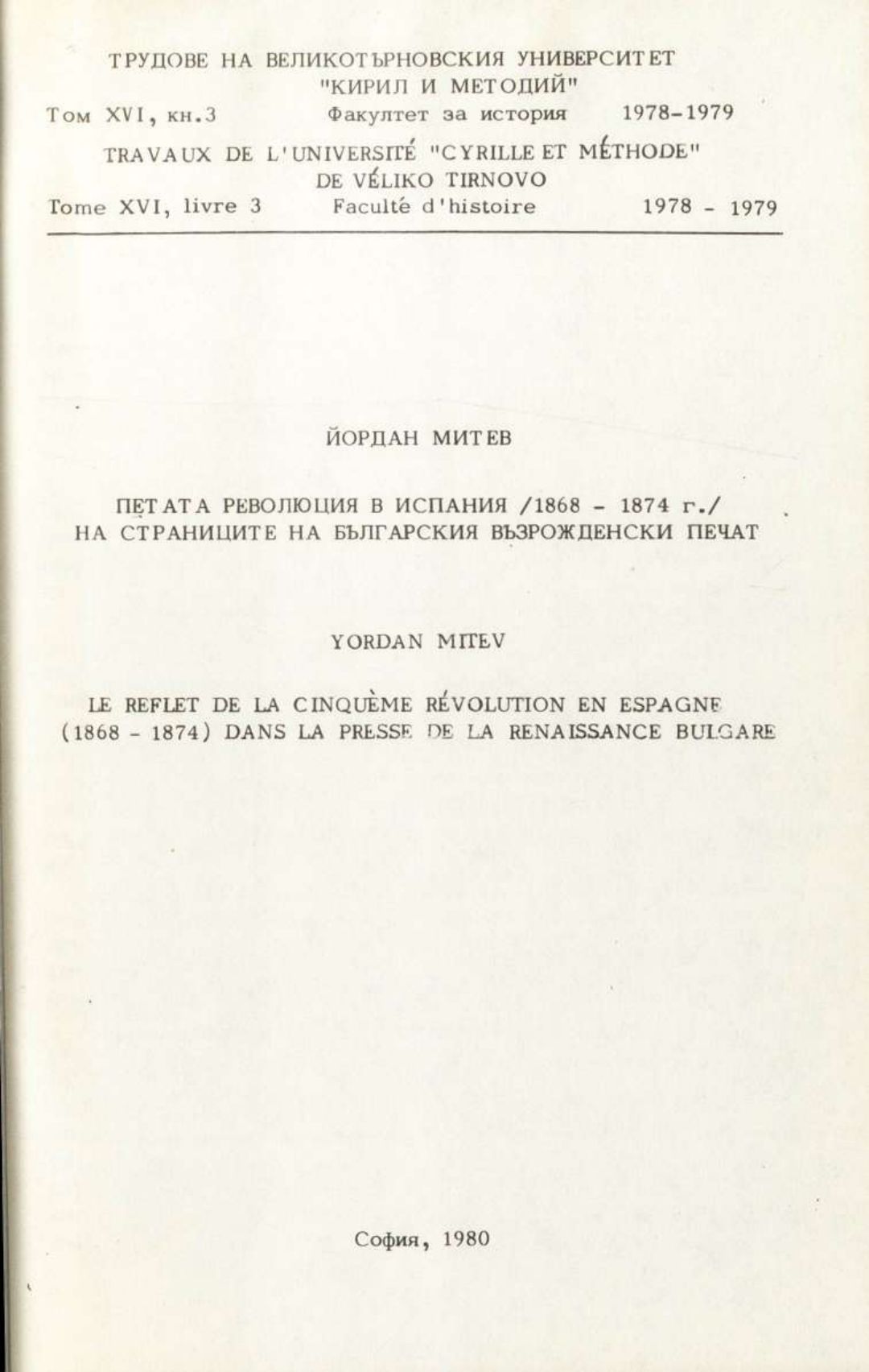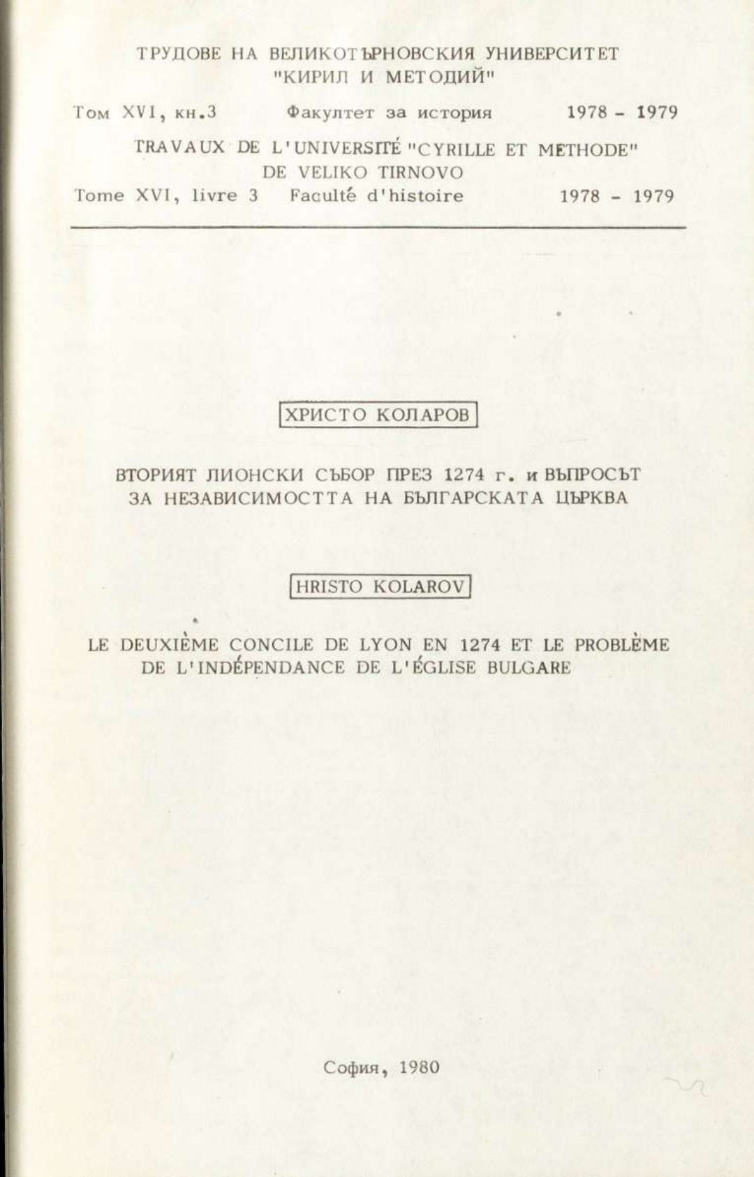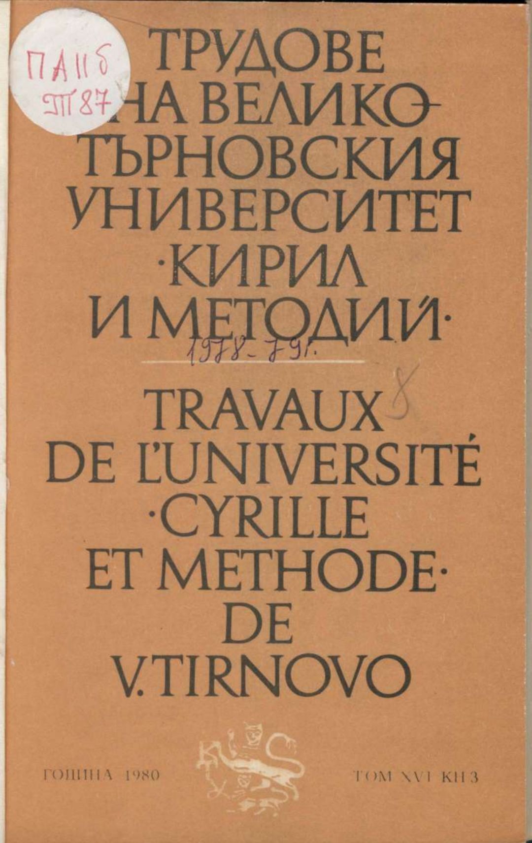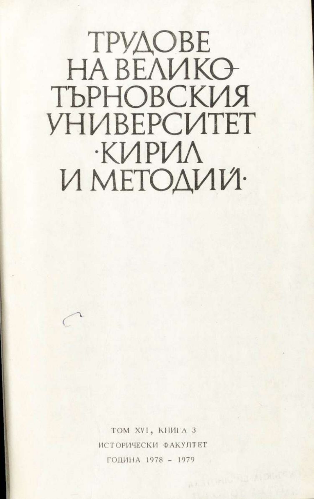 Том 16. Кн. 3. Трудове на Великотърновския университет "Св. св. Кирил и Методий". Исторически факултет = Travaux de L'universite St. St. Cyrille et Methode de V. Tirnovo. Faculte histoire