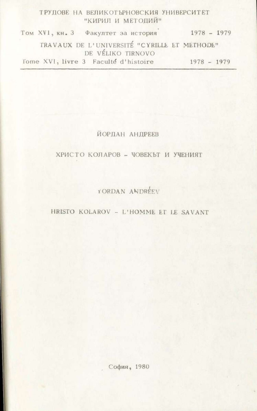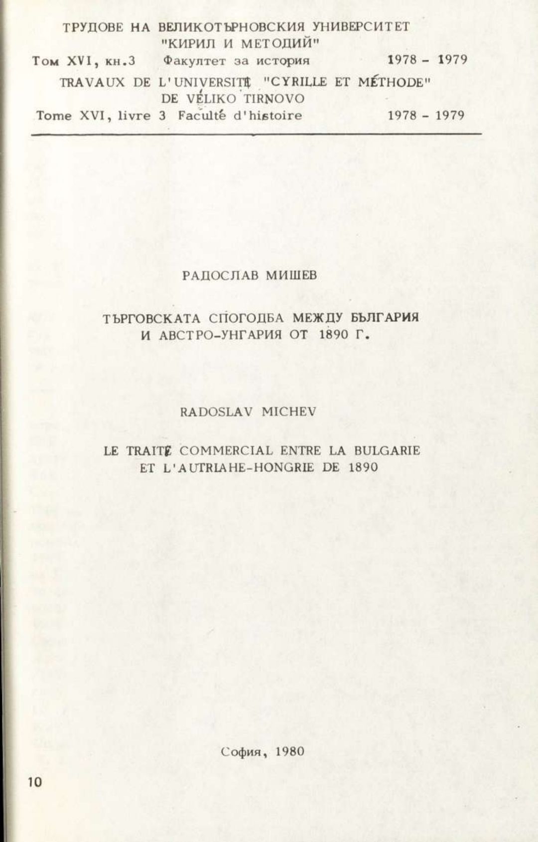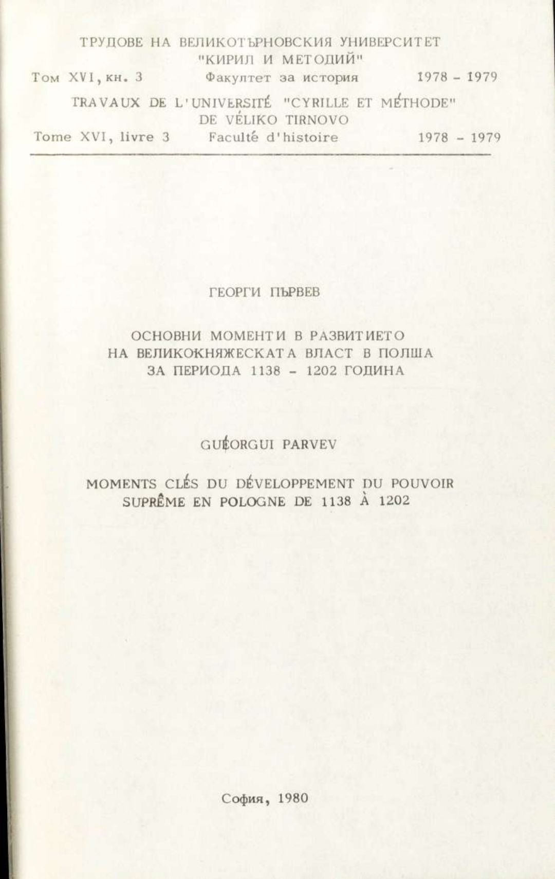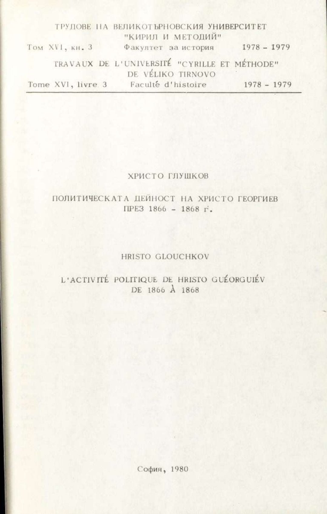Том 16. Кн. 3. Трудове на Великотърновския университет "Св. св. Кирил и Методий". Исторически факултет = Travaux de L'universite St. St. Cyrille et Methode de V. Tirnovo. Faculte histoire