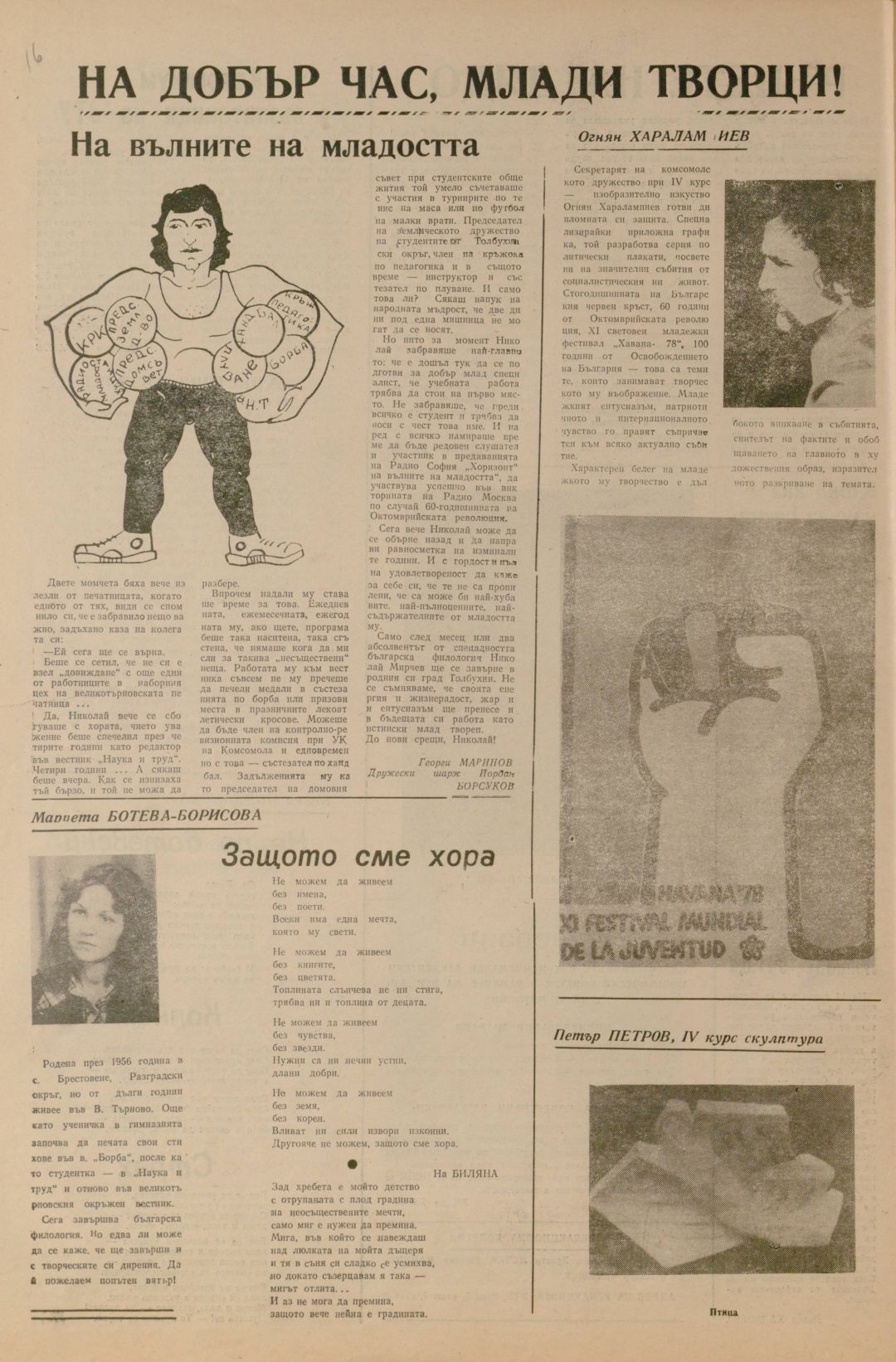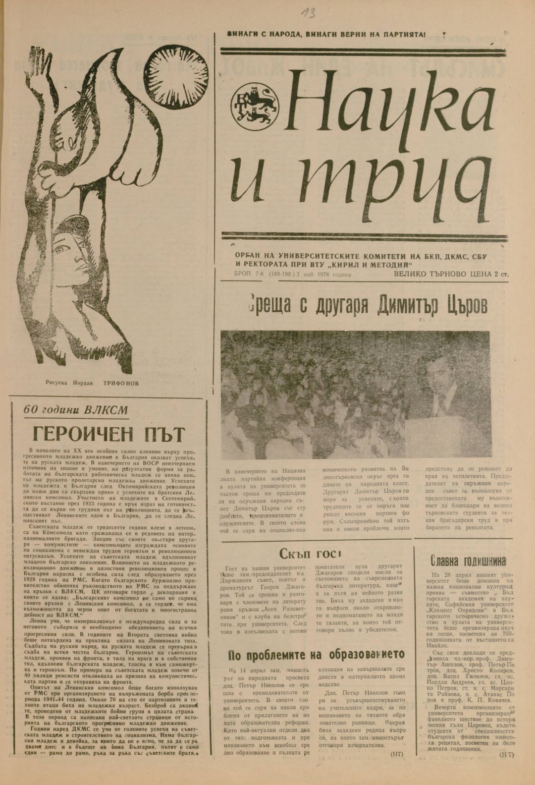 Год.17, 7-8 (189-190). Наука и труд : Орган на университетските организации на БКП, ДКМС, СУ и Ректората при ВПИ "Братя Кирил и Методий"