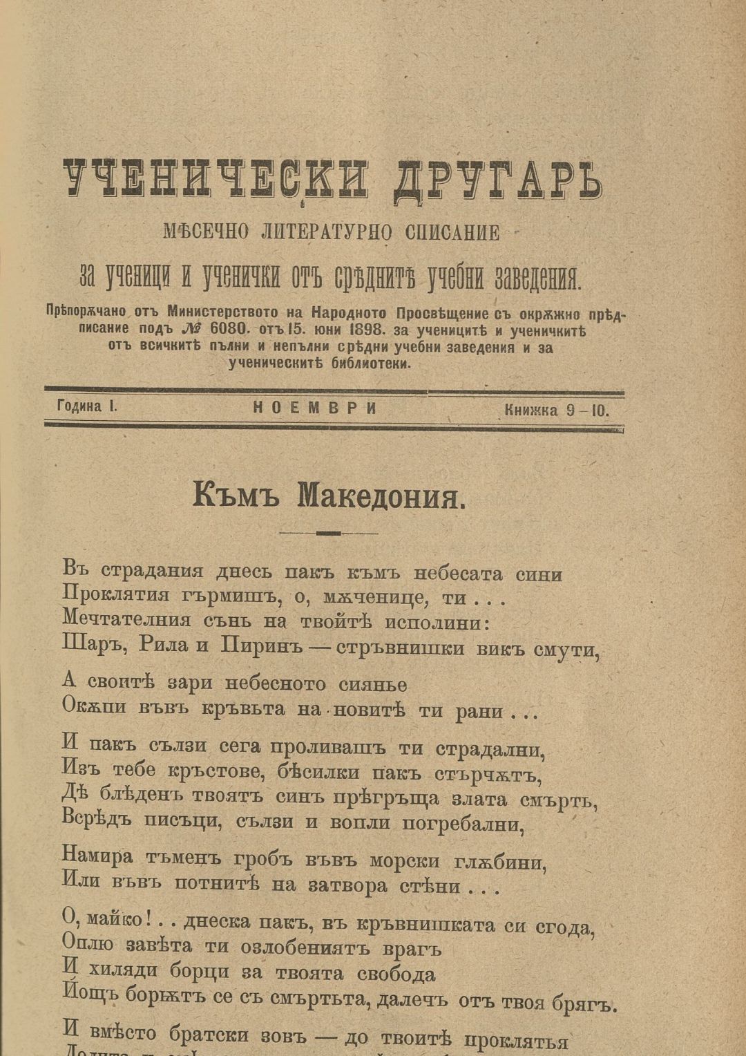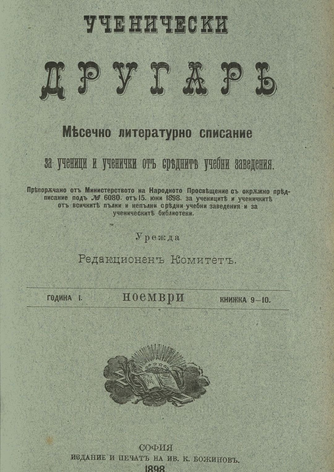 Год. 1, Кн. 9-10. Ученически другар : Месечно литературно списание за ученици и ученички от средните учебни заведения