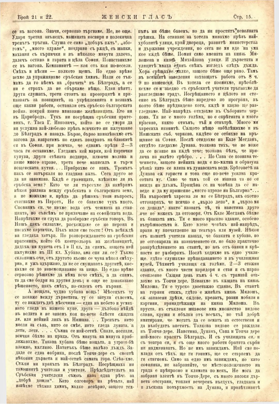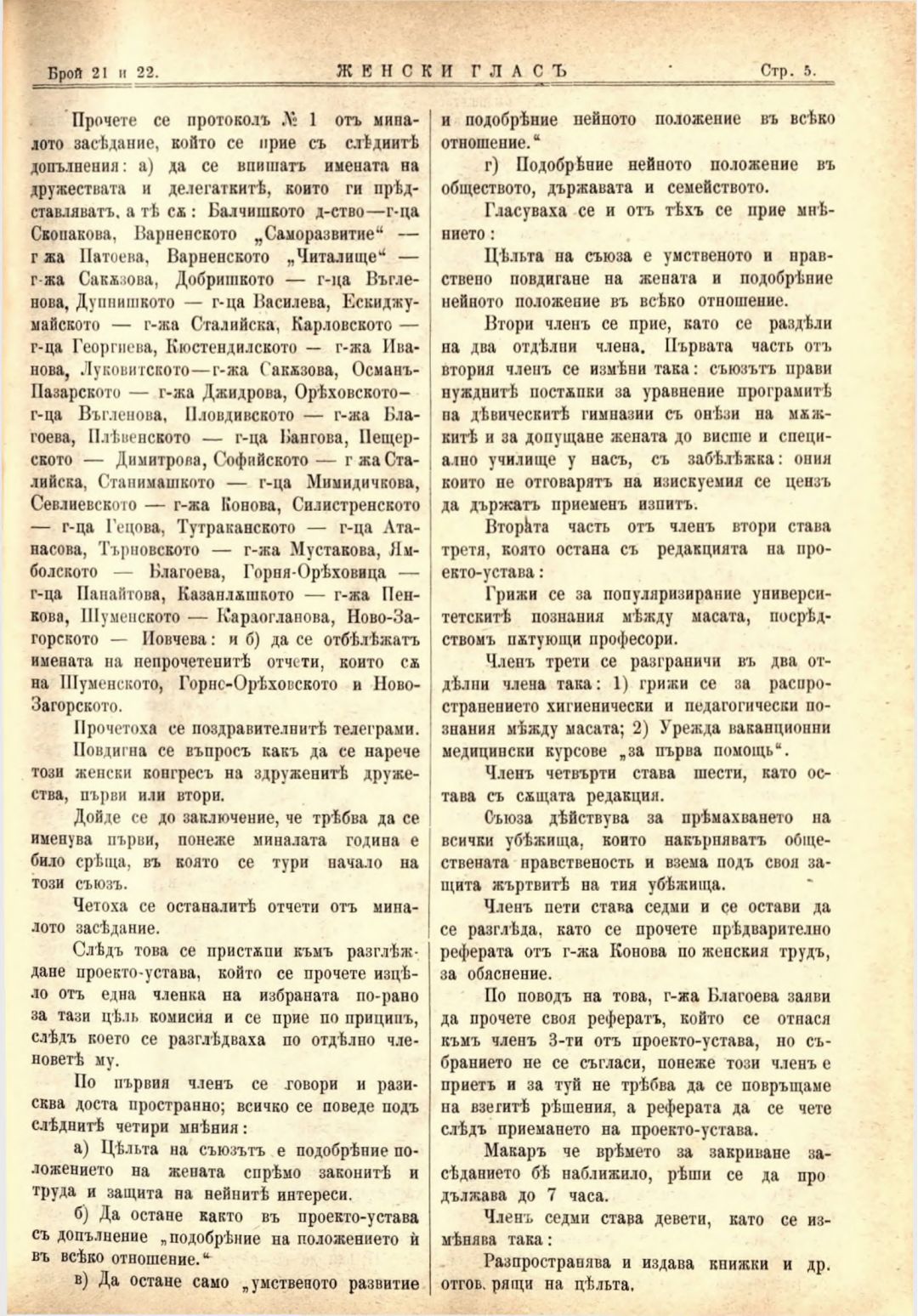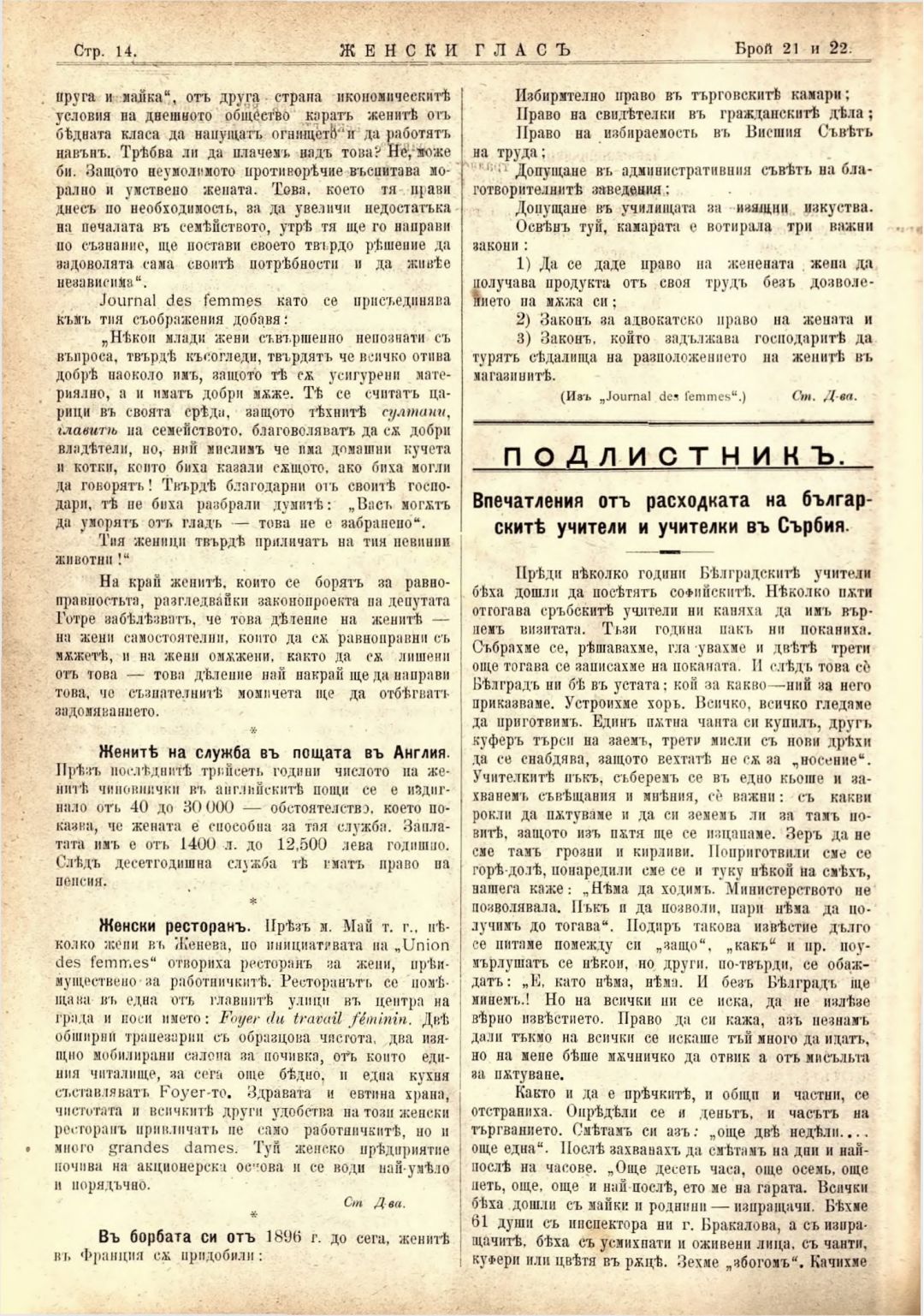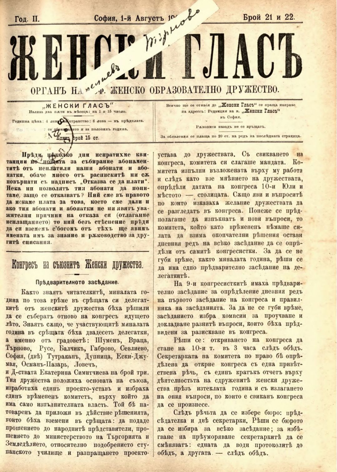 Год. 2,№ 21-22. Женски глас : Орган на софийското женско образователно дружество