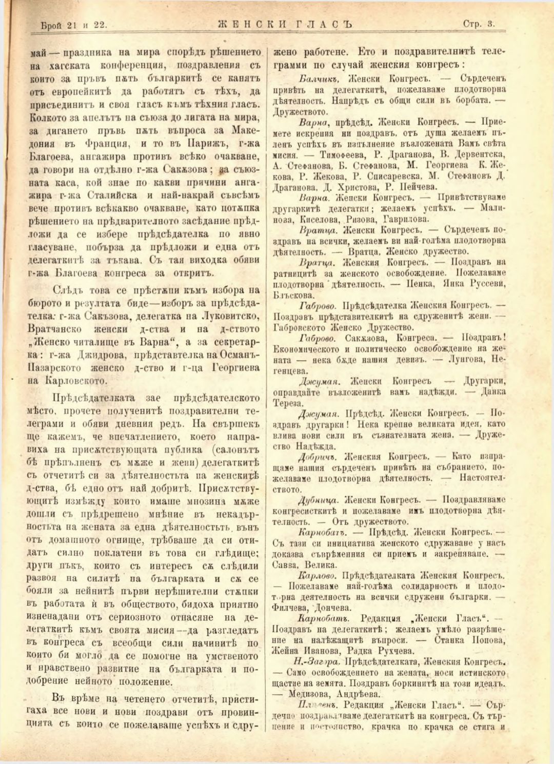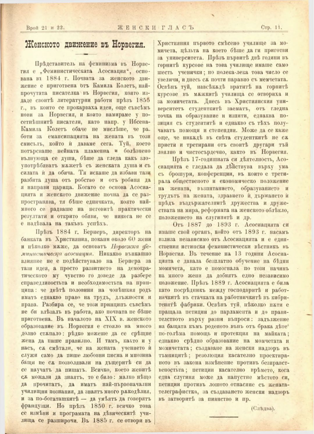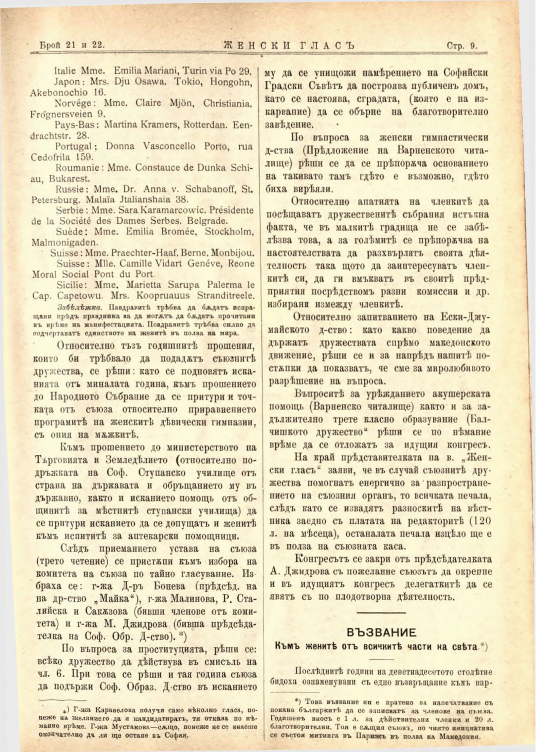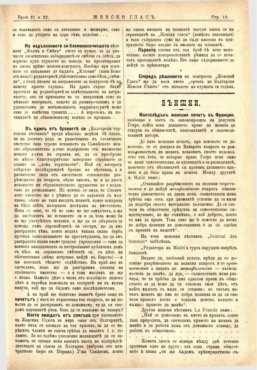 Год. 2,№ 21-22. Женски глас : Орган на софийското женско образователно дружество
