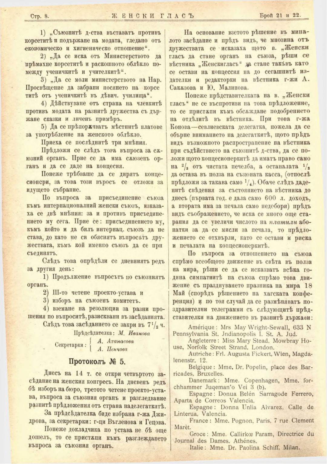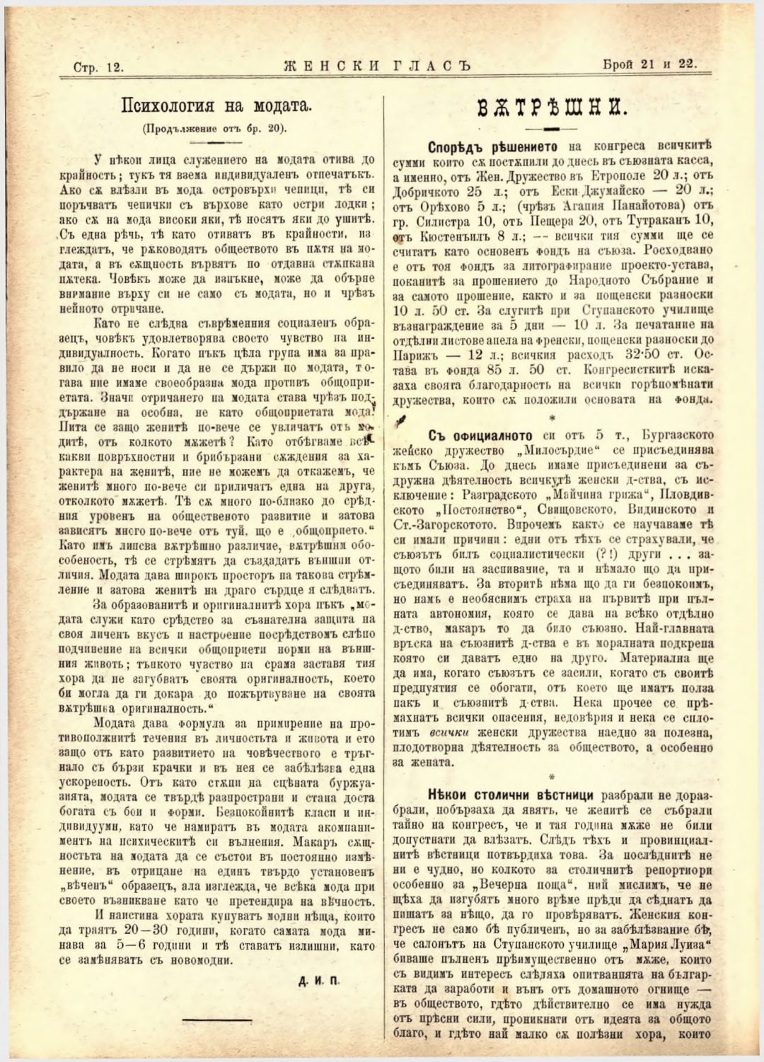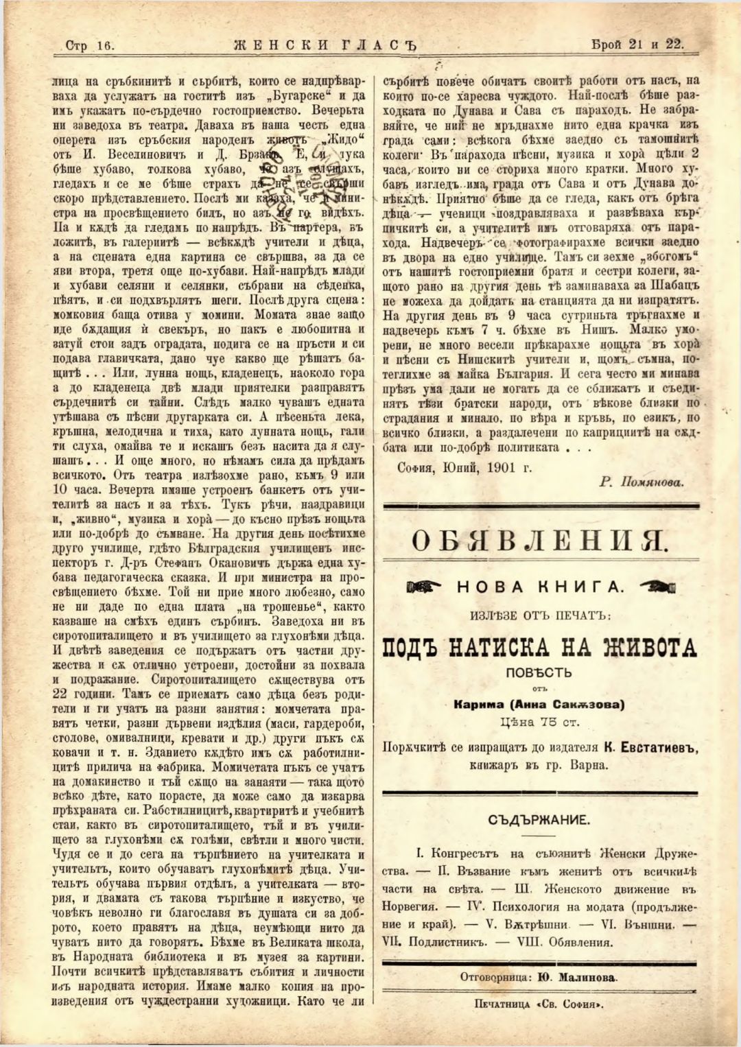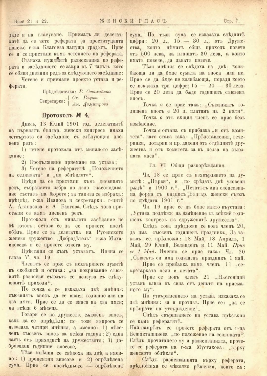 Год. 2,№ 21-22. Женски глас : Орган на софийското женско образователно дружество