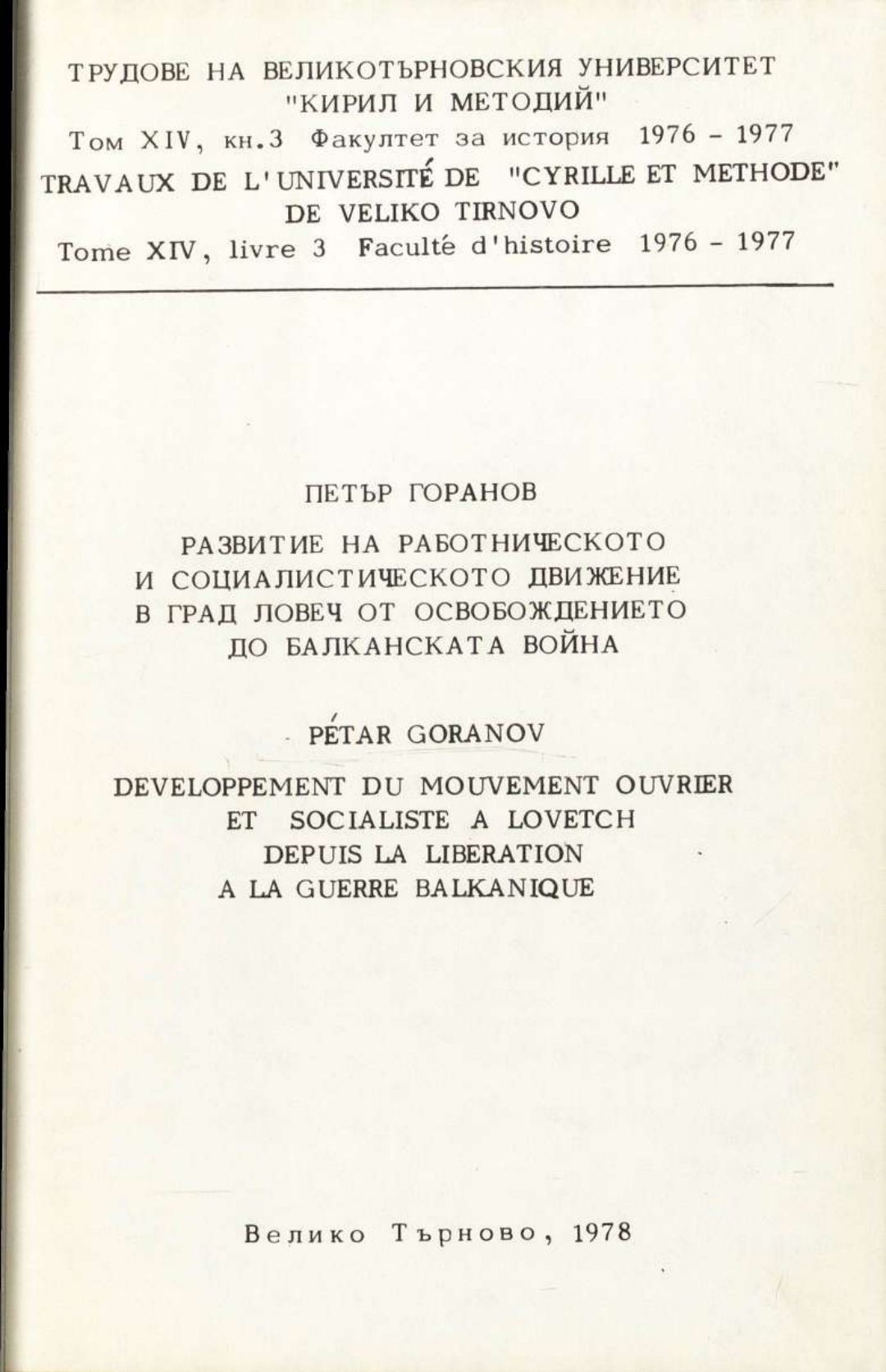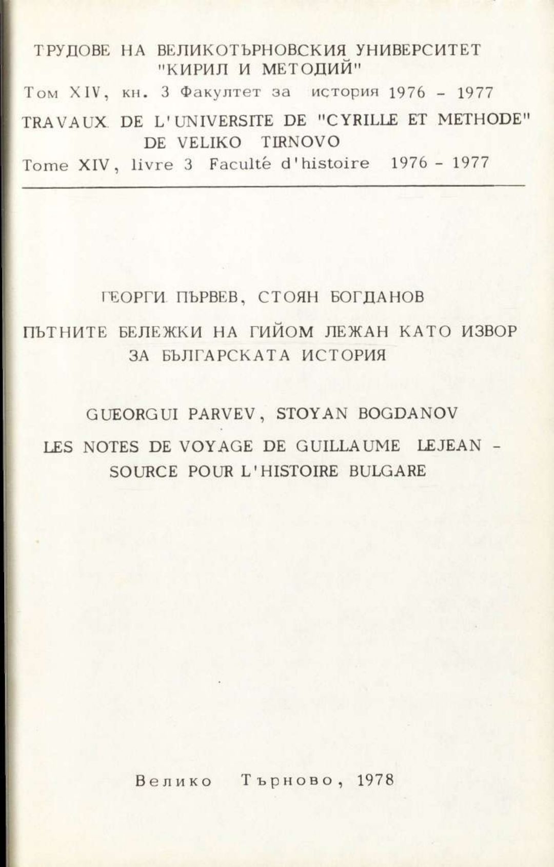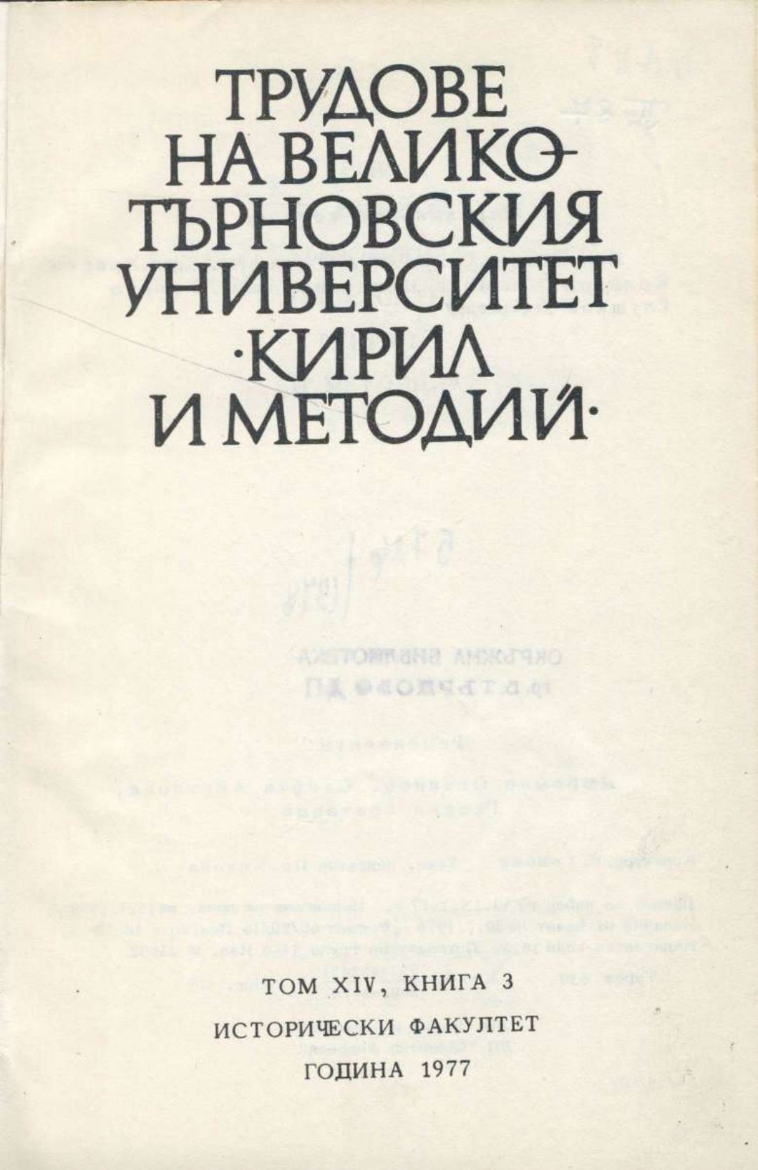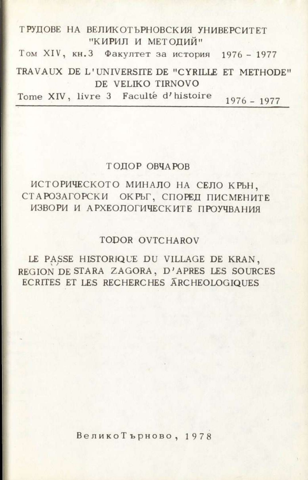 Том 14. Кн. 3. Трудове на Великотърновския университет "Св. св. Кирил и Методий". Исторически факултет = Travaux de L'universite St. St. Cyrille et Methode de V. Tirnovo. Faculte histoire