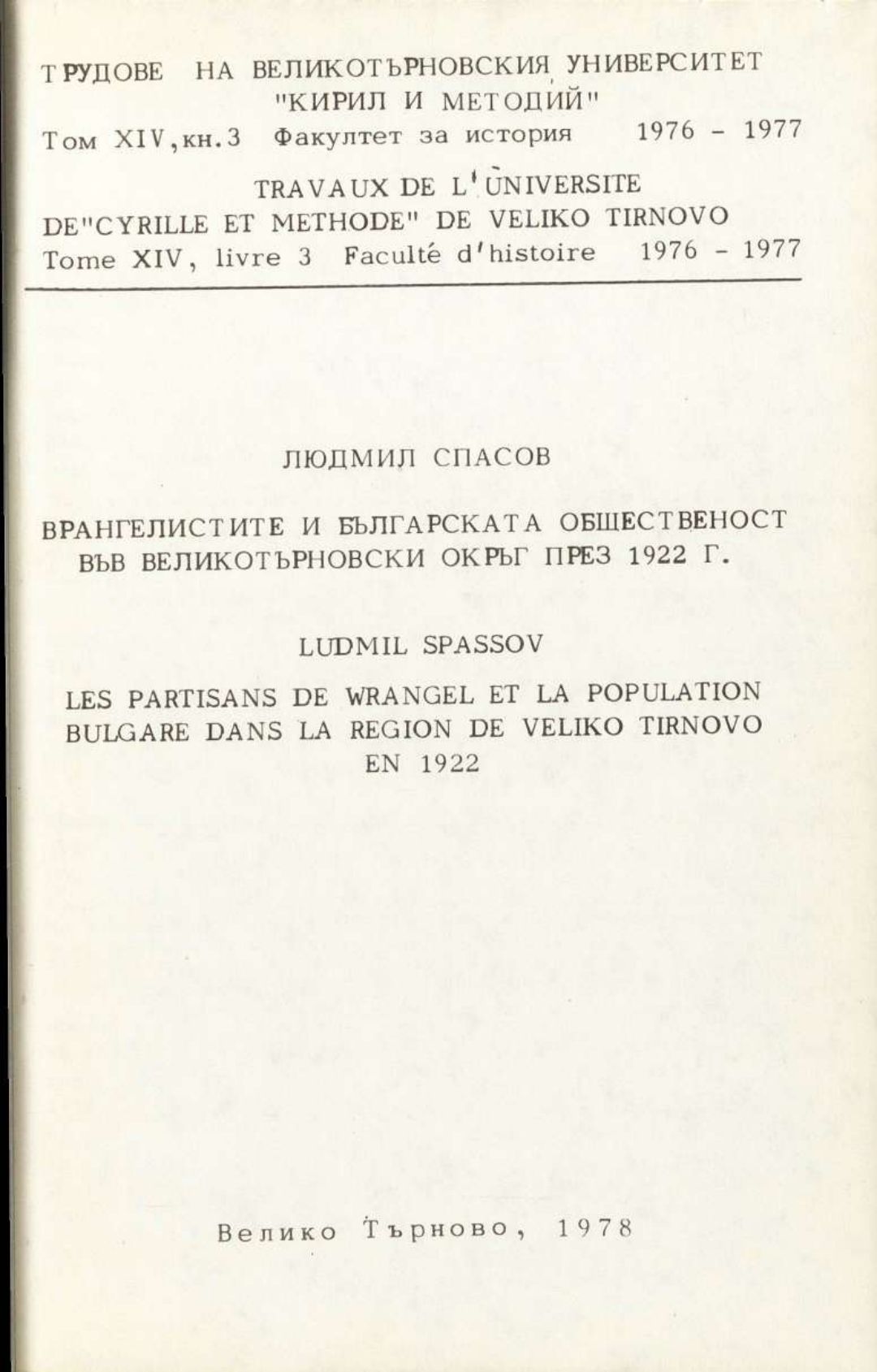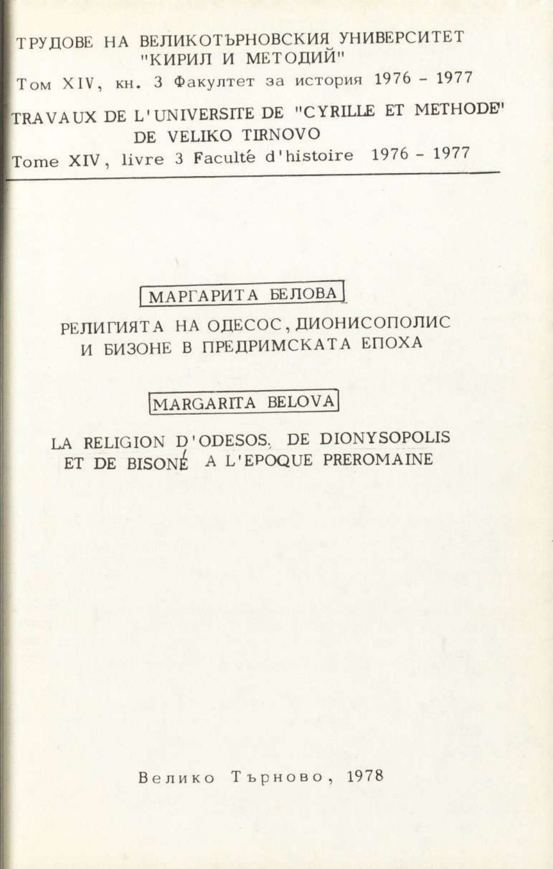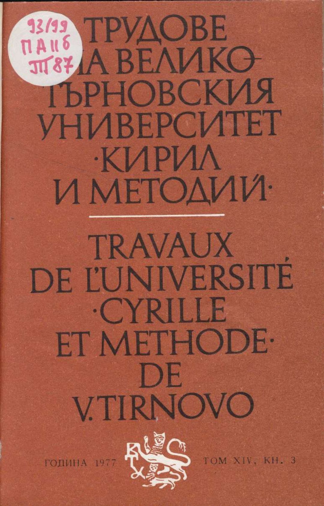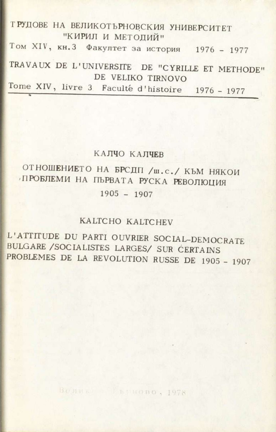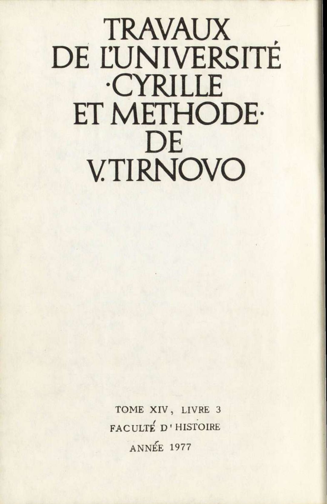 Том 14. Кн. 3. Трудове на Великотърновския университет "Св. св. Кирил и Методий". Исторически факултет = Travaux de L'universite St. St. Cyrille et Methode de V. Tirnovo. Faculte histoire