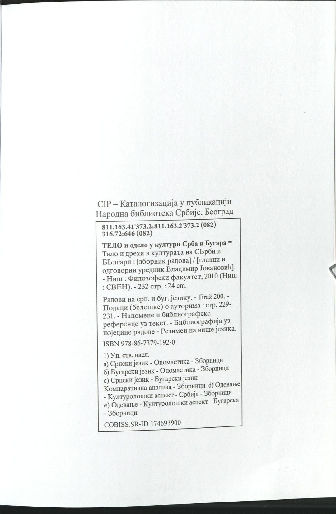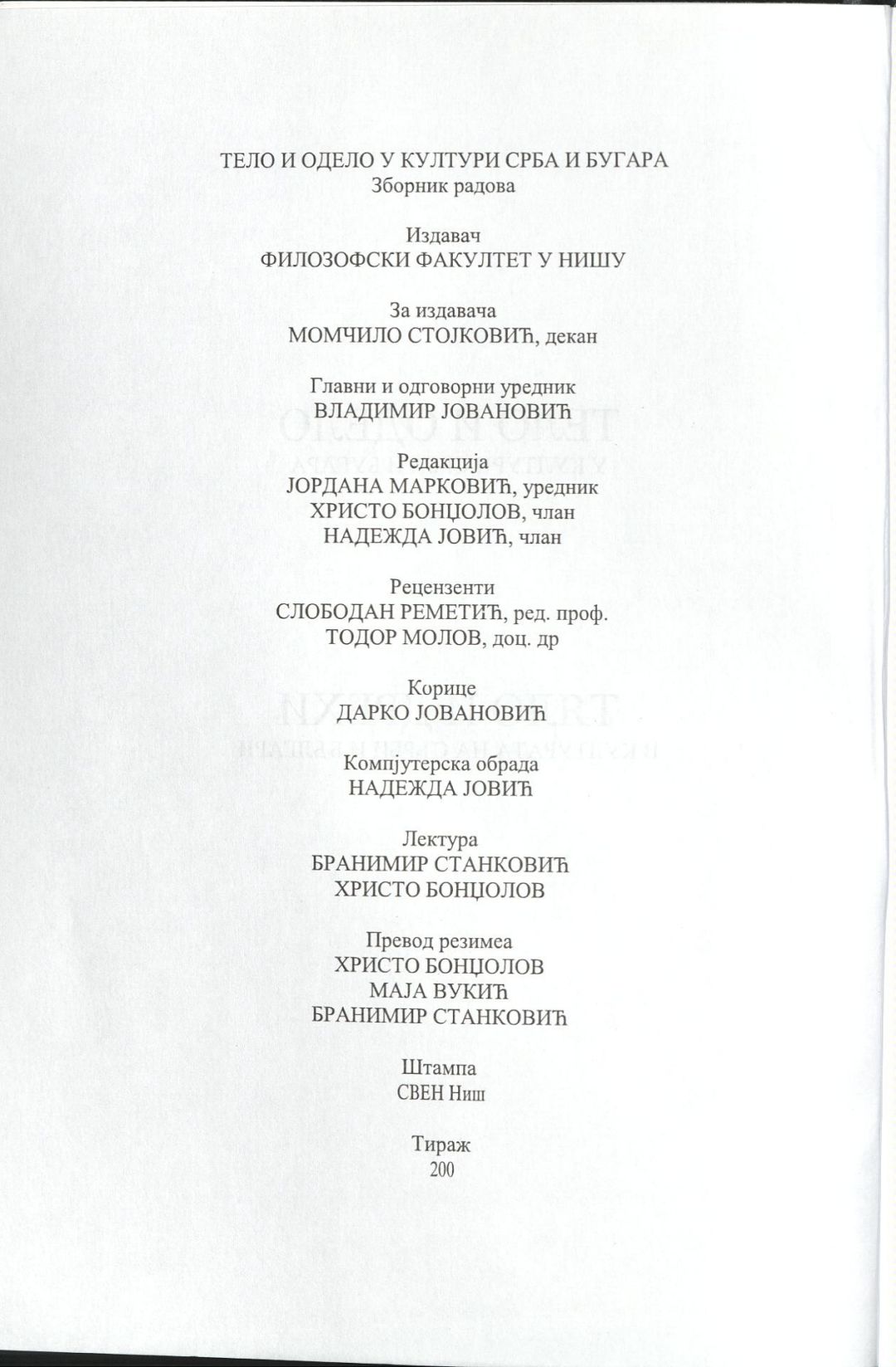 Тело и одело у култури Срба и Бугара = Тяло и дрехи в културата на сърби и българи : Зборник радова