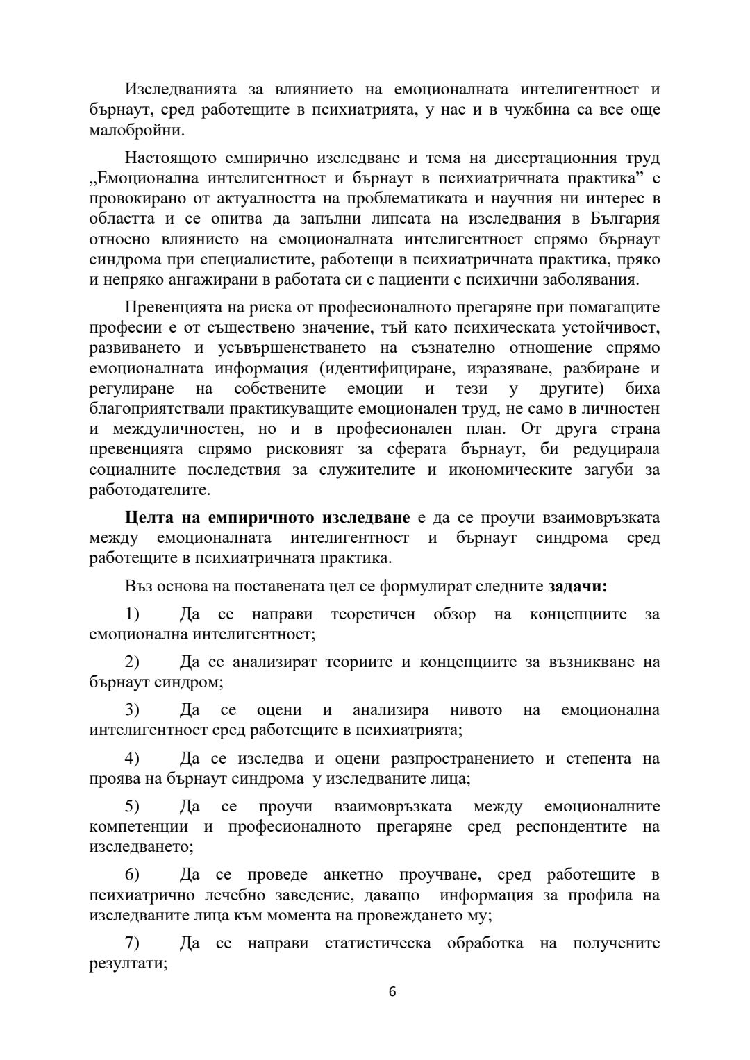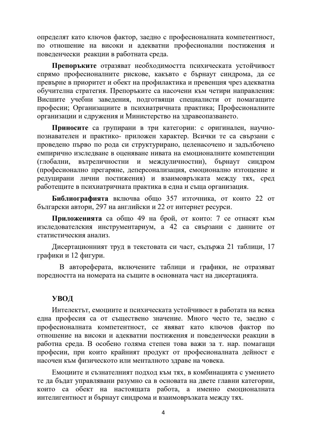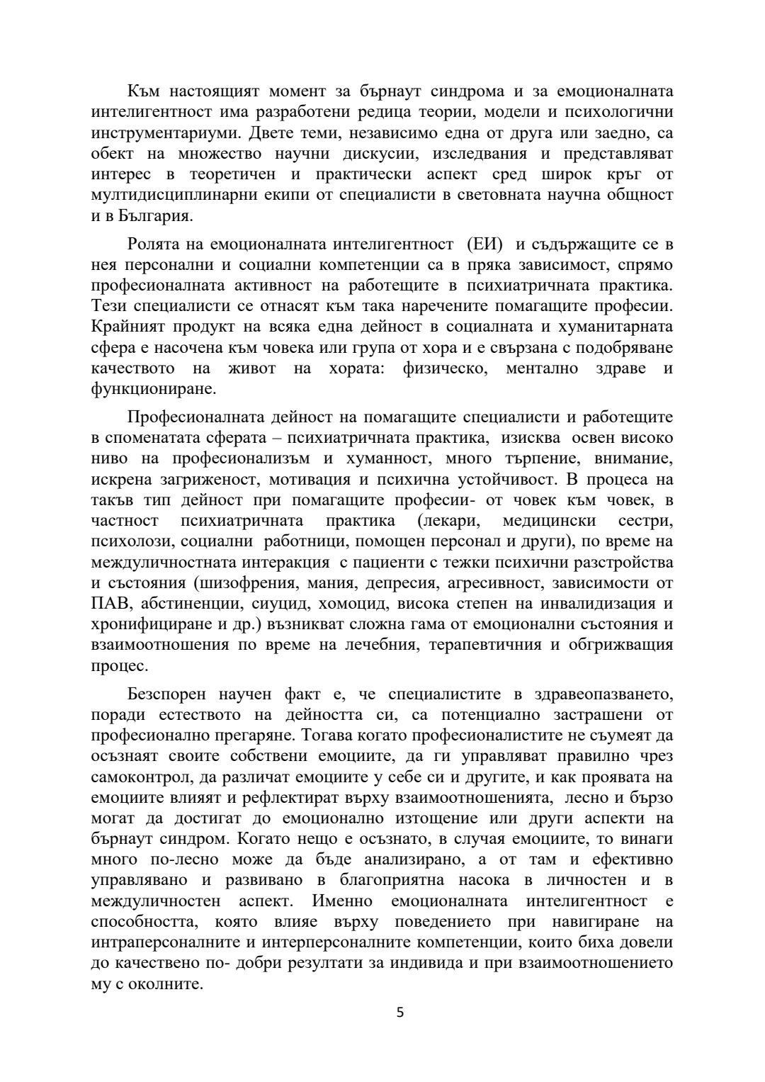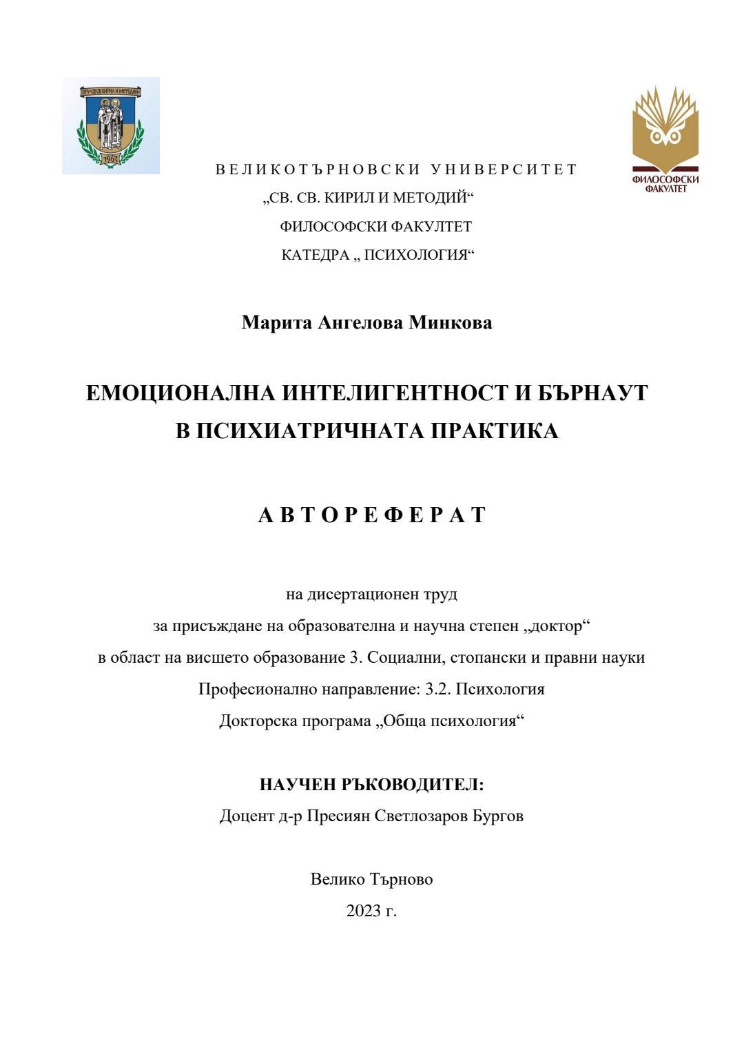 Емоционална интелигентност и бърнаут в психиатричната практика : Автореферат / Марита Ангелова Минкова ; Науч. ръководител Пресиян Бургов