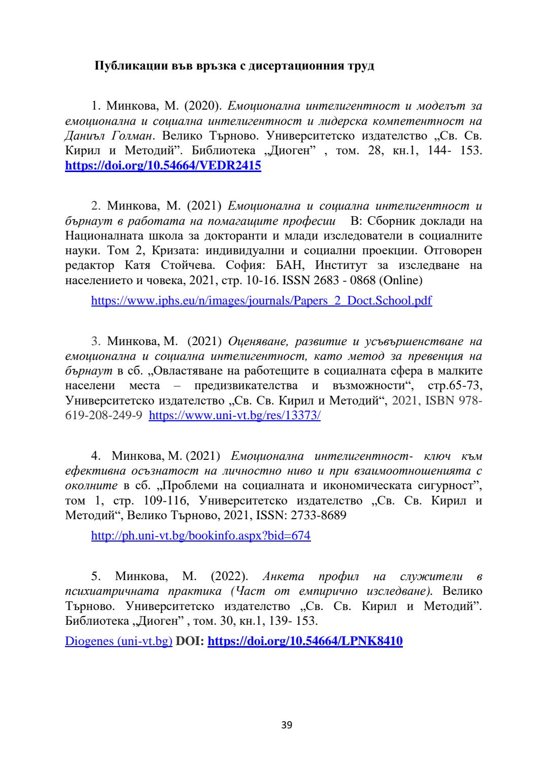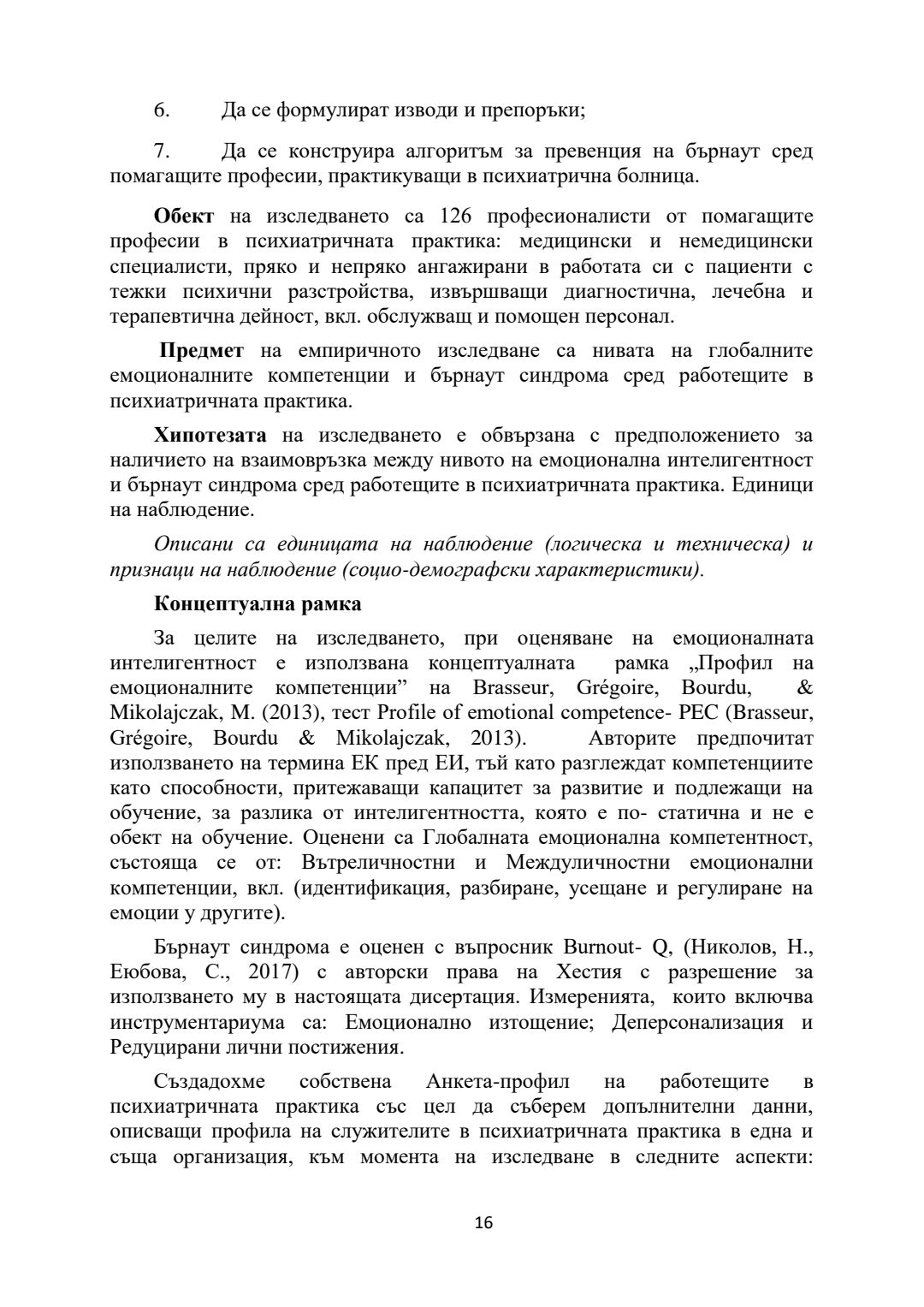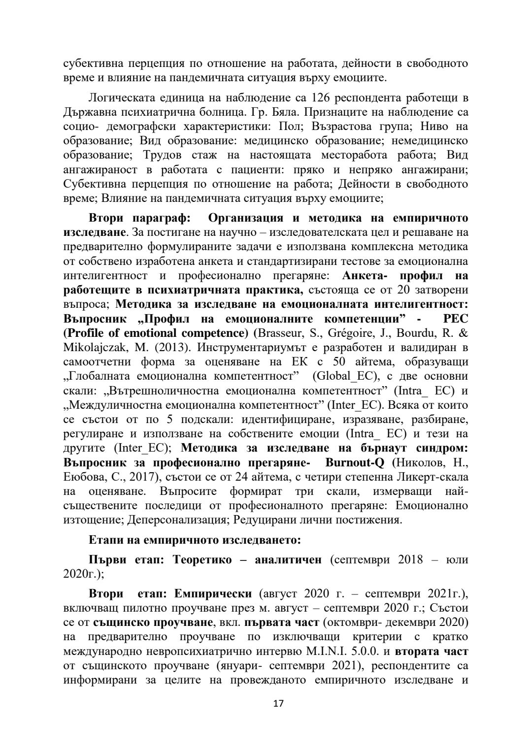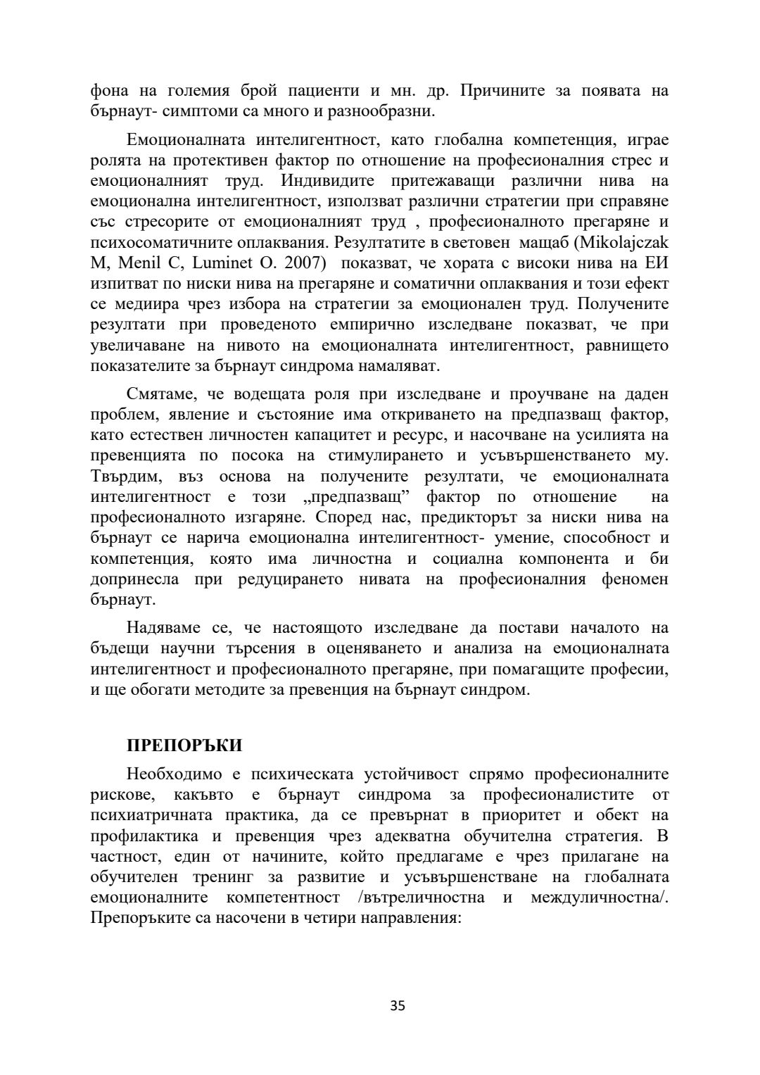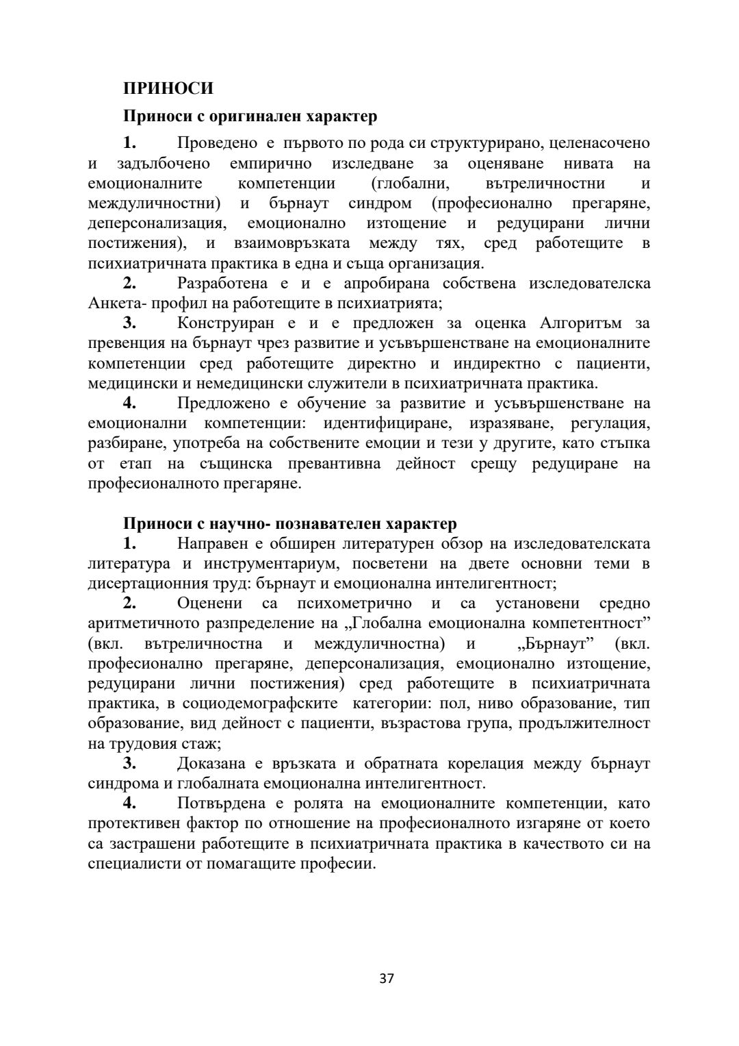 Емоционална интелигентност и бърнаут в психиатричната практика : Автореферат / Марита Ангелова Минкова ; Науч. ръководител Пресиян Бургов