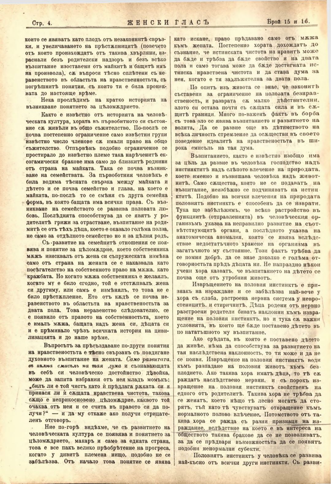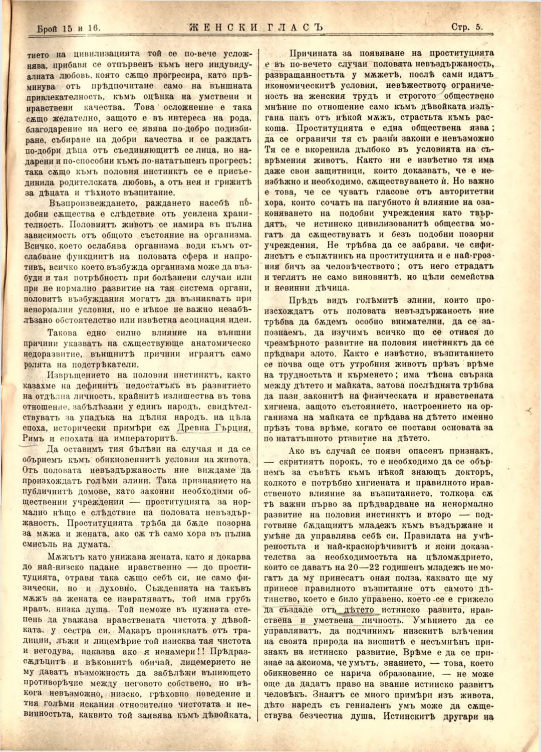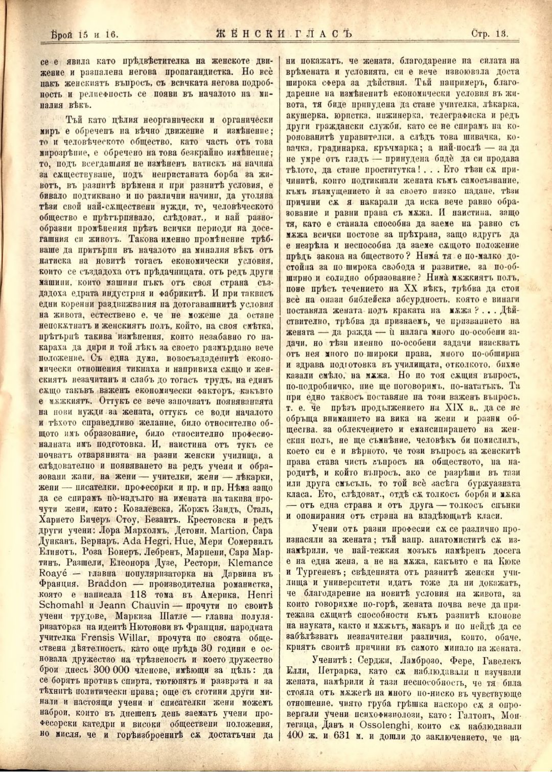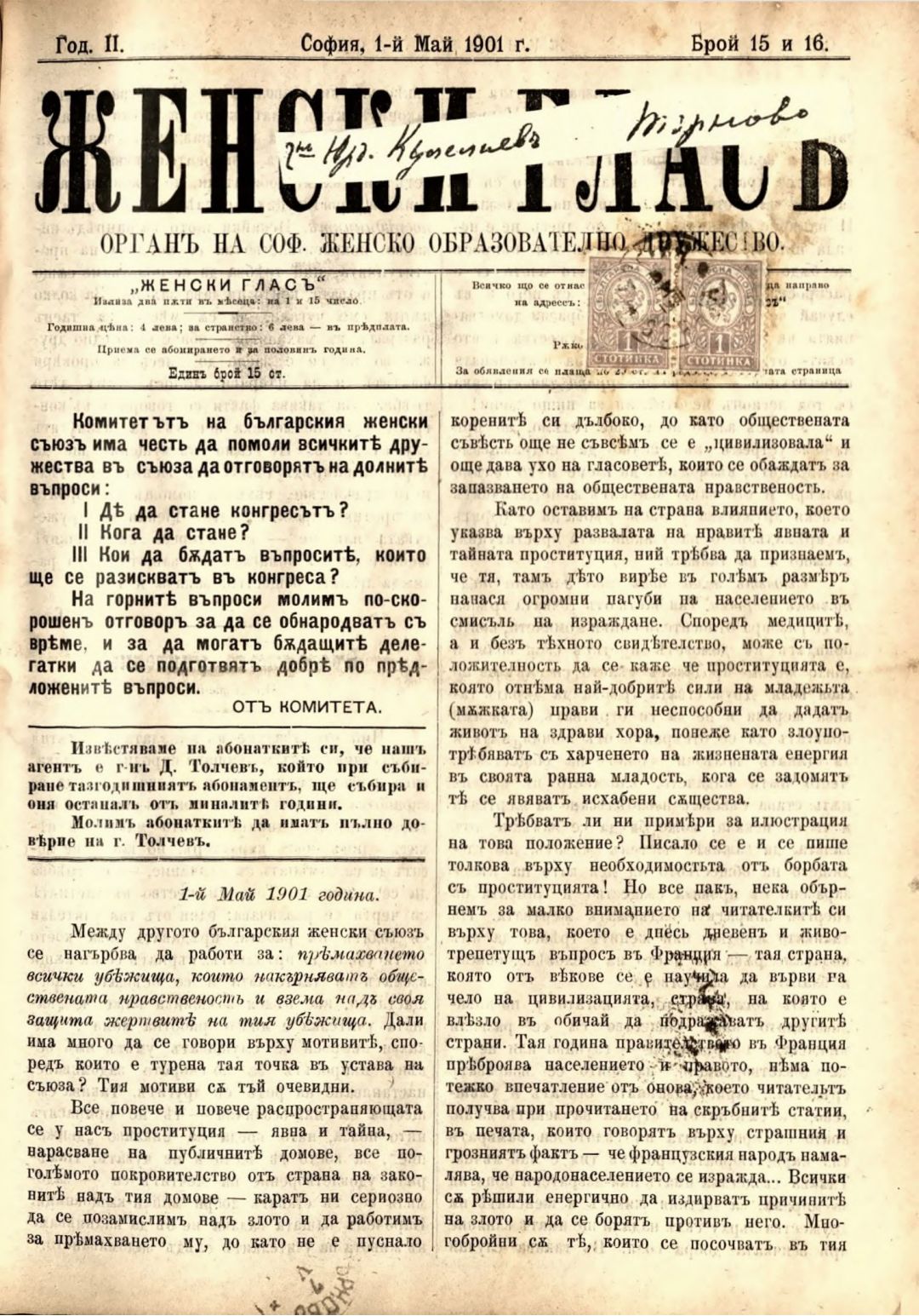 Год. 2,№ 15-16. Женски глас : Орган на софийското женско образователно дружество
