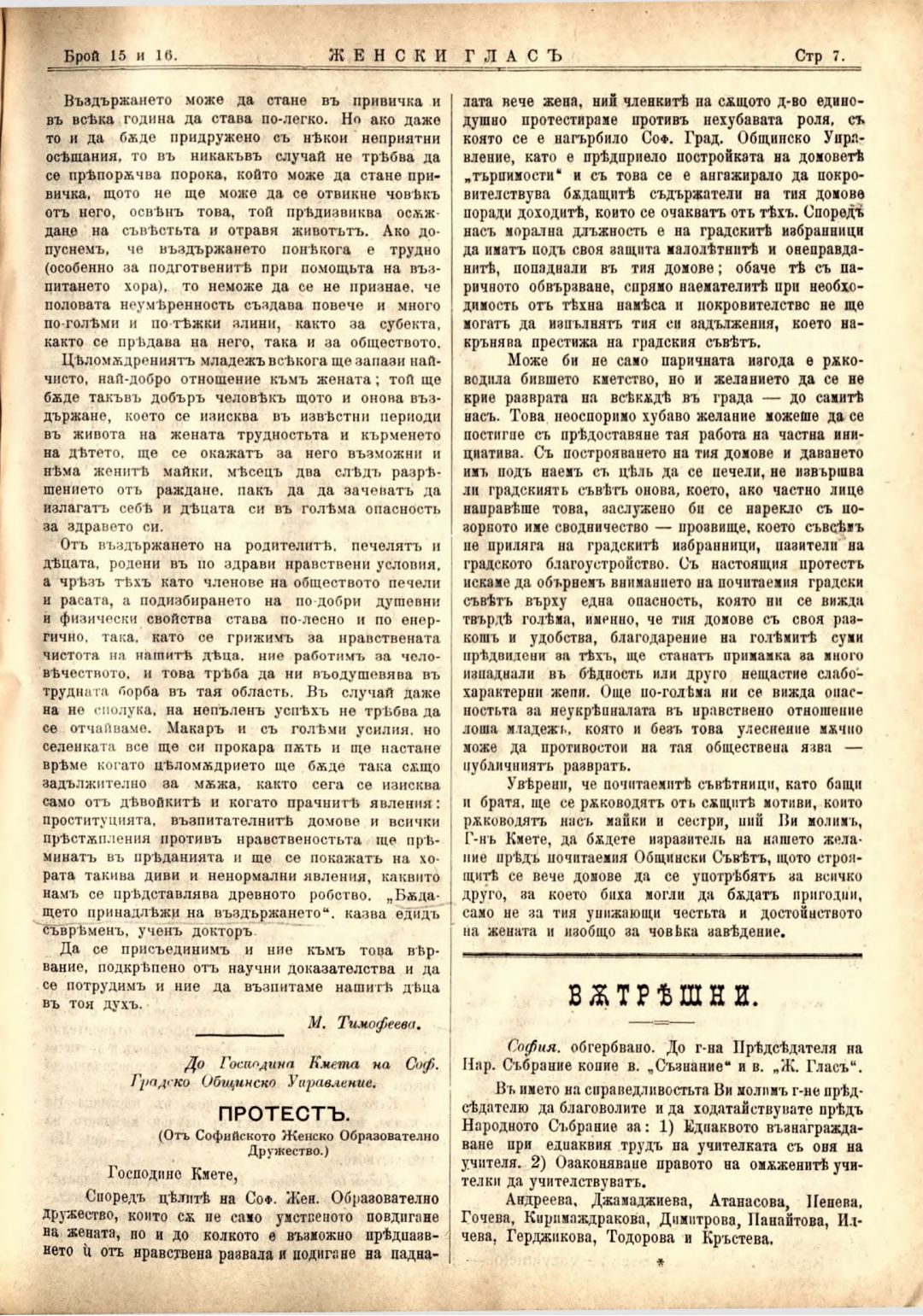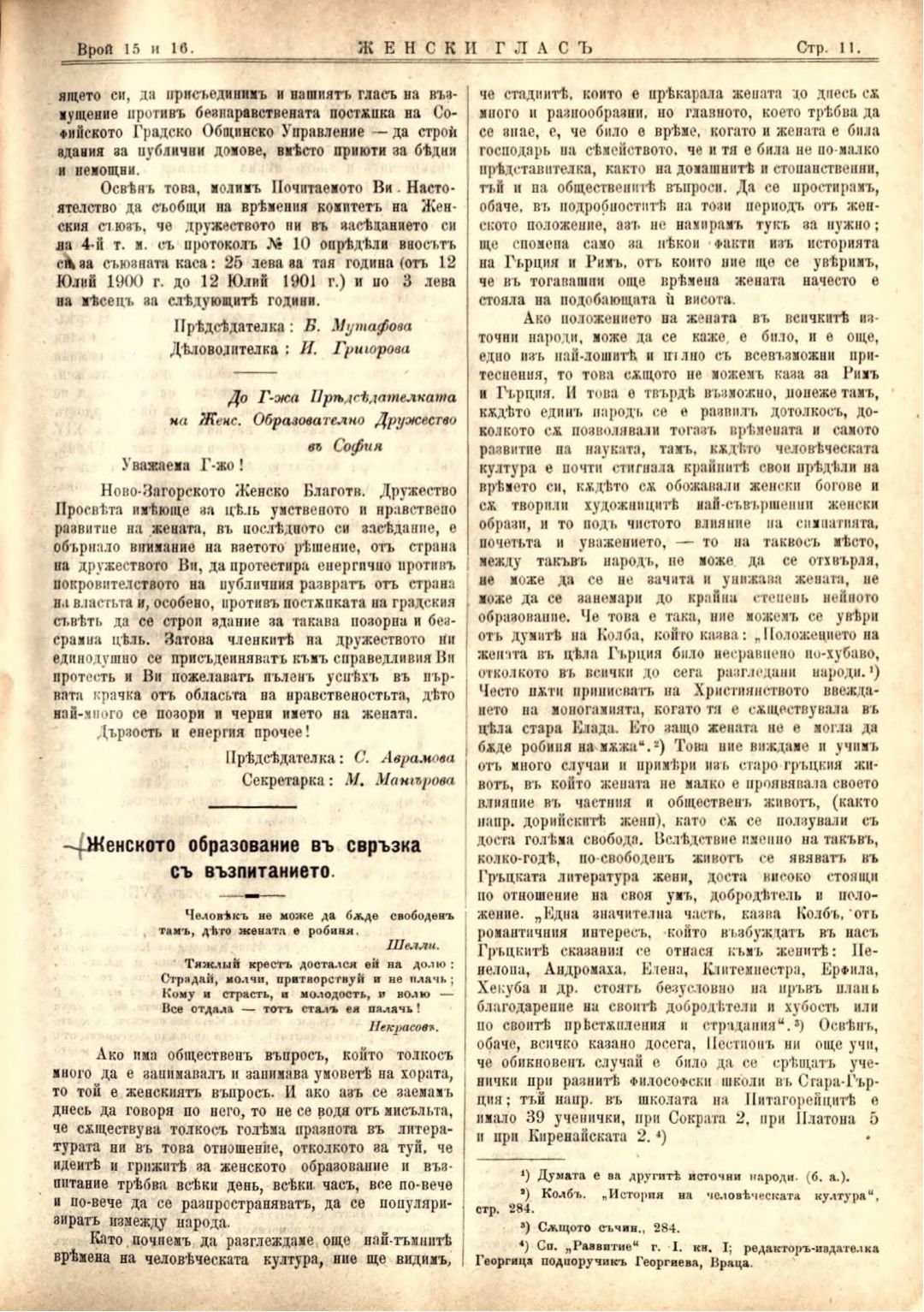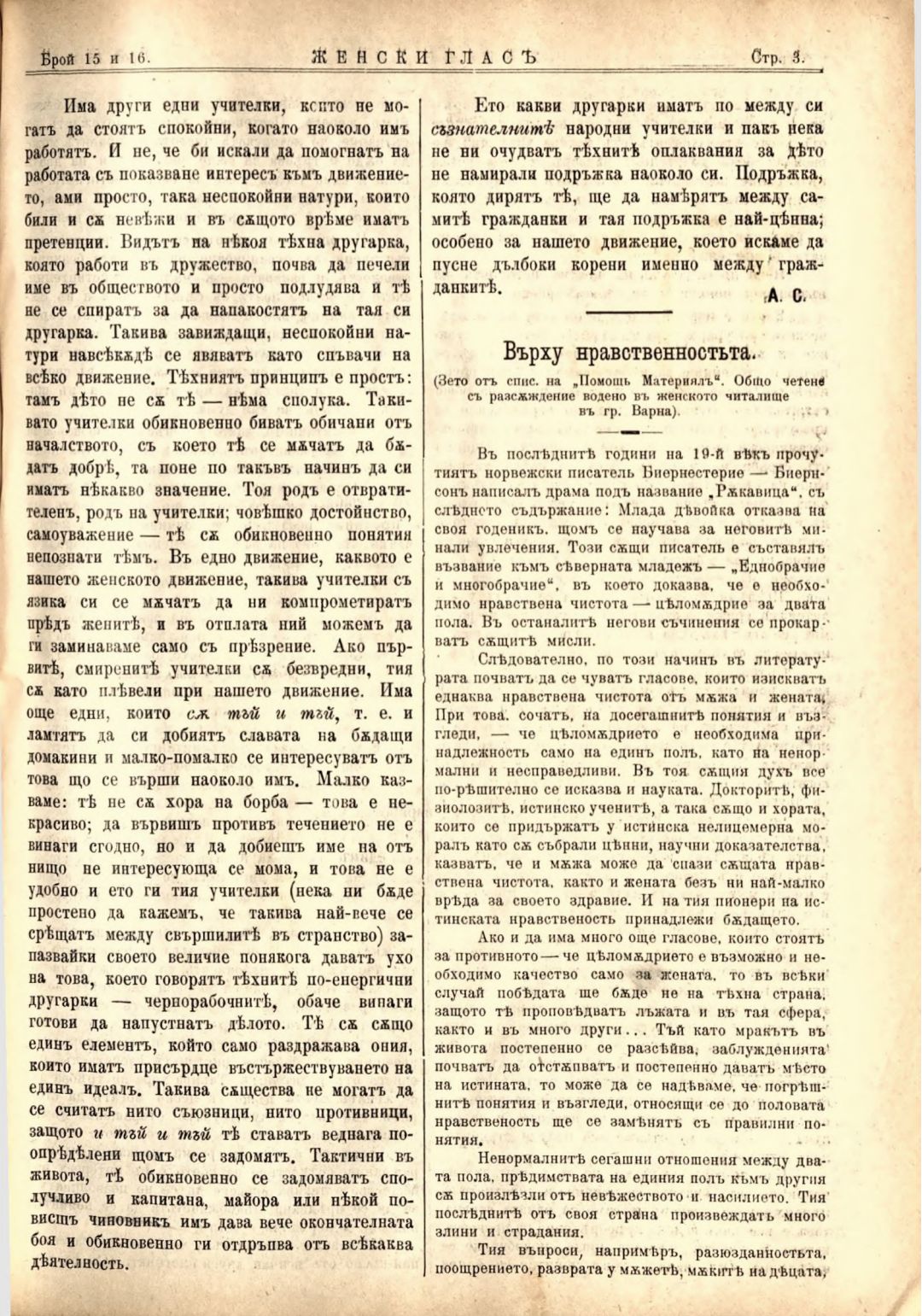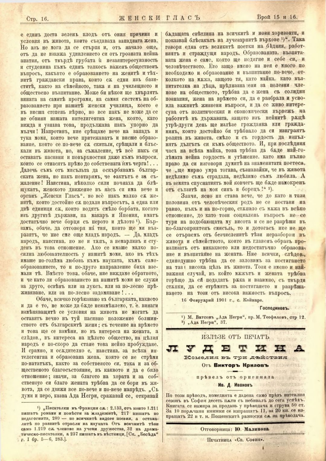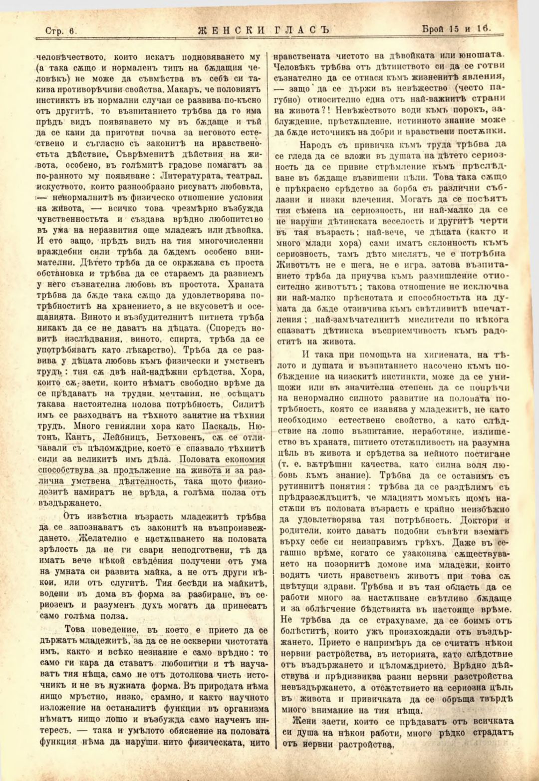 Год. 2,№ 15-16. Женски глас : Орган на софийското женско образователно дружество