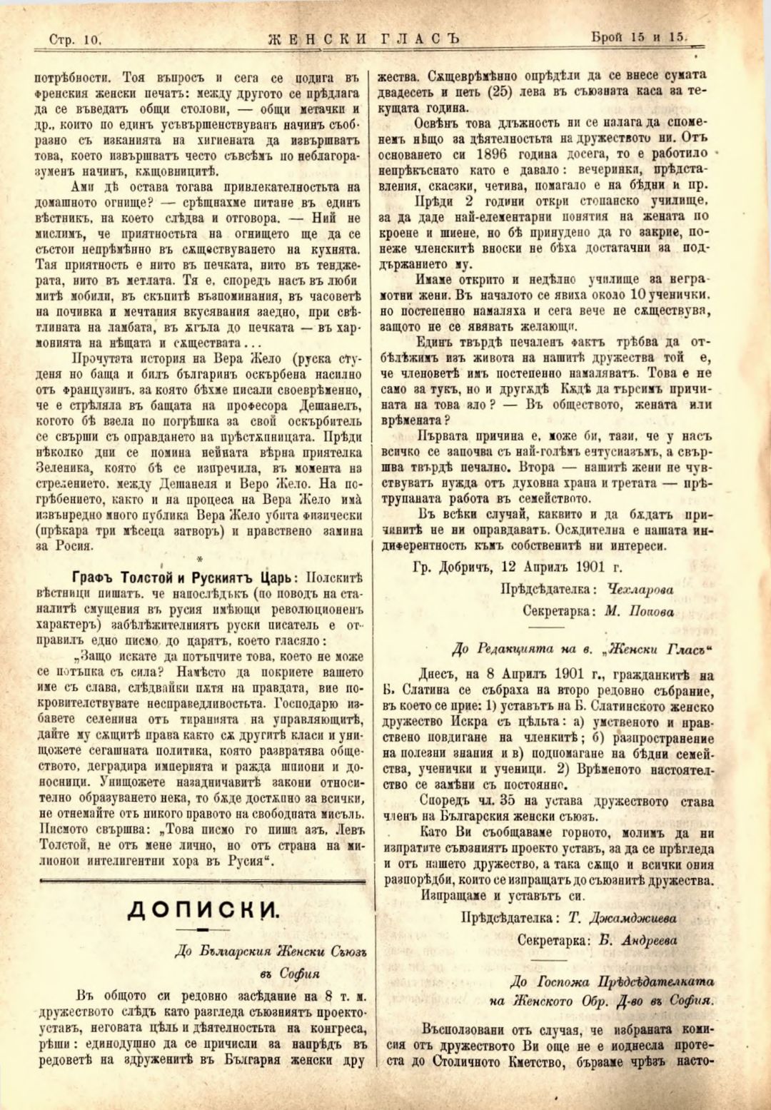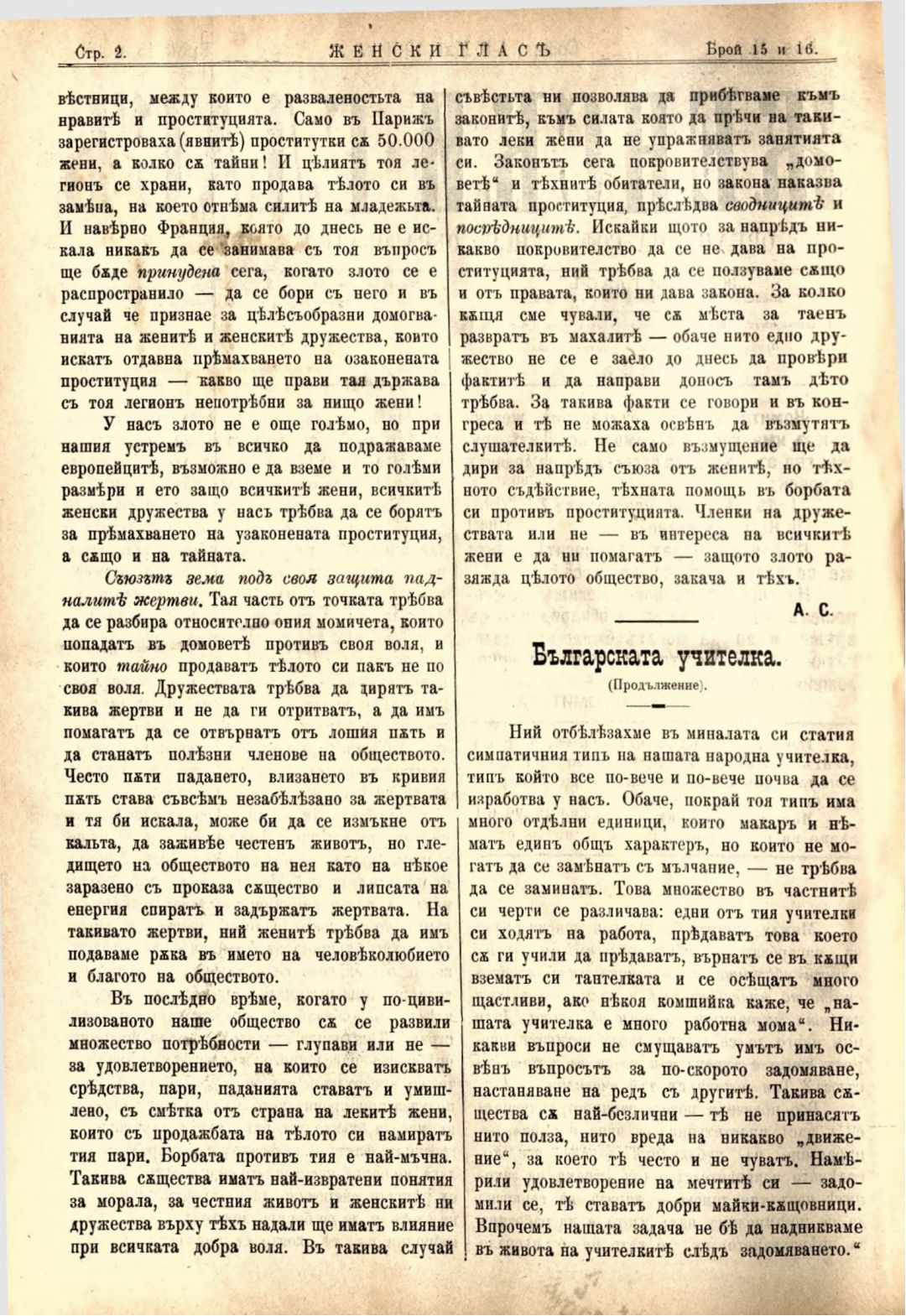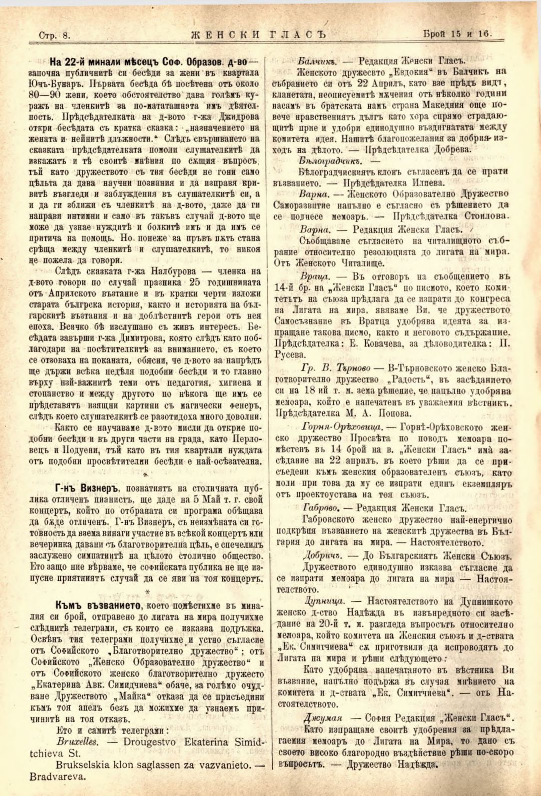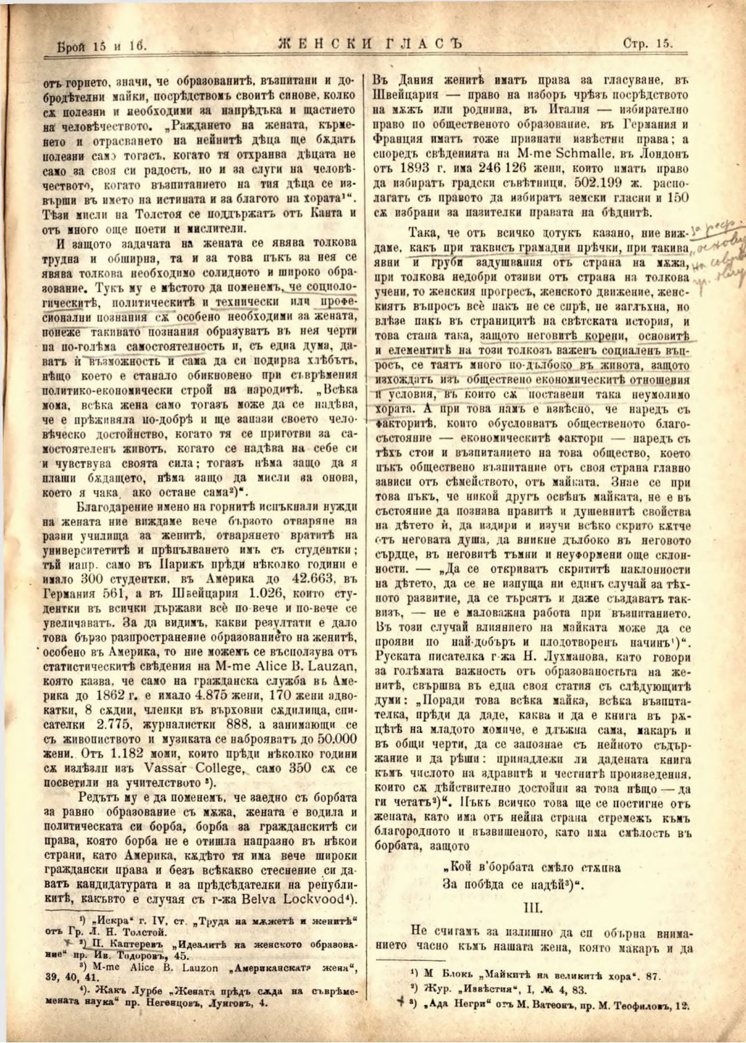 Год. 2,№ 15-16. Женски глас : Орган на софийското женско образователно дружество