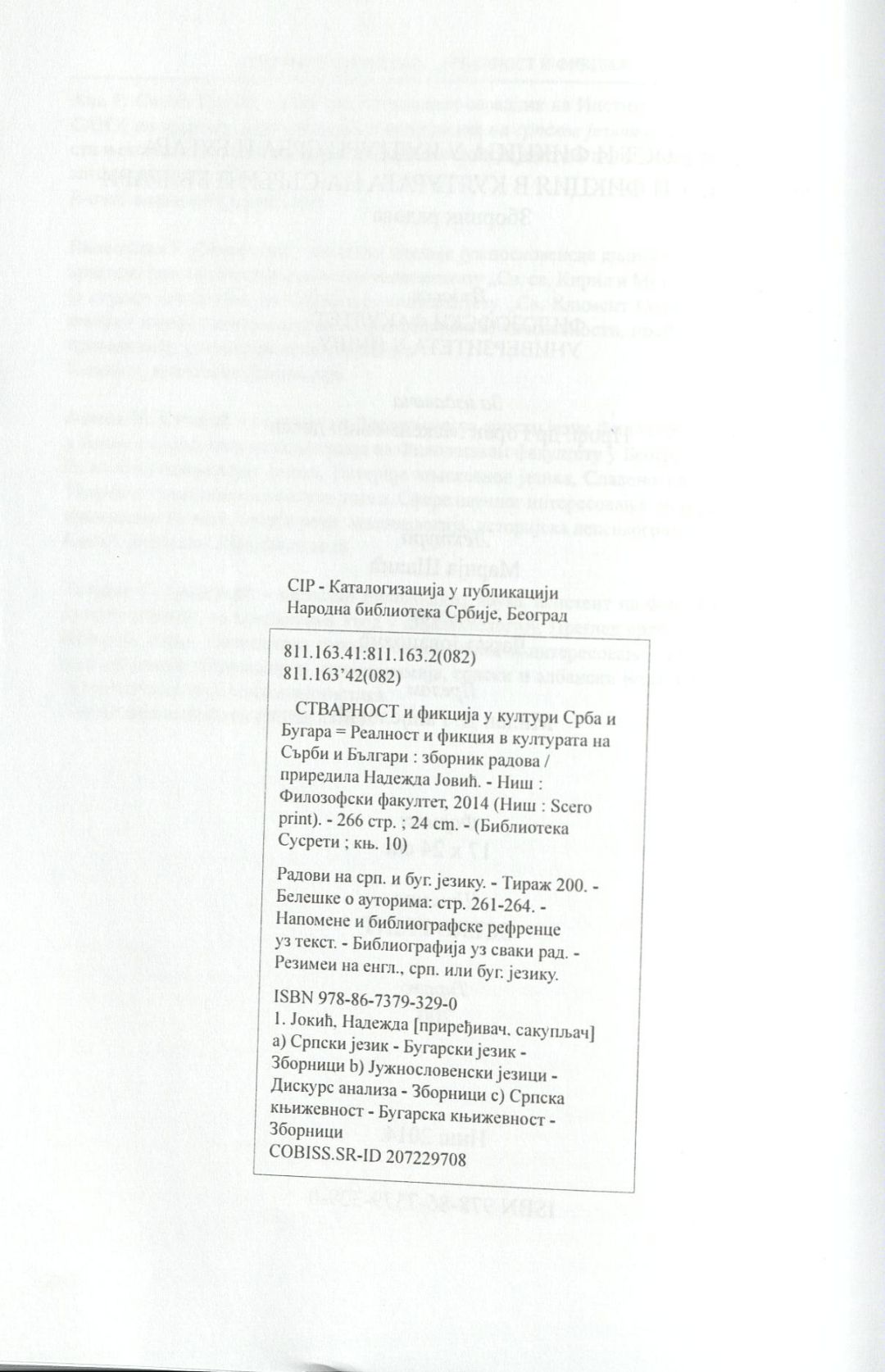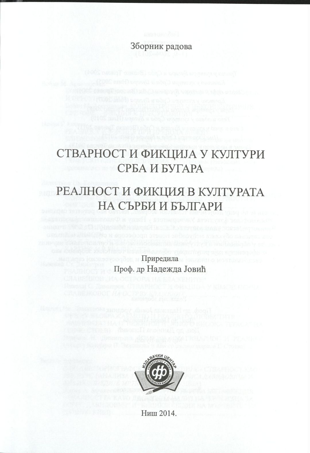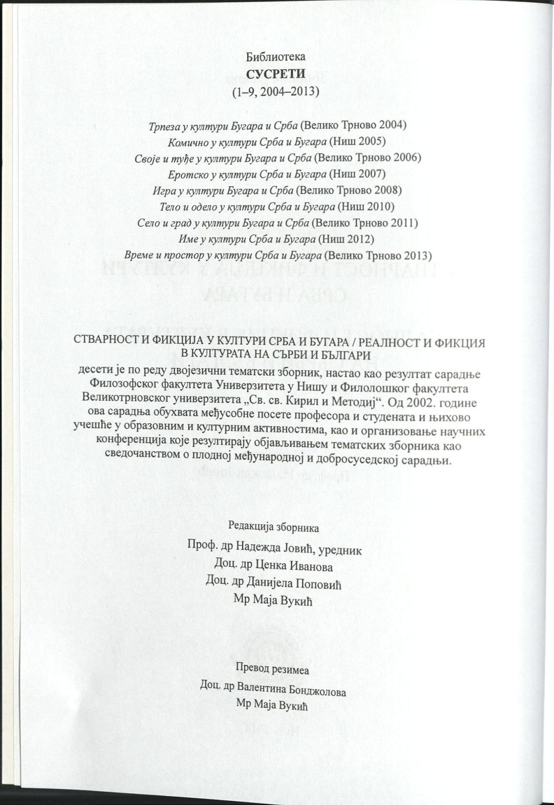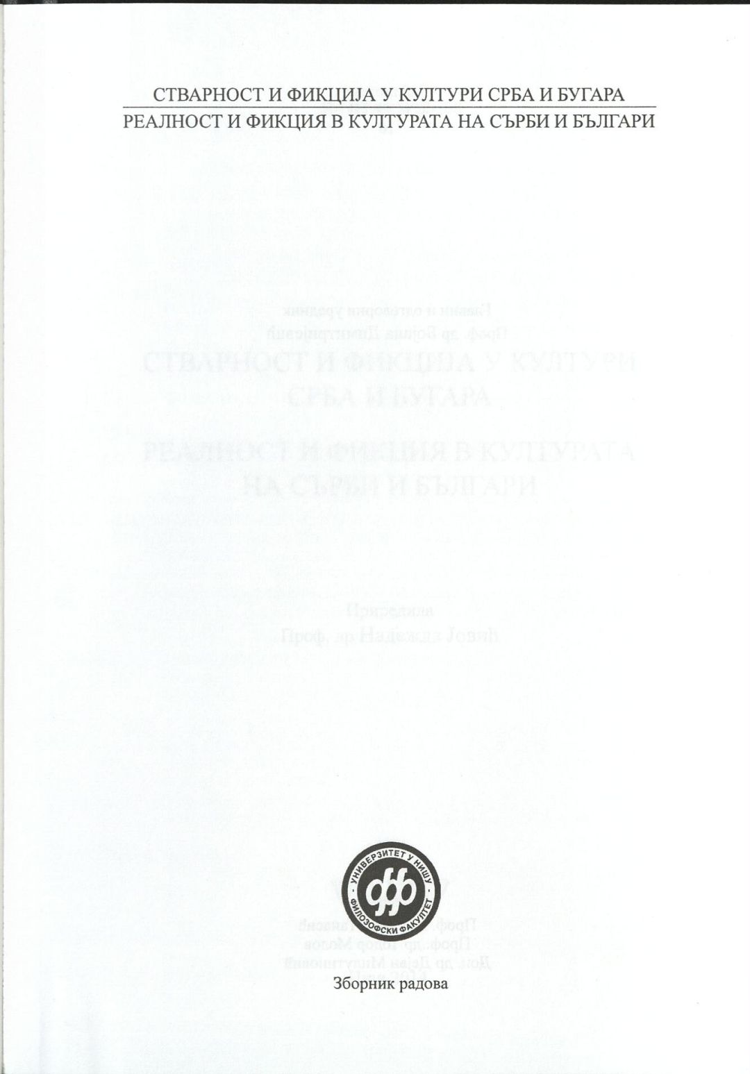 Стварност и фикциjа у култури срба и бугара : Зборник радова = Реалност и фикция в културата на сърби и българи