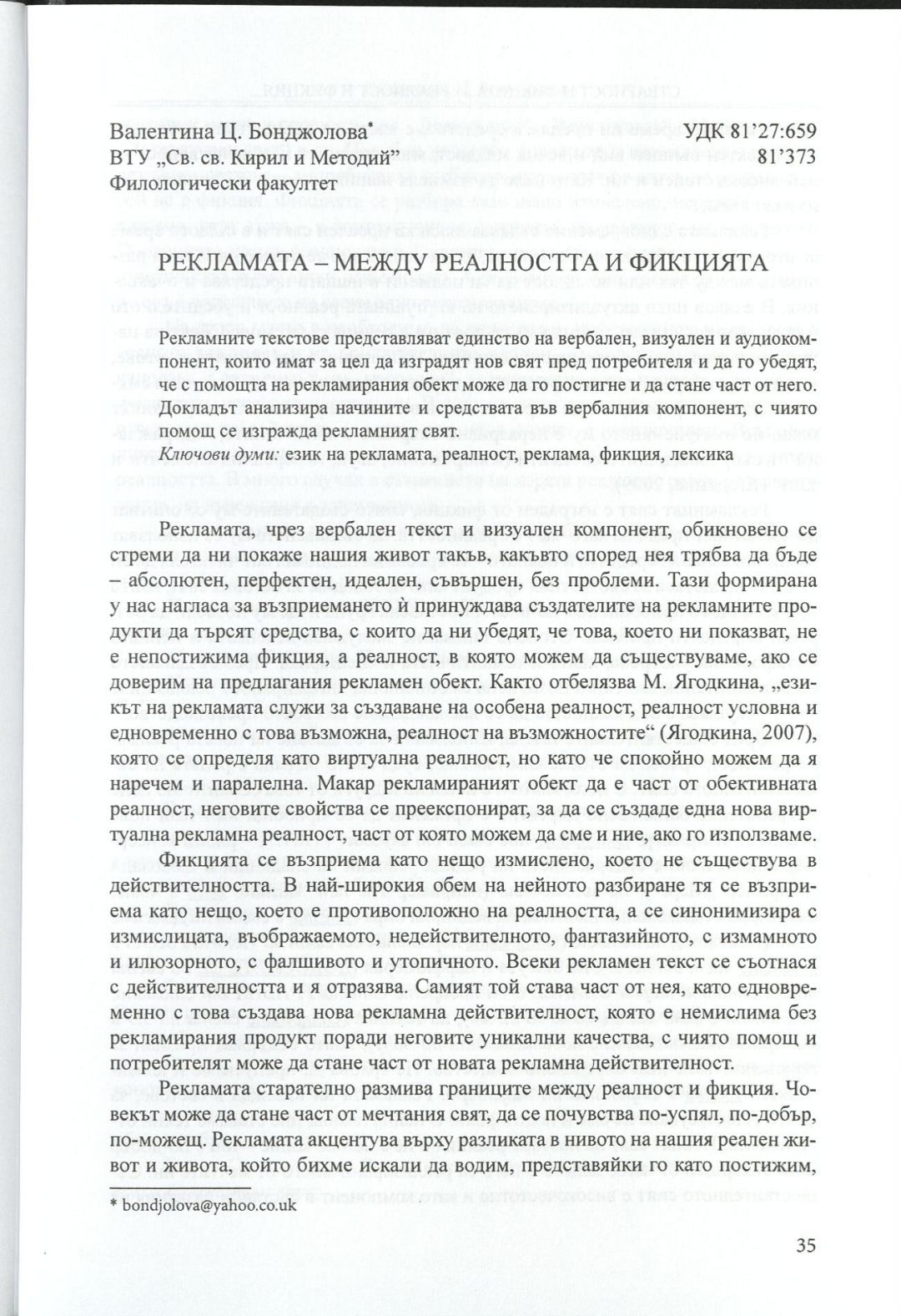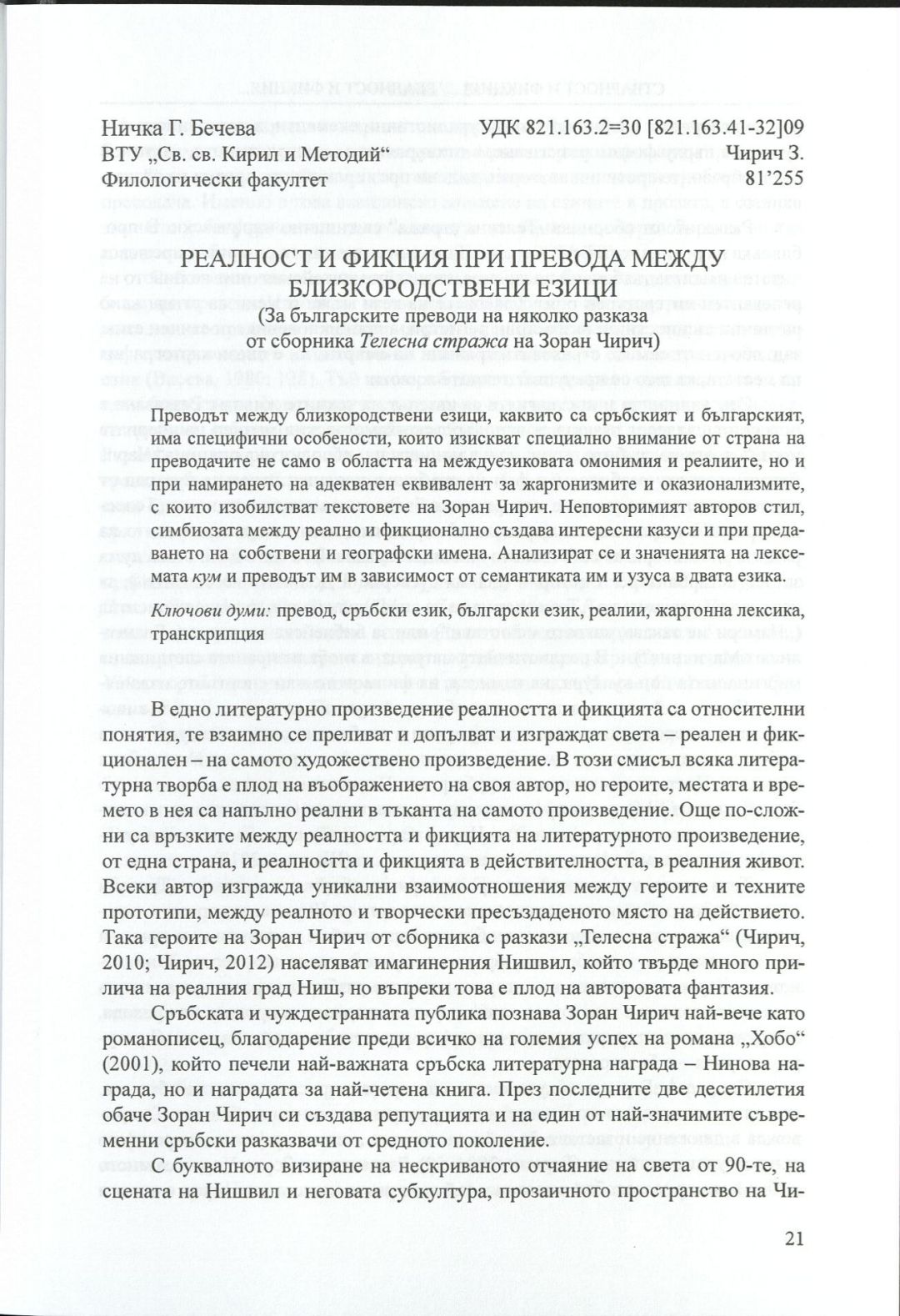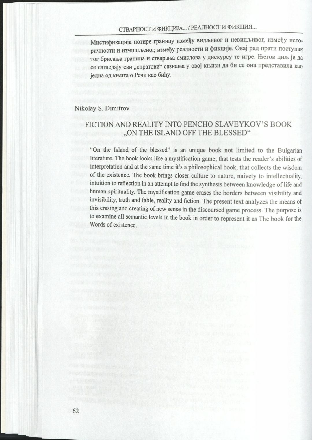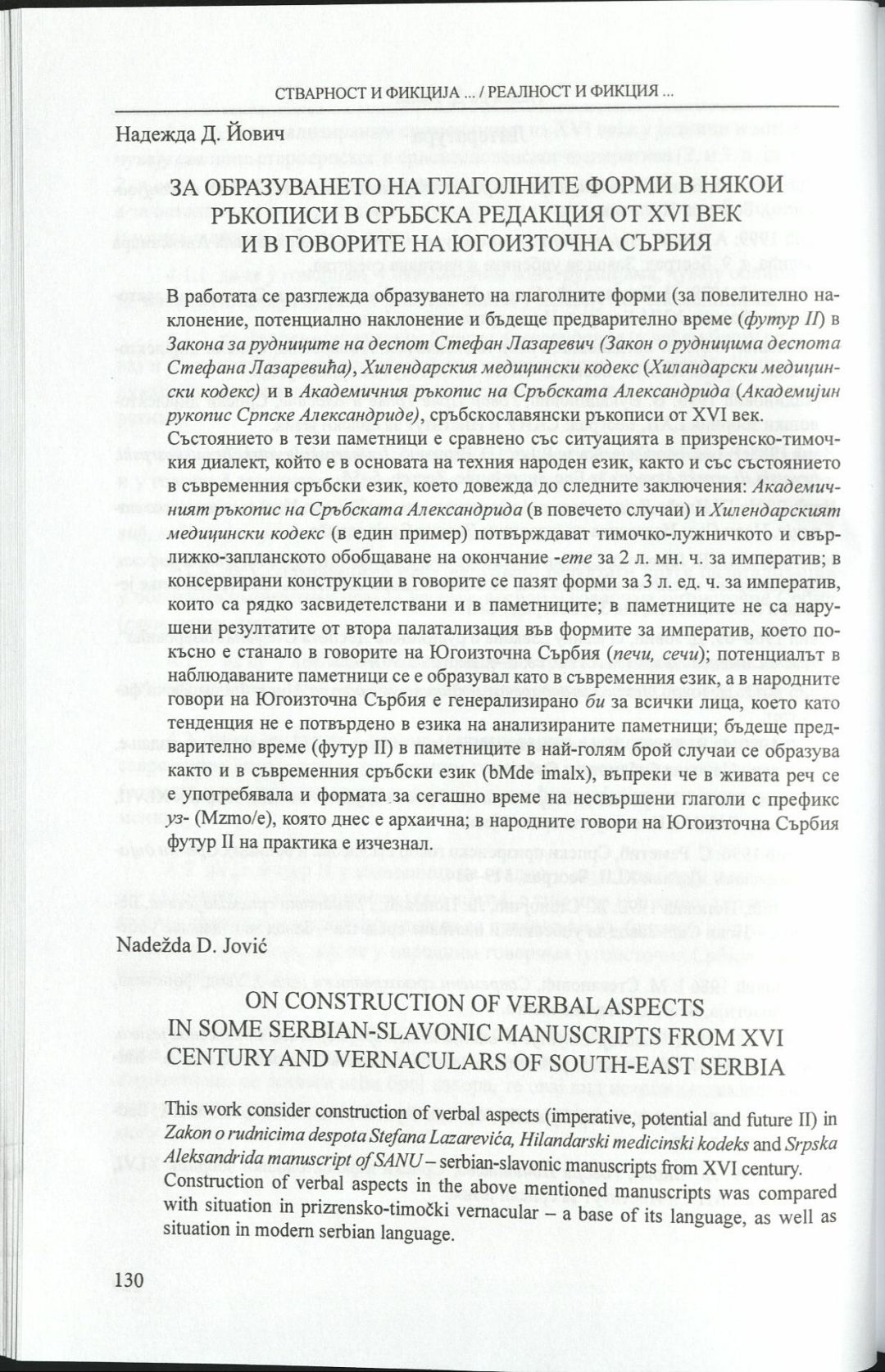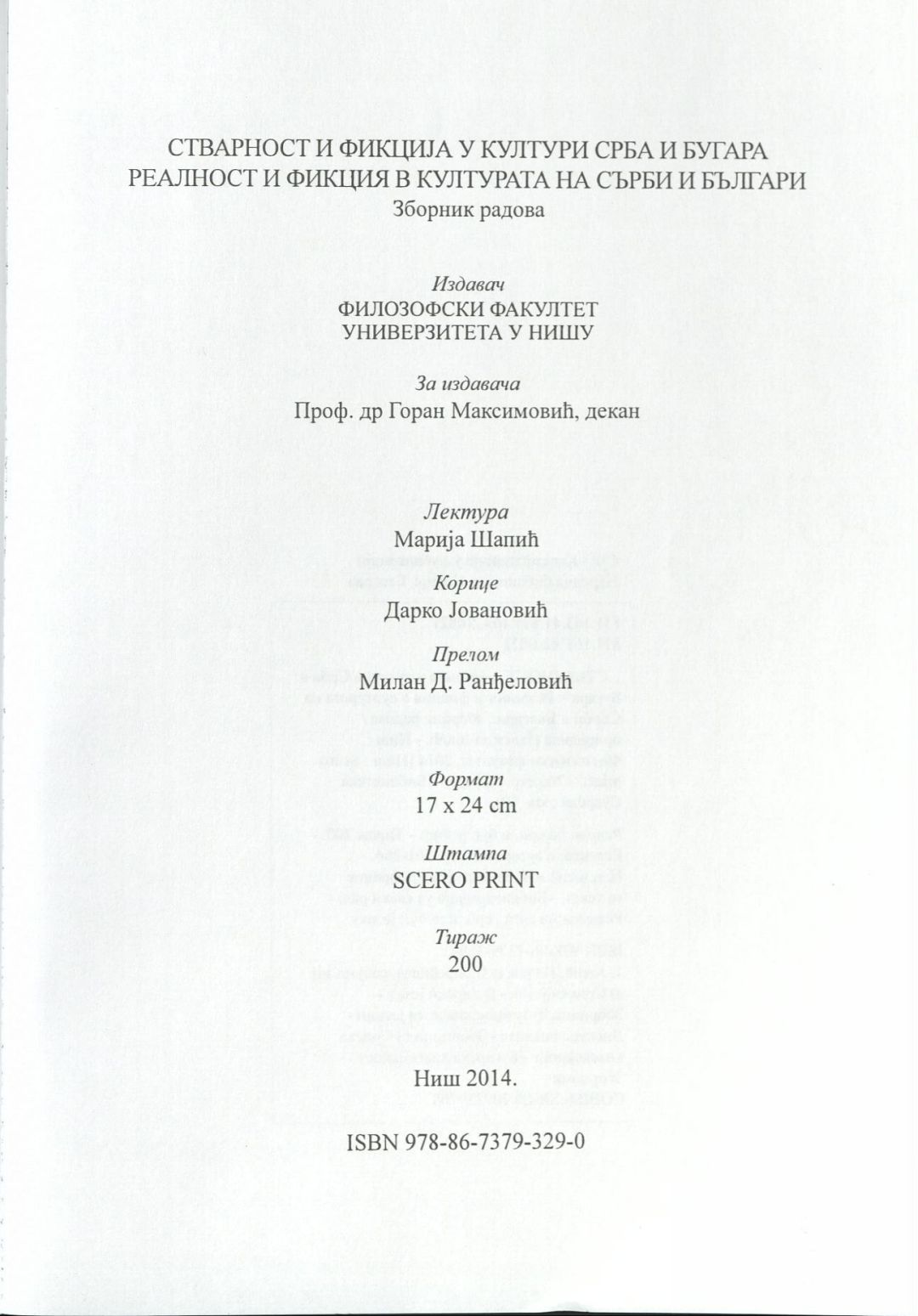 Стварност и фикциjа у култури срба и бугара : Зборник радова = Реалност и фикция в културата на сърби и българи