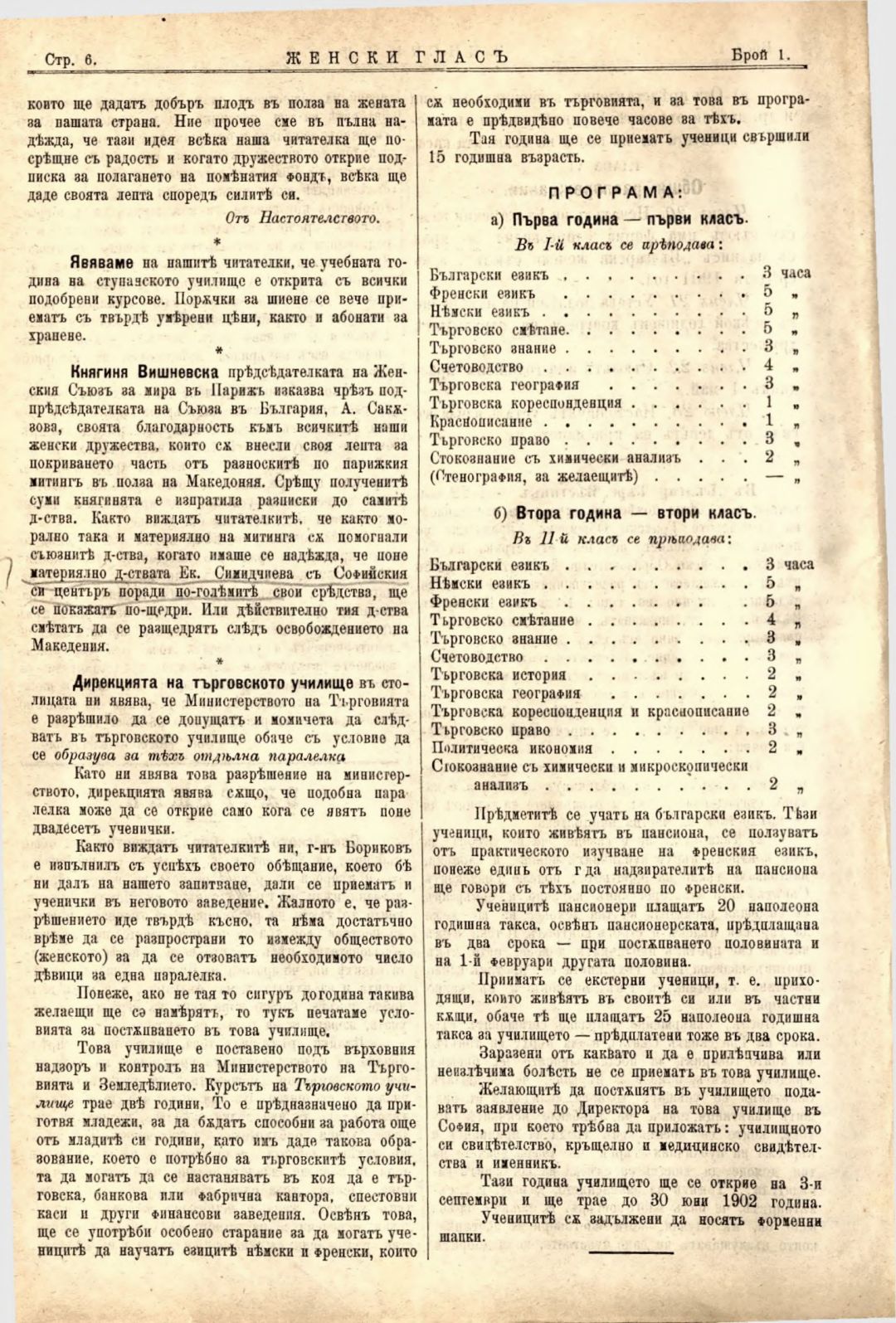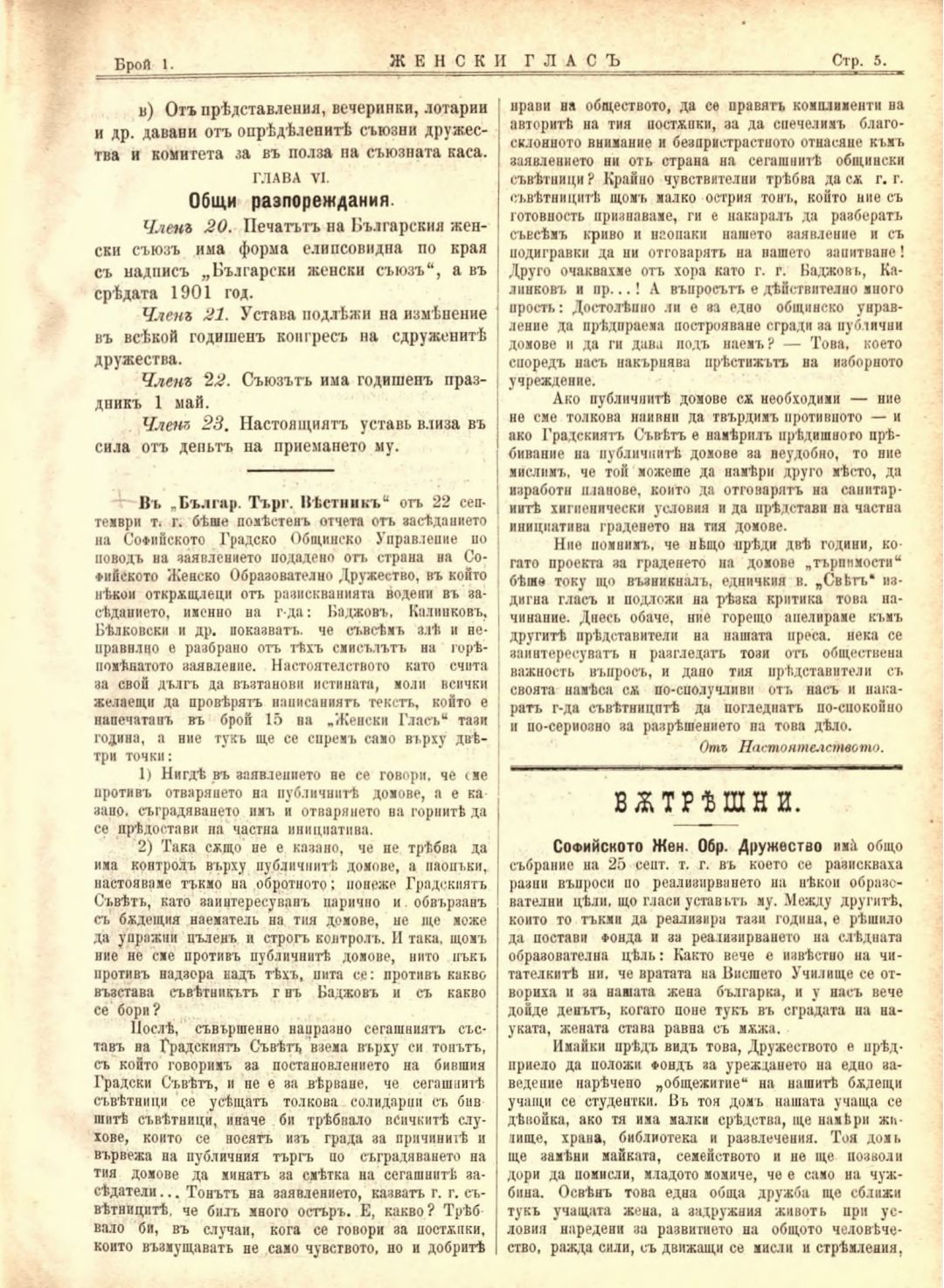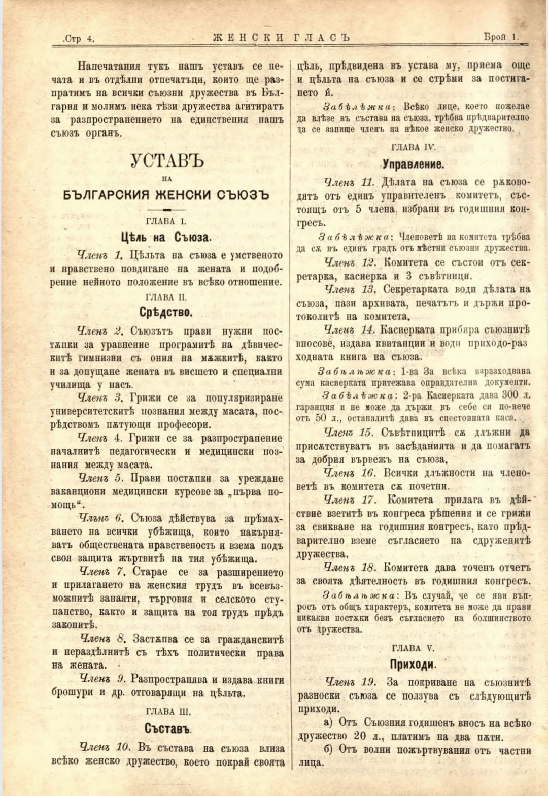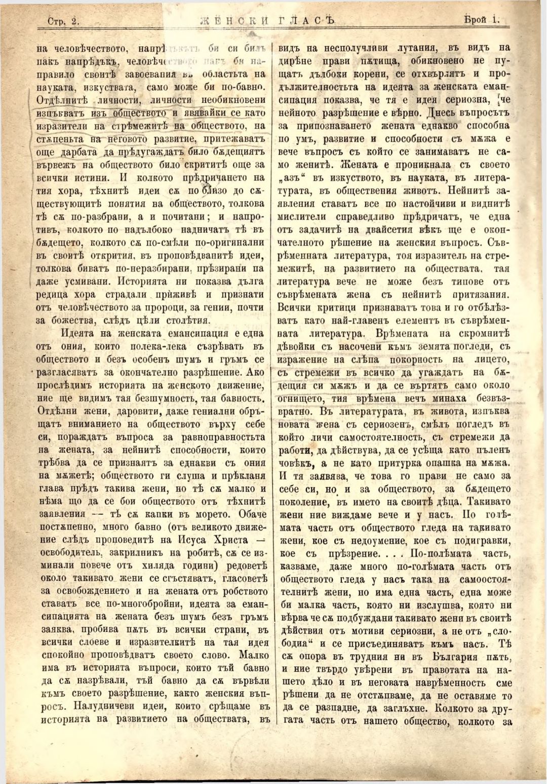 Год. 3, № 1. Женски глас : Орган на българския женски съюз