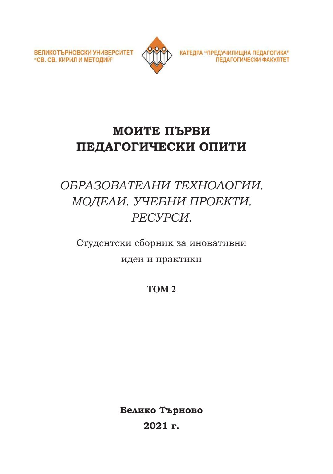 Моите първи педагогически опити : Образователни технологии, модели, учебни проекти, ресурси : Студентски сборник за иновативни идеи и практики Т. 1 - 3