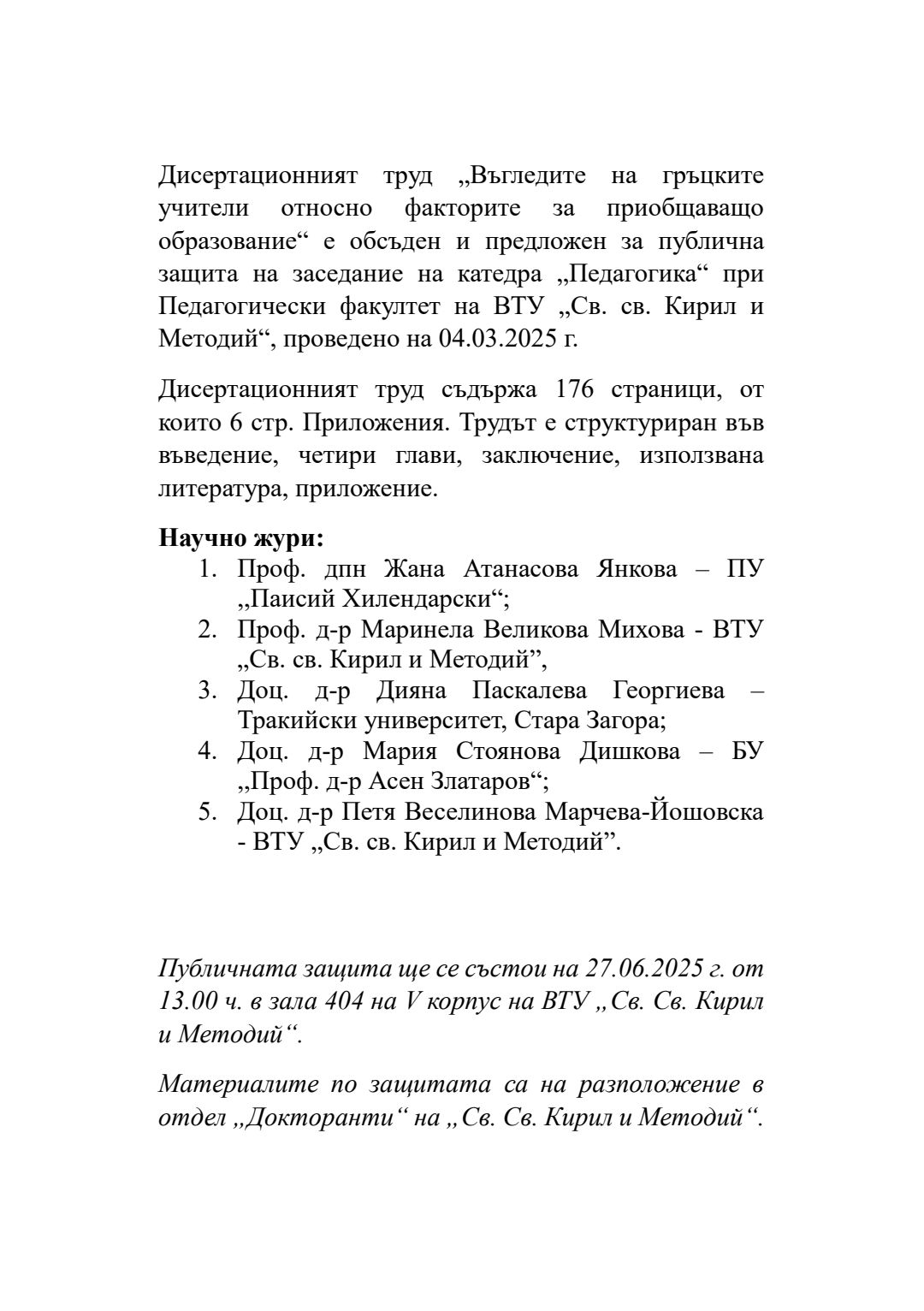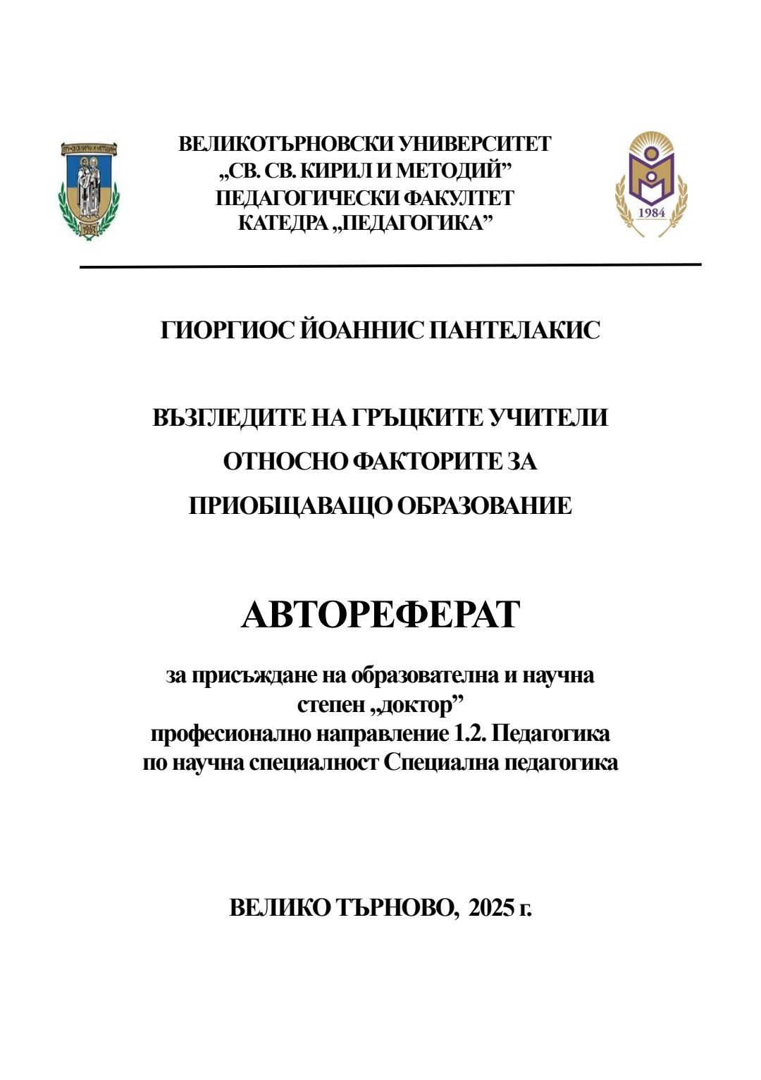 Възгледите на гръцките учители относно факторите за приобщаващо образование : Автореферат / Георгиос Йоаннис Пантелакис ; Науч. ръководител Мариела Тодорова-Колева