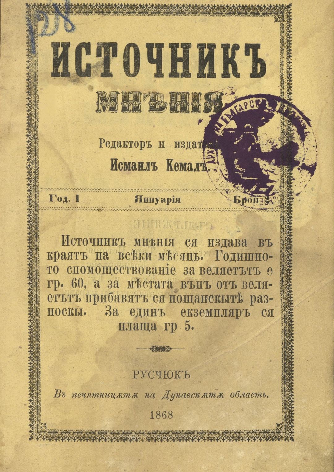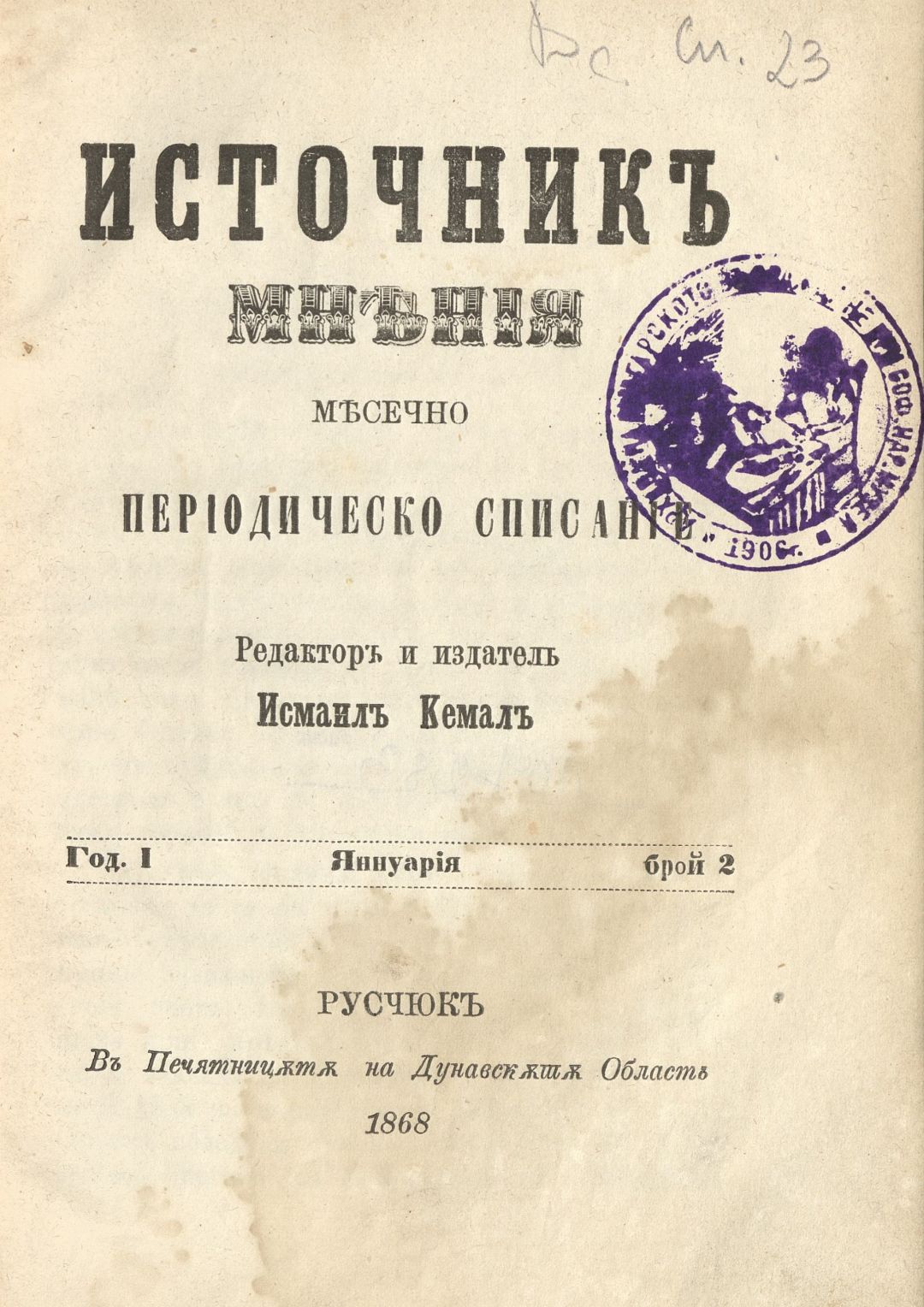 Источник мнения : Периодическо списание. – Год. I, № 2 (ян. 1868, с. 26–48 – бълг. текст и с. 26–48 – турски)