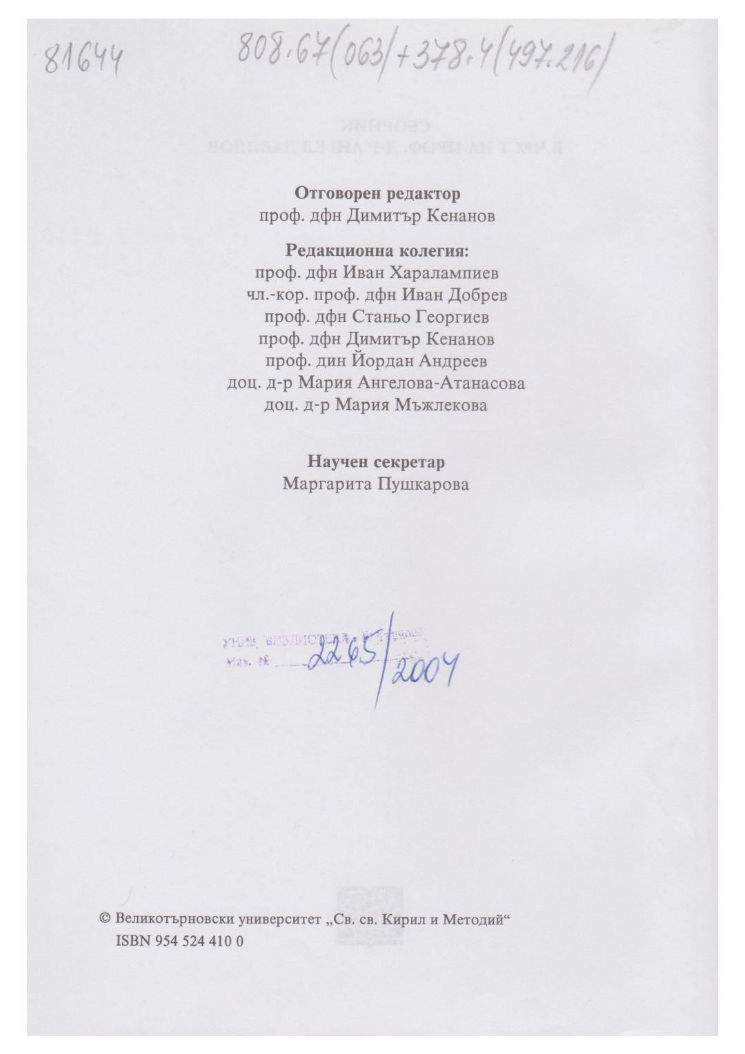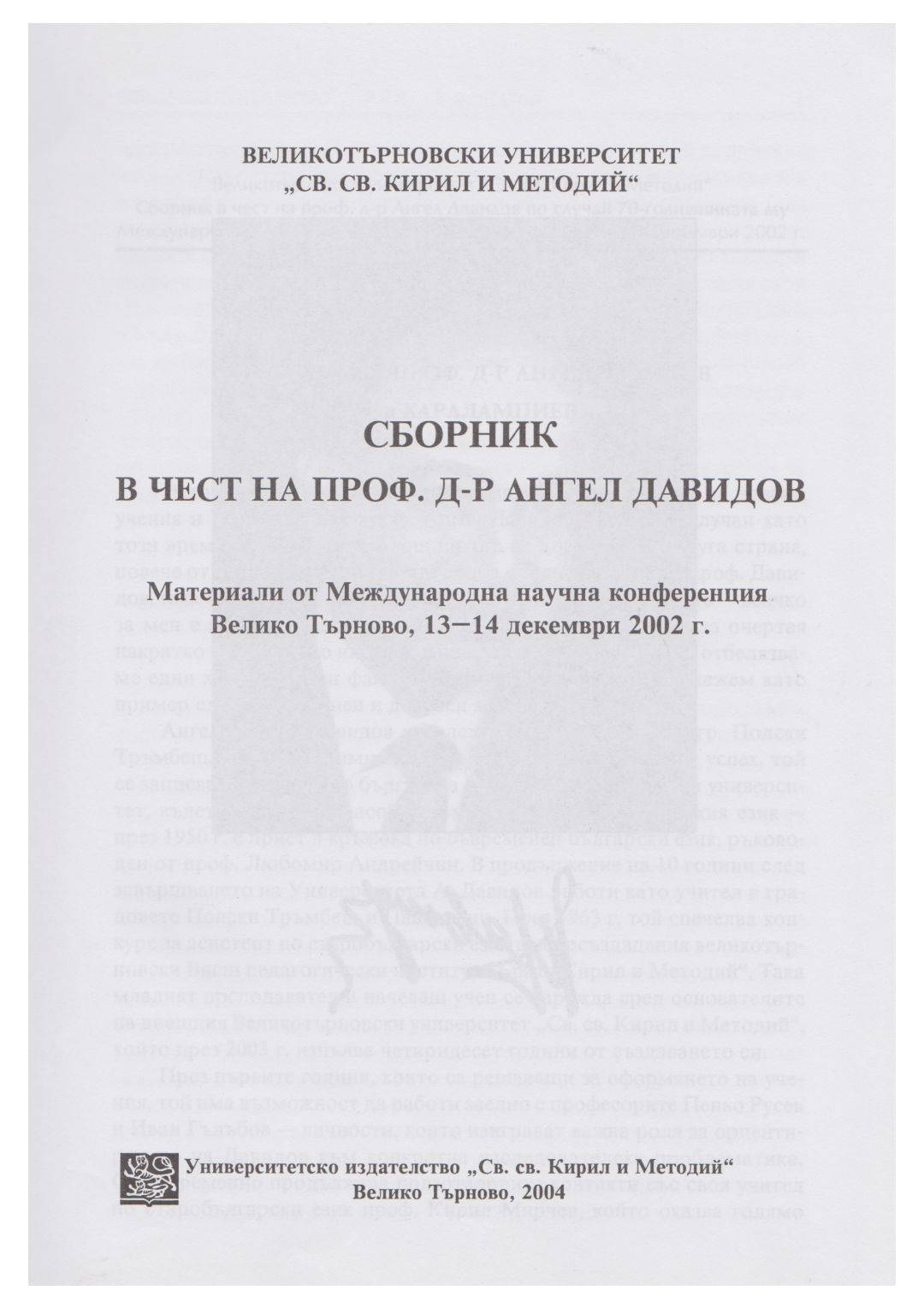 Сборник в чест на проф. д-р Ангел Давидов : Материали от Междунар. науч. конф., В. Търново, 13-14 дек. 2002 г.