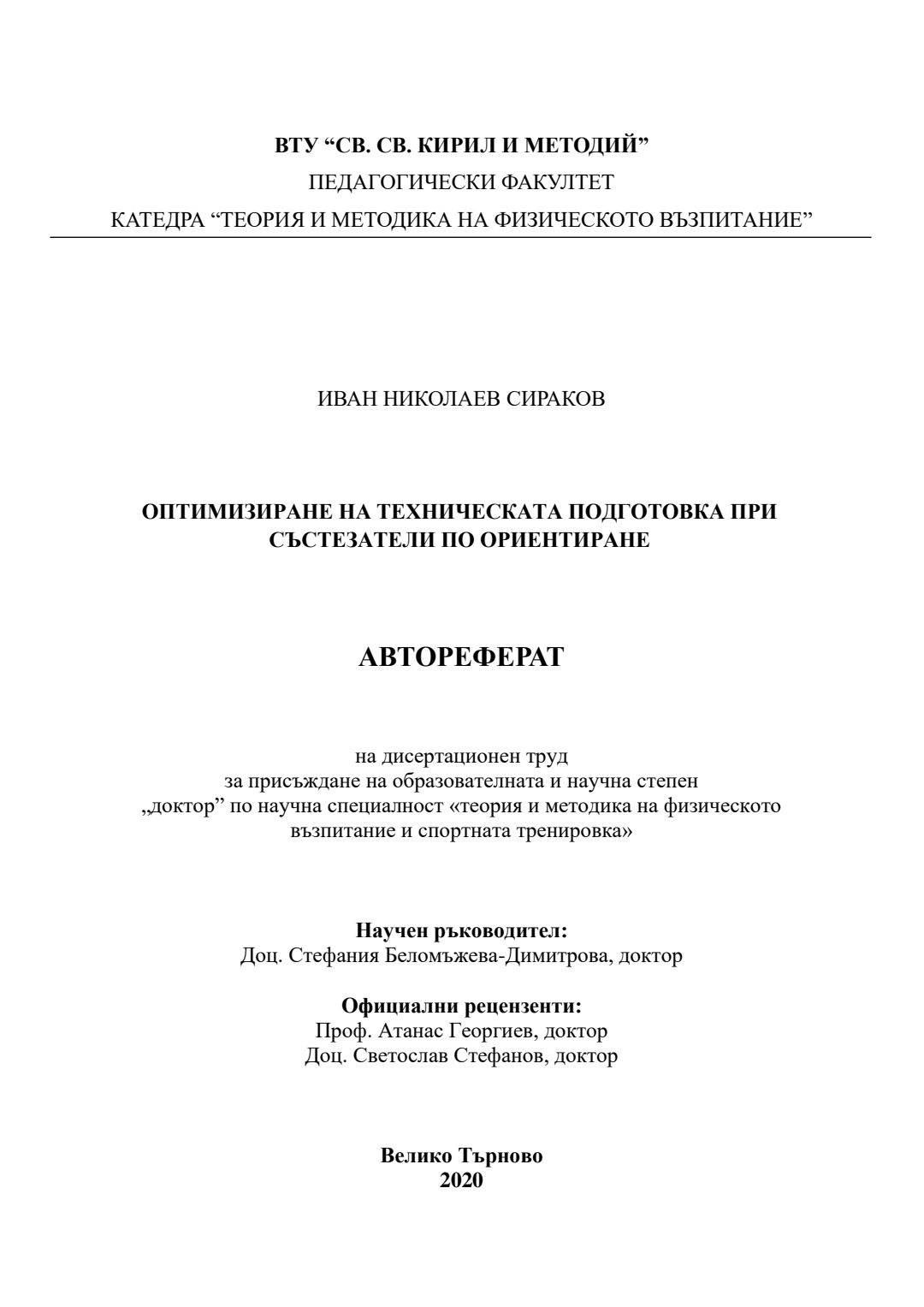 Оптимизиране на техническата подготовка при състезатели по ориентиране : Автореферат / Иван Николаев Сираков ; Науч. ръководител Стефания Беломъжева-Димитрова
