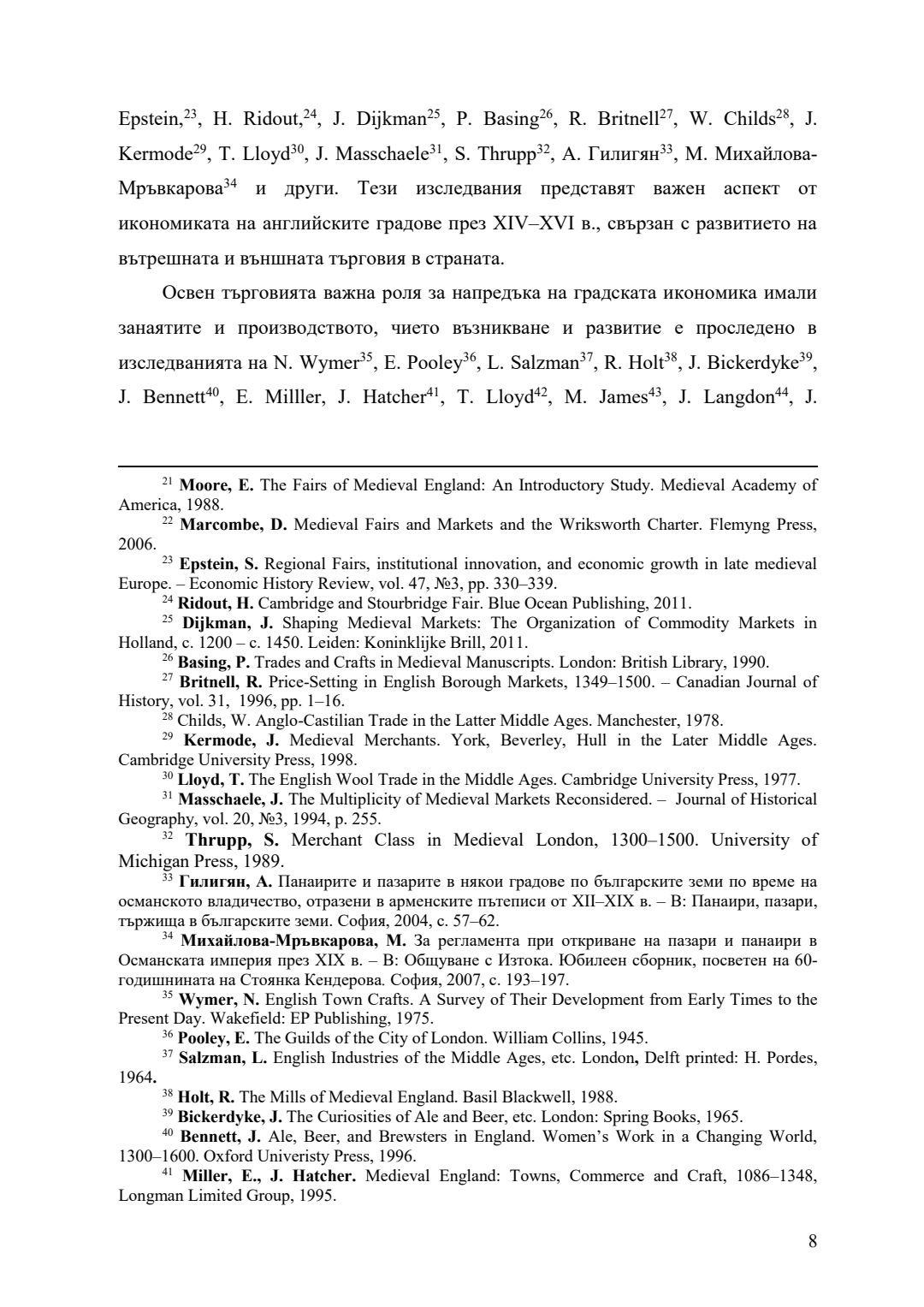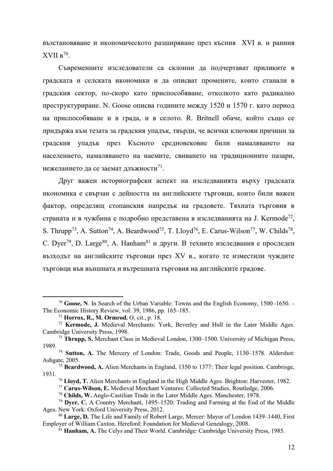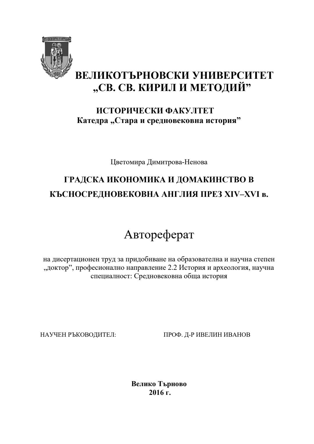 Градска икономика и домакинство в късносредновековна Англия (XIV-XVI в.) : Автореферат / Цветомира Димитрова-Ненова ; Науч. ръководител Ивелин Иванов