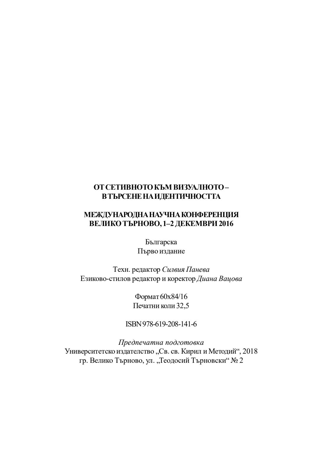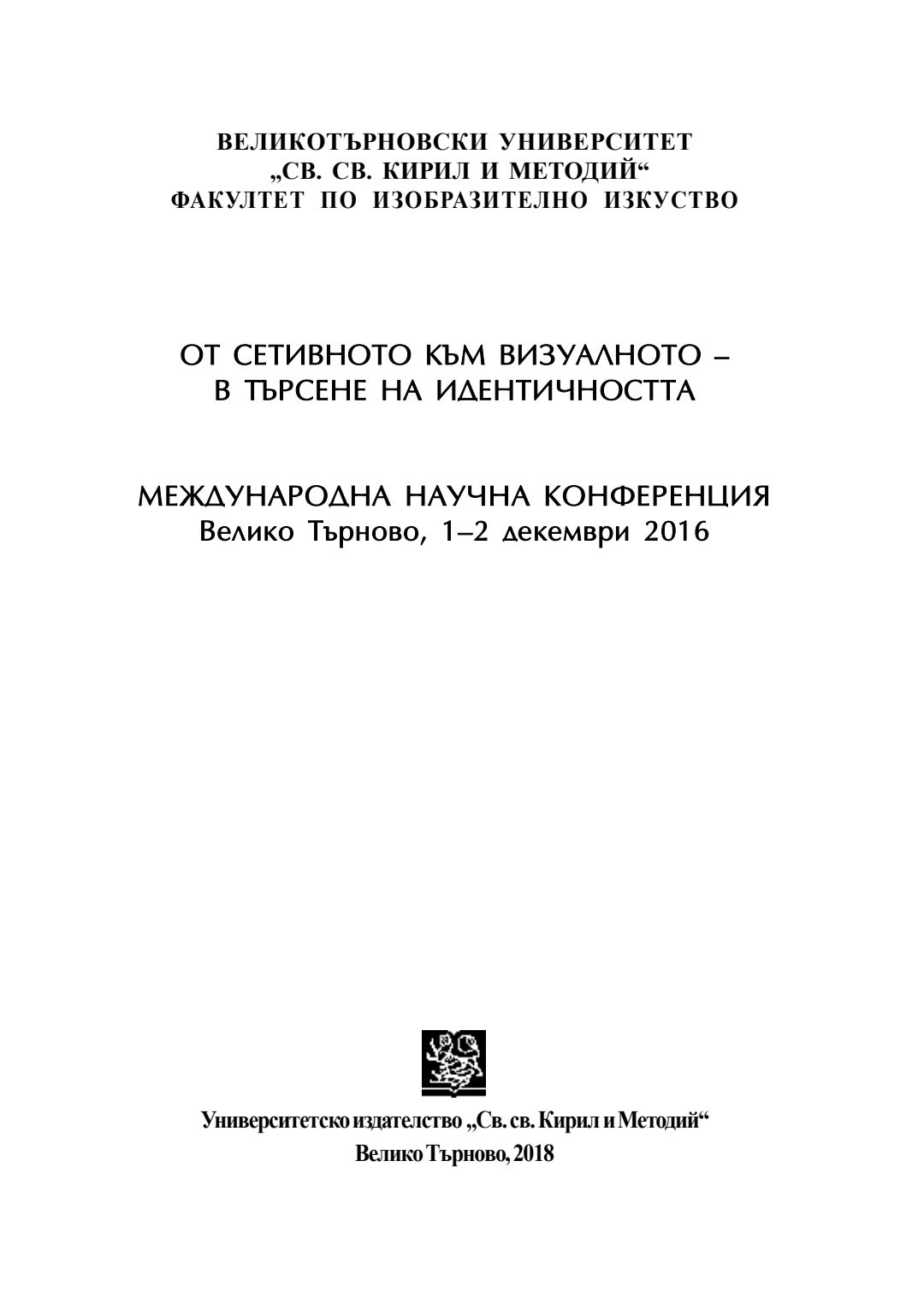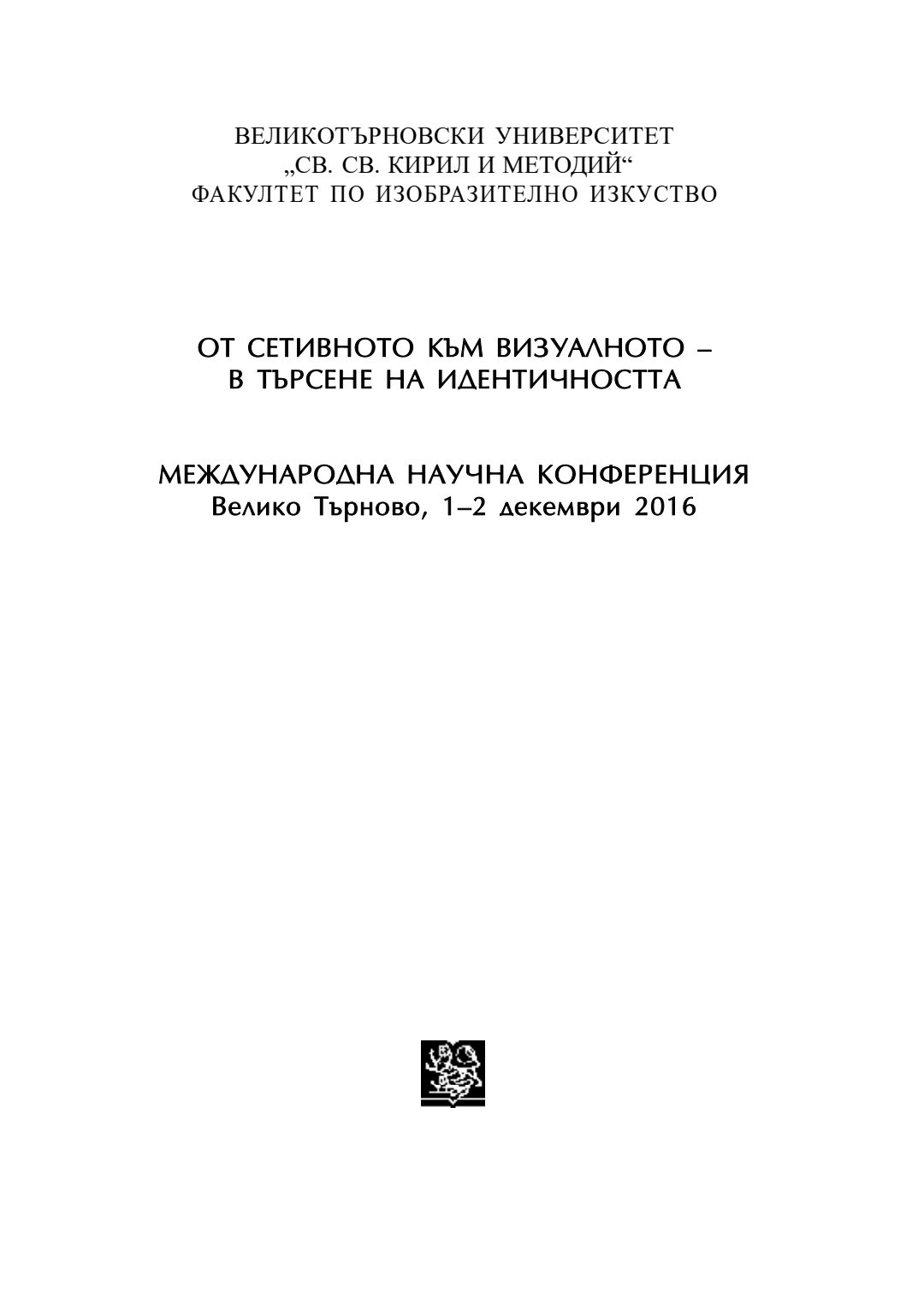 От сетивното към визуалното - в търсене на идентичността : международна научна конференция, Велико Търново, 1-2 декември 2016