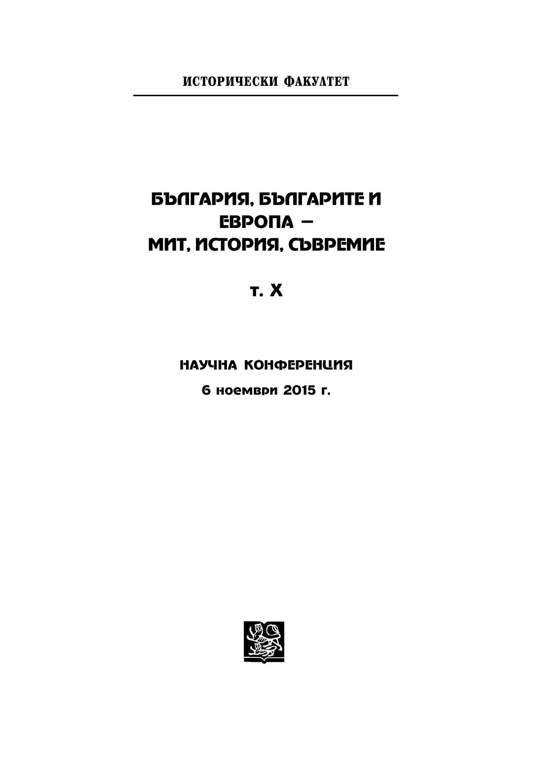 [Т. 10.] България, българите и Европа - мит, история, съвремие : Научна конференци 6 ноември 2015 г., В. Търново