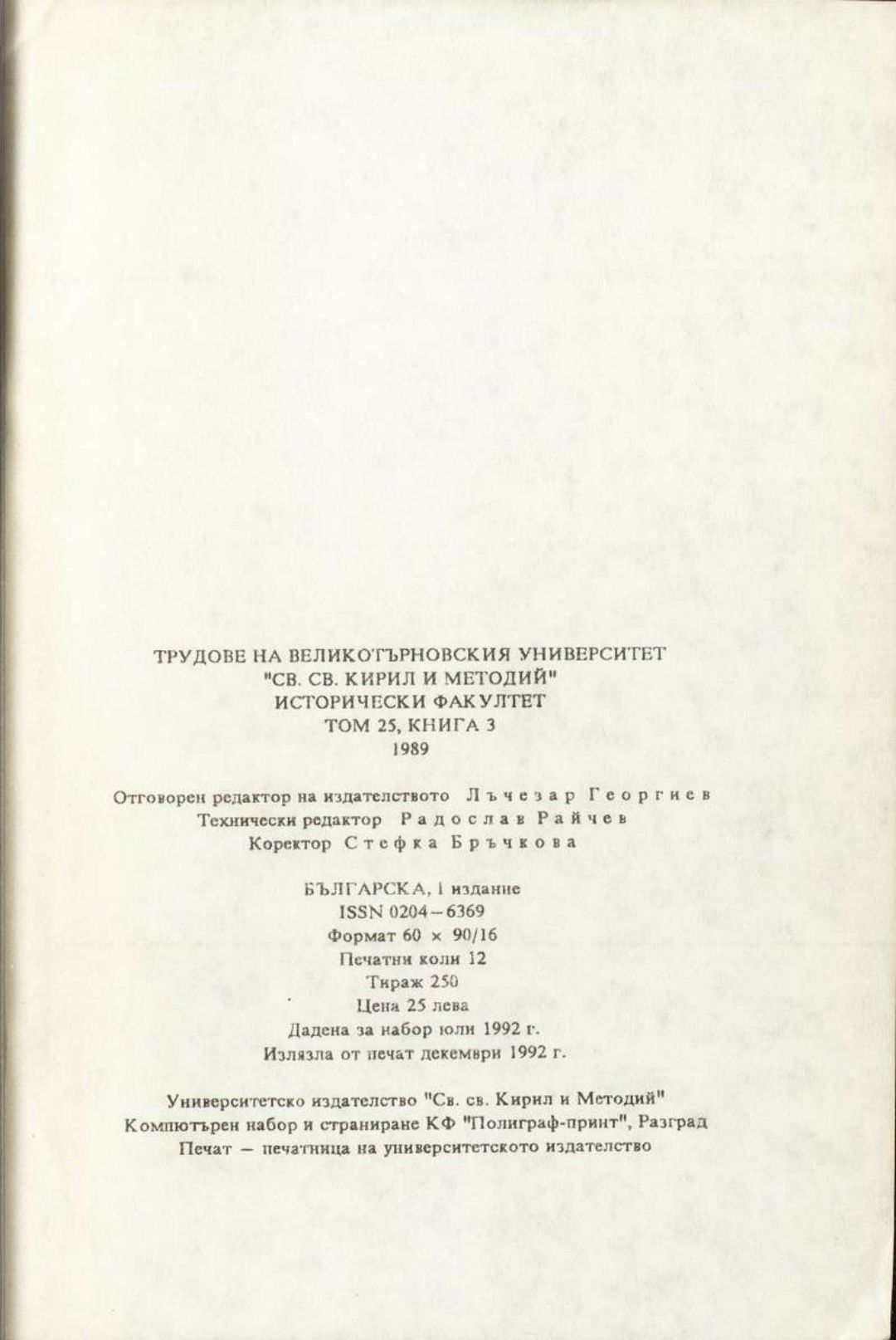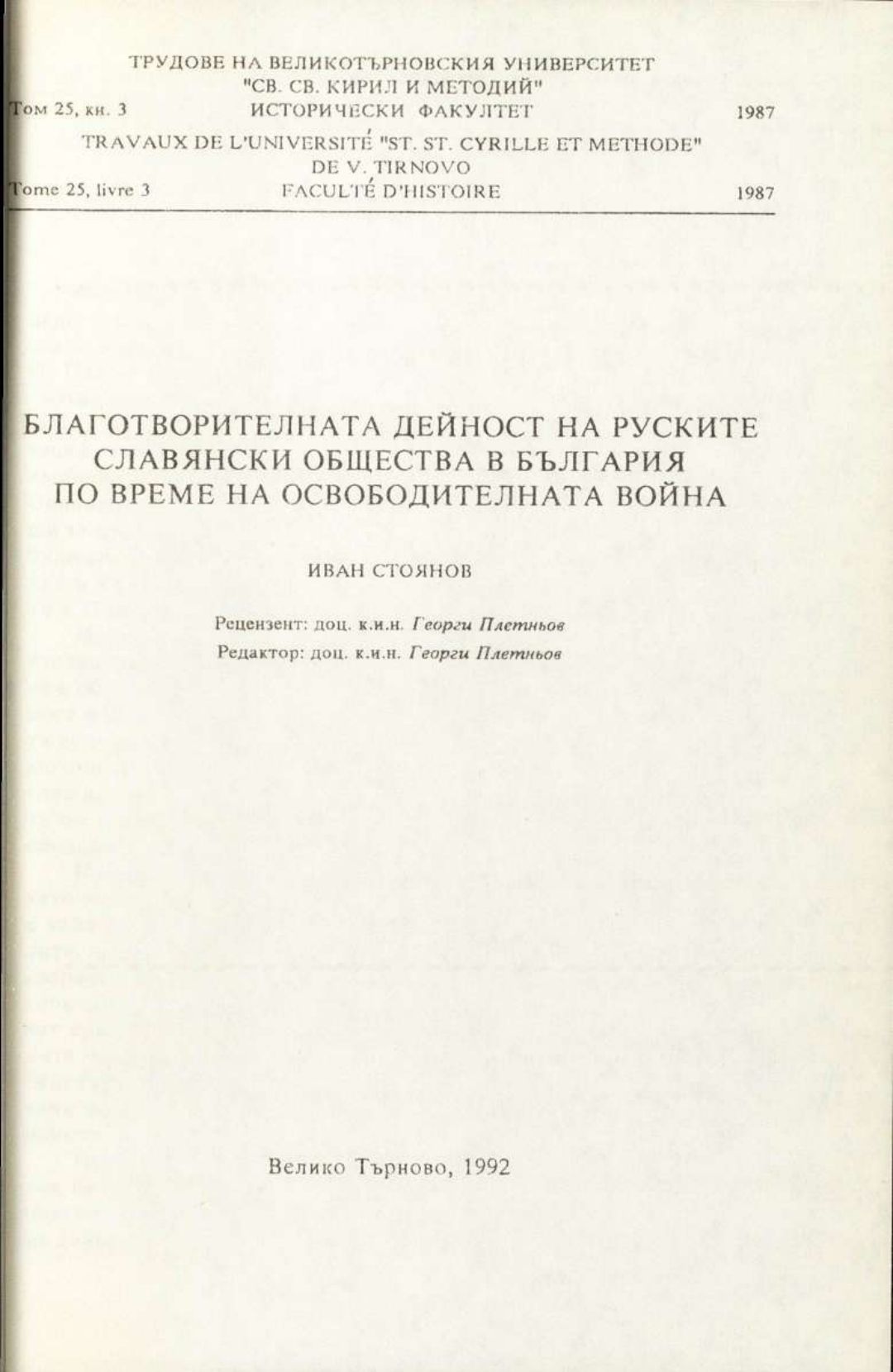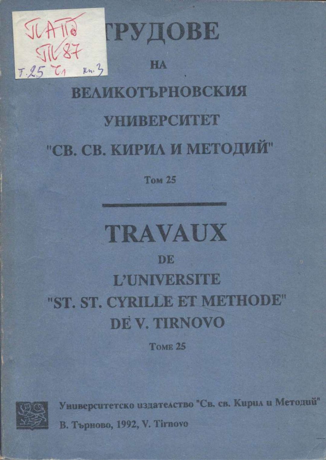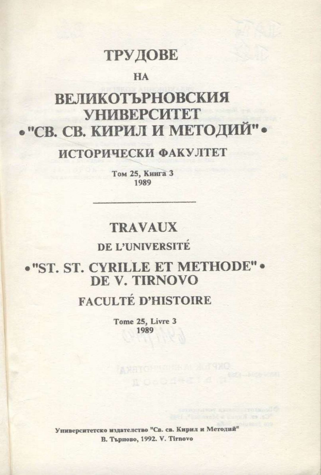 Том 25. Кн. 3. Трудове на Великотърновския университет "Св. св. Кирил и Методий". Исторически факултет = Travaux de L'universite St. St. Cyrille et Methode de V. Tirnovo. Faculte histoire