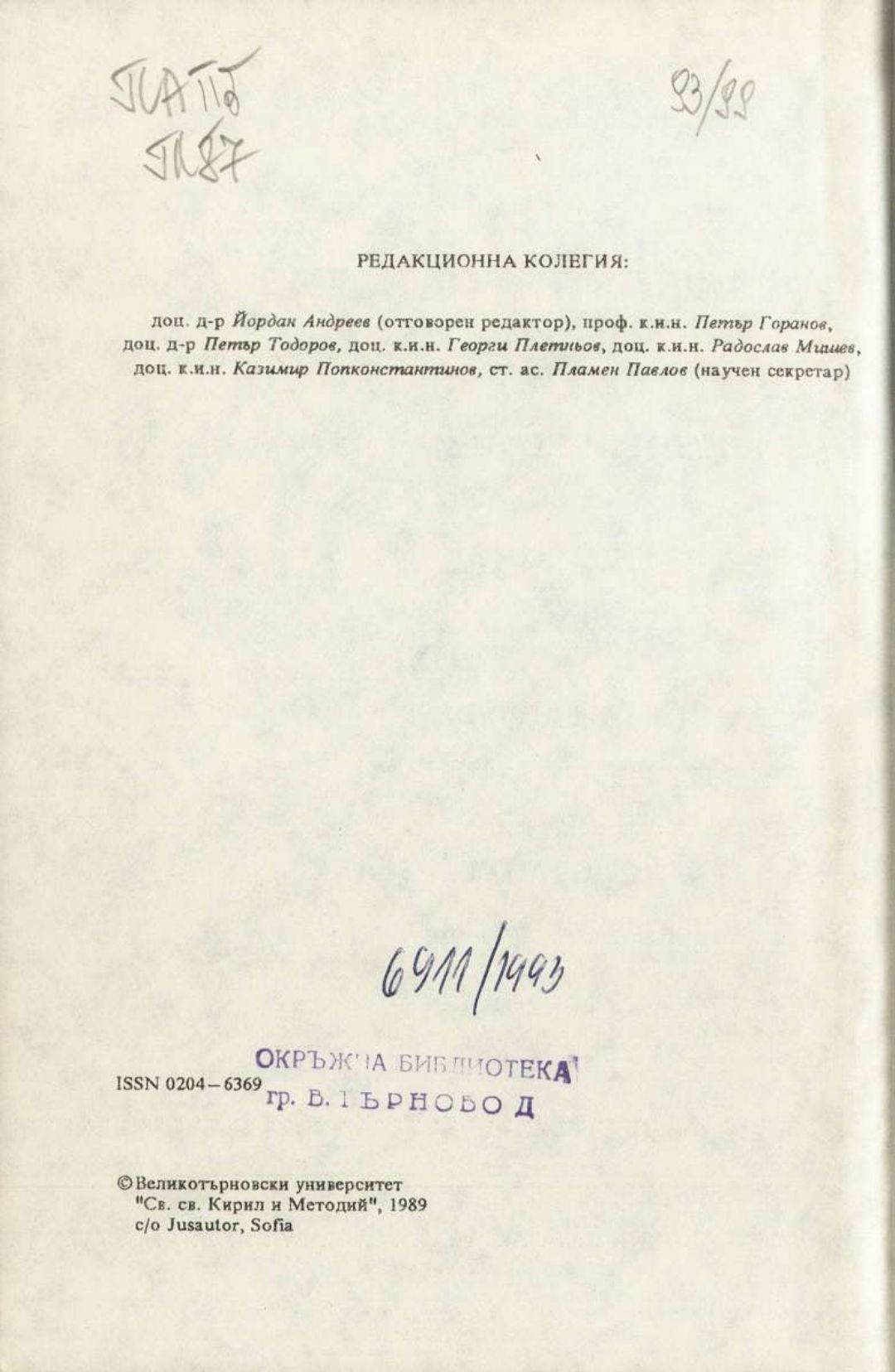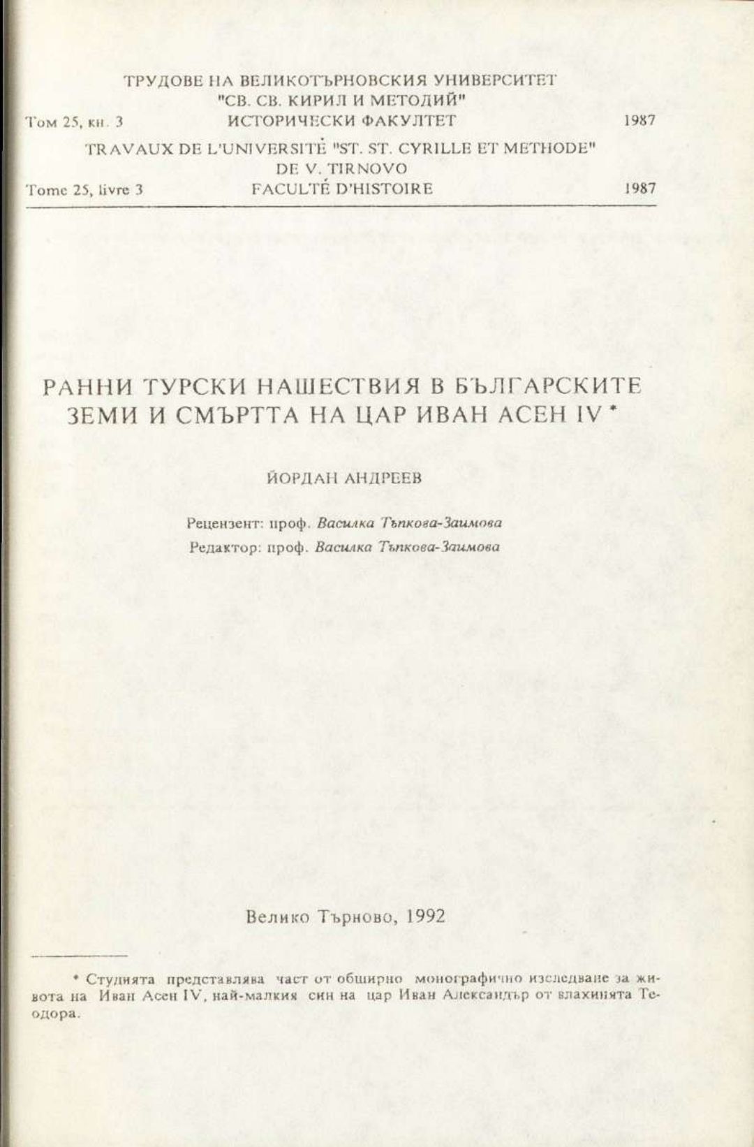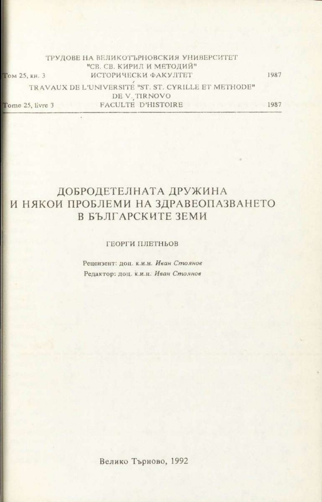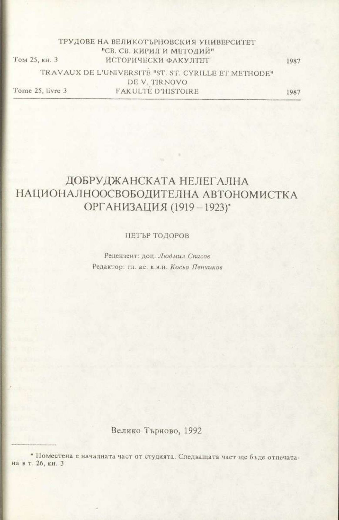 Том 25. Кн. 3. Трудове на Великотърновския университет "Св. св. Кирил и Методий". Исторически факултет = Travaux de L'universite St. St. Cyrille et Methode de V. Tirnovo. Faculte histoire