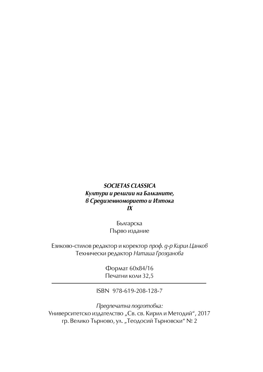 Том 9. Societas classica: култури и религии на Балканите, в Средиземноморието и Изтока