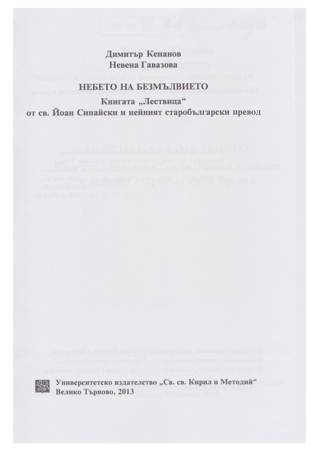 Небето на безмълвието : книгата "Лествица" от св. Йоан Синайски и нейният старобългарски превод