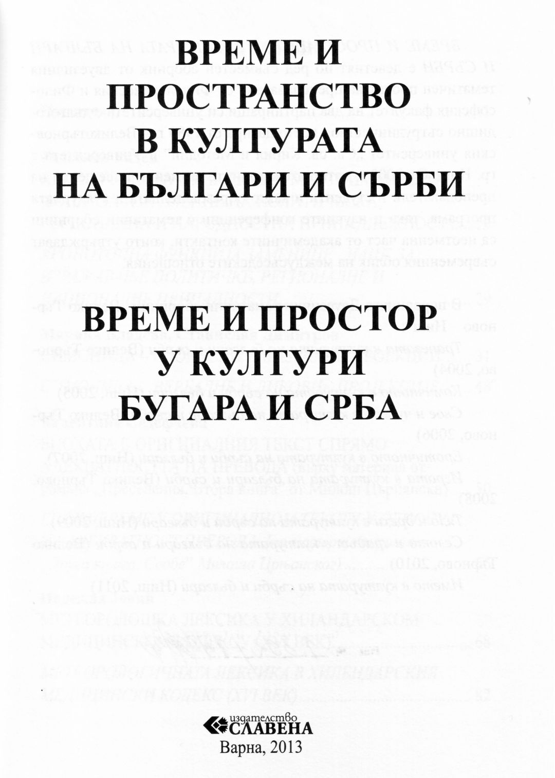 Време и пространство в културата на българи и сърби : сборник доклади = Време и простор у култури бугара и срба